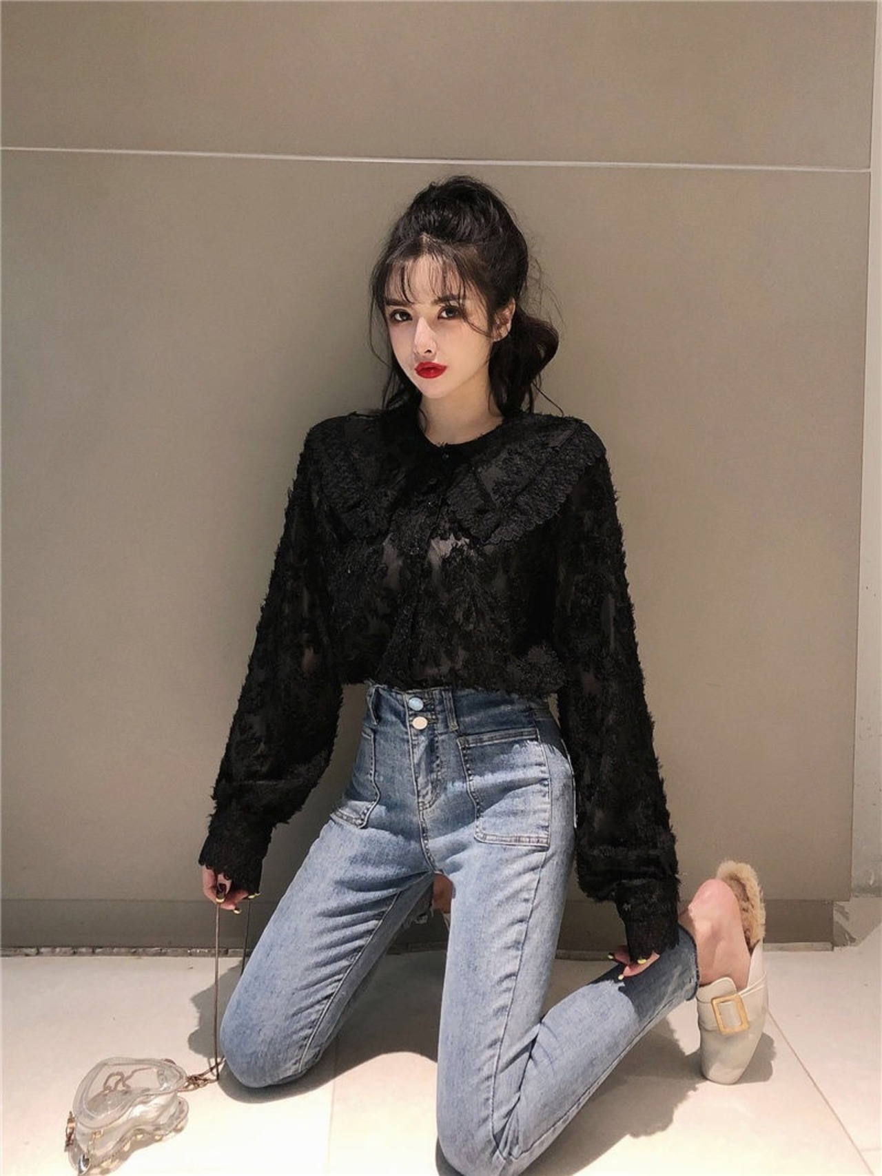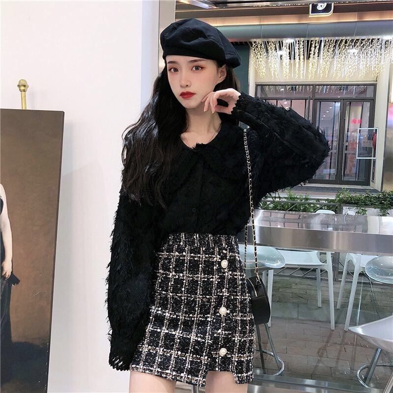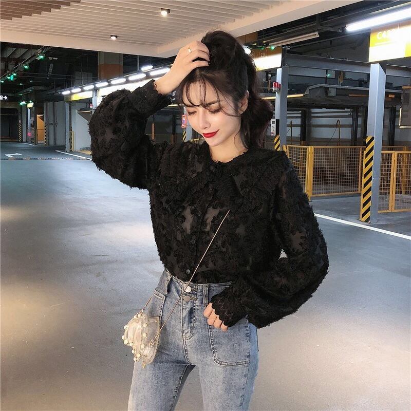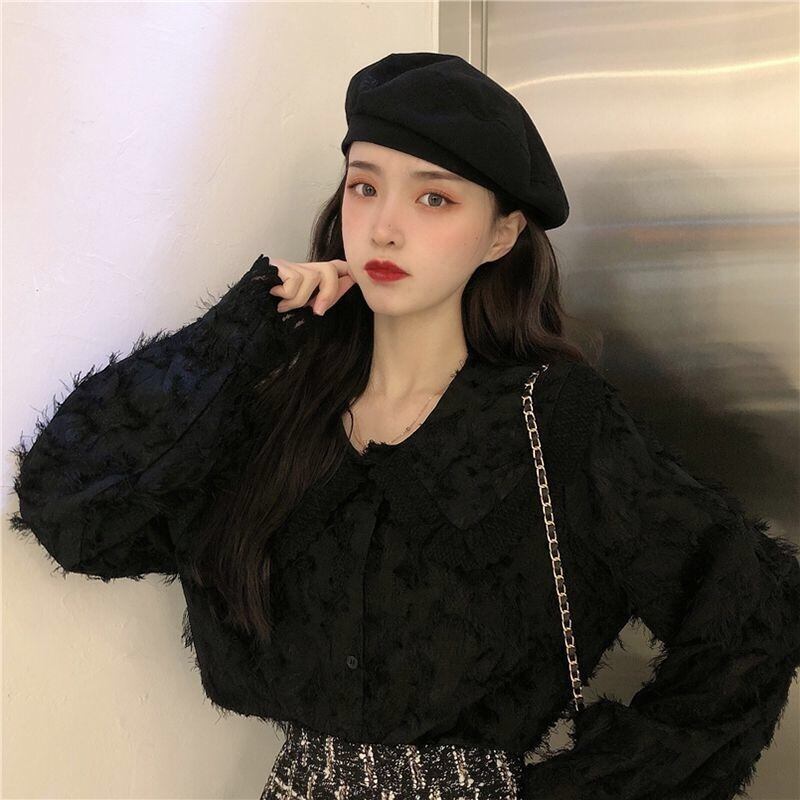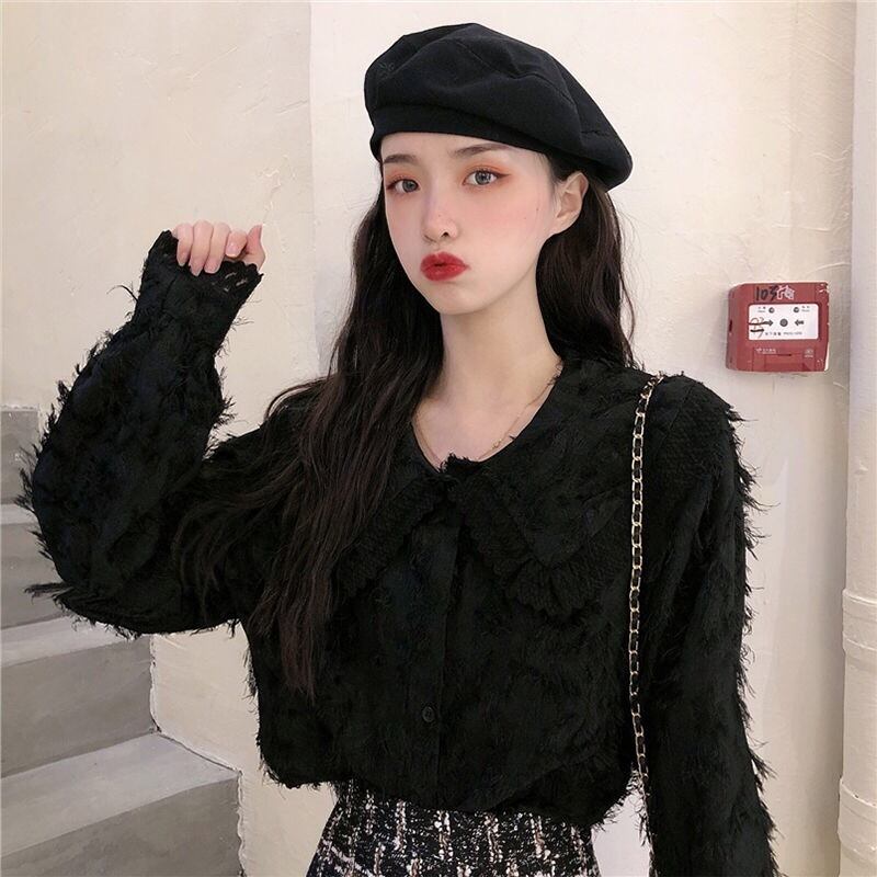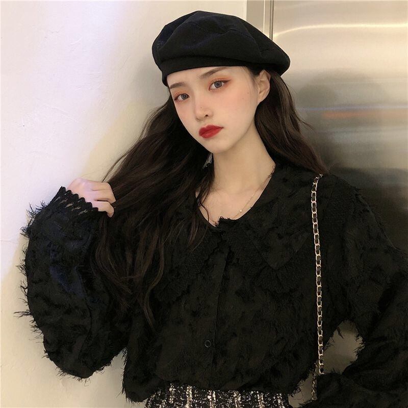 【tops】もこもこ起毛レースブラウス2色