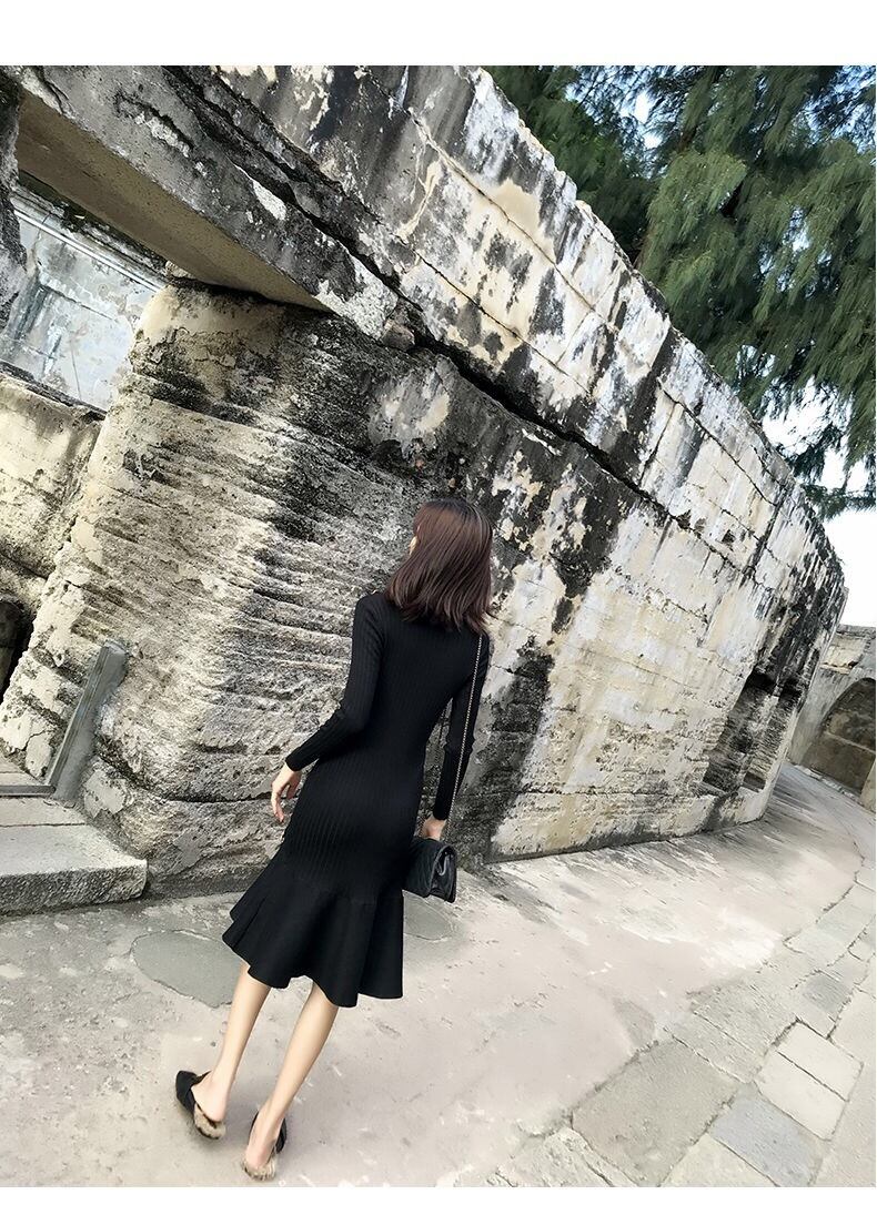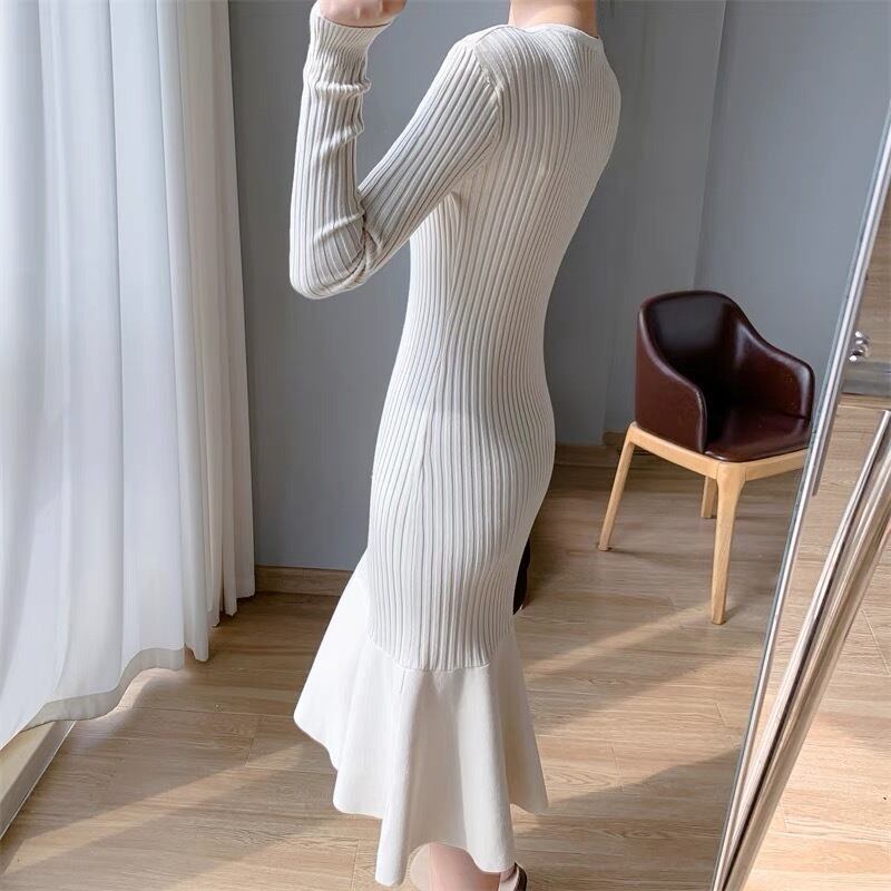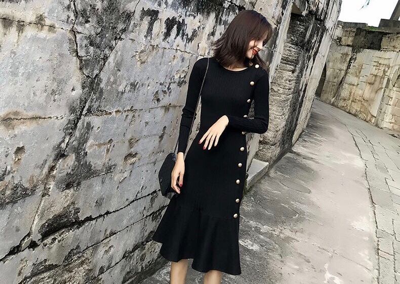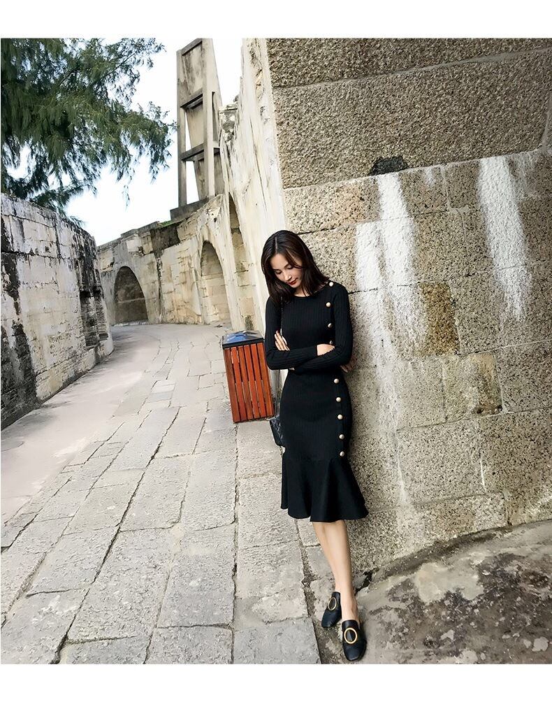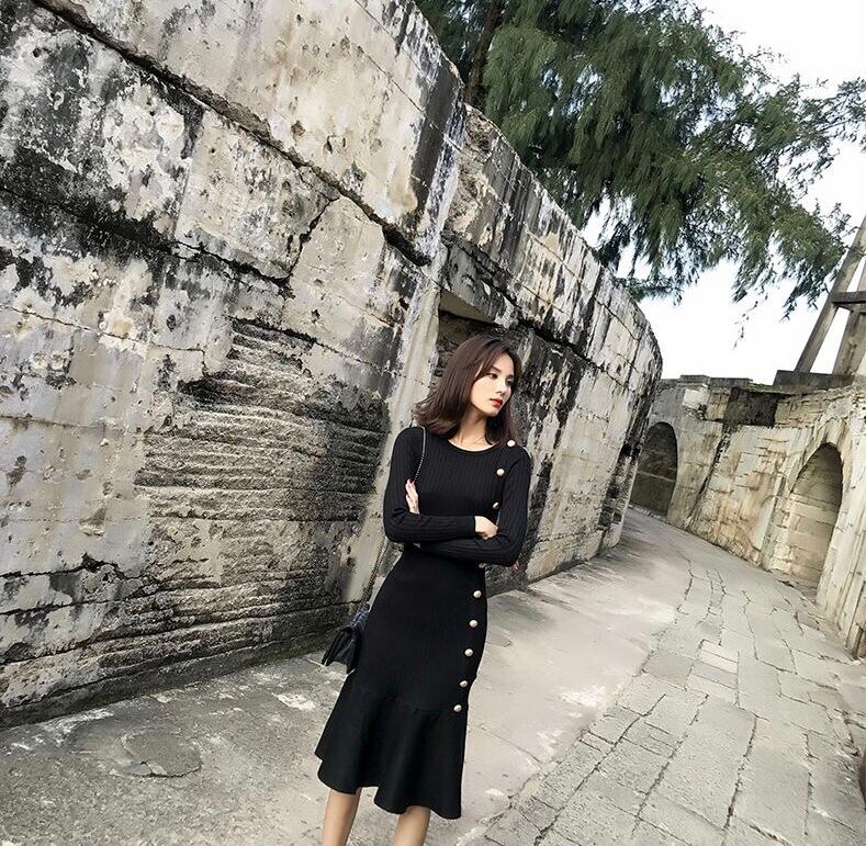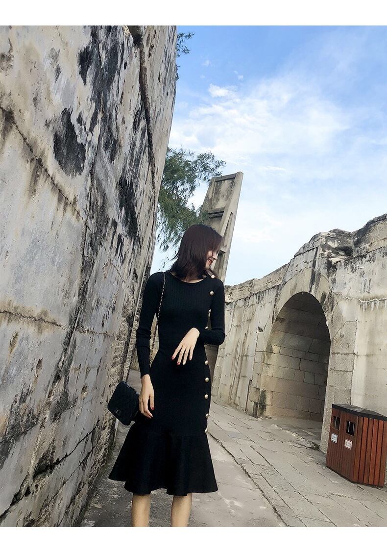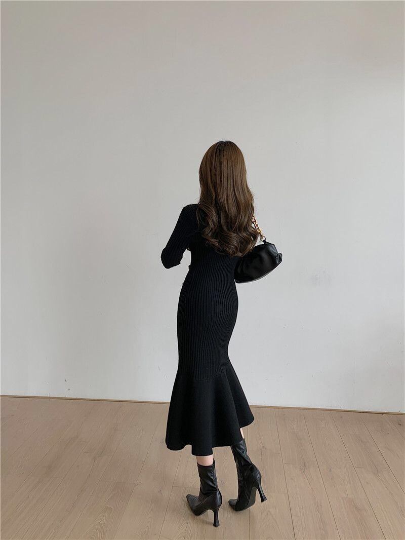 【dress】ボタンデザイン長袖ニットワンピース2色 TK9088
