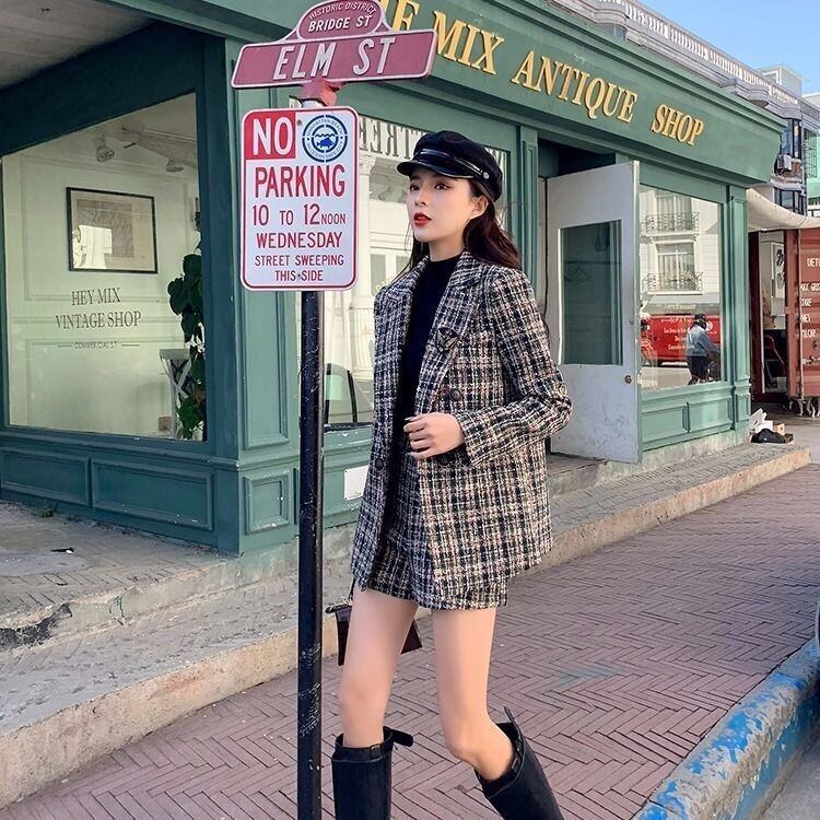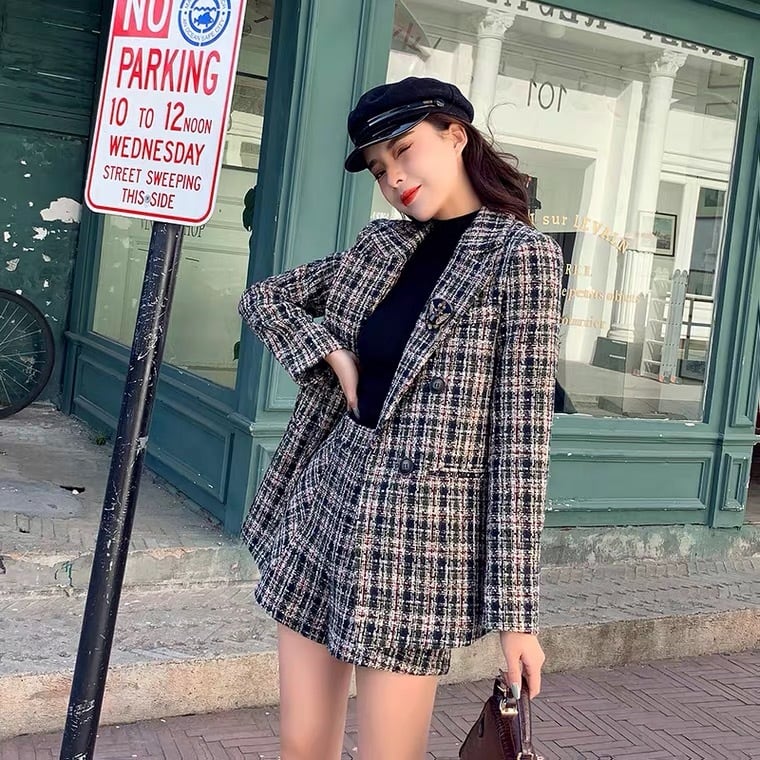 【set】統一感チェックアウターxショートパンツ TD0190