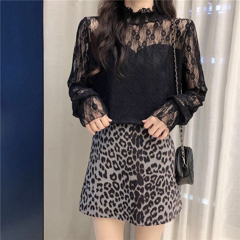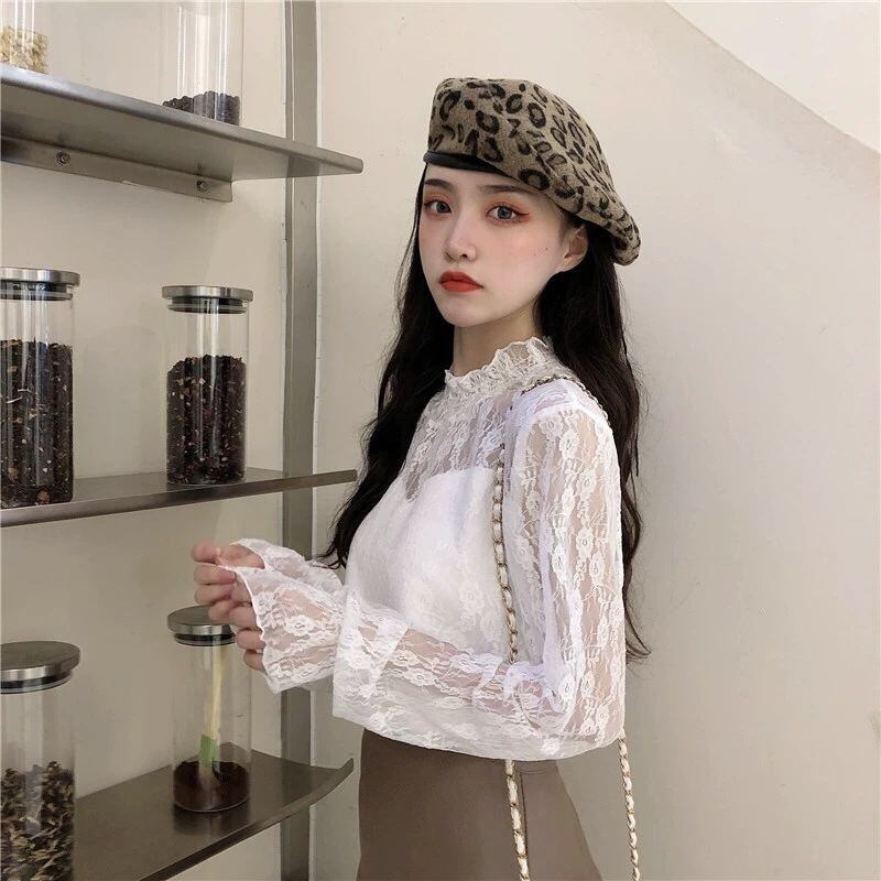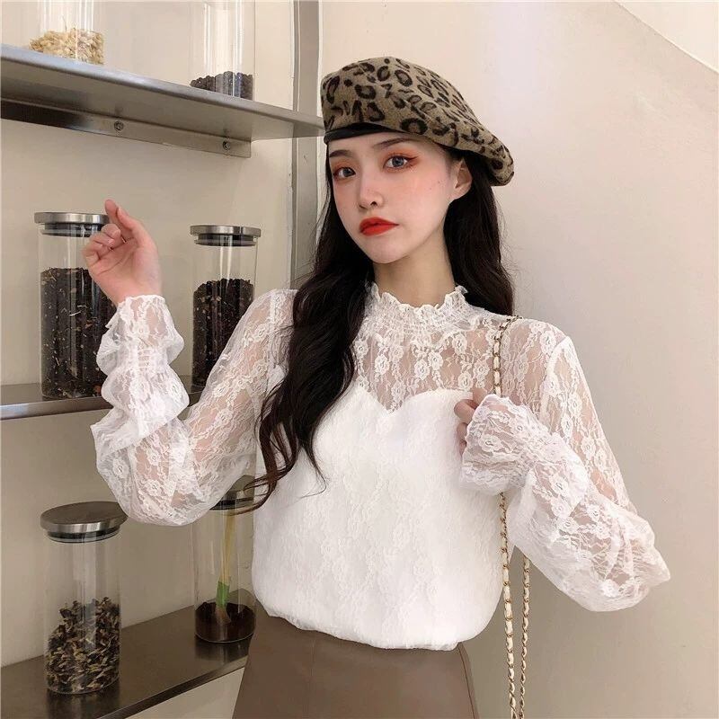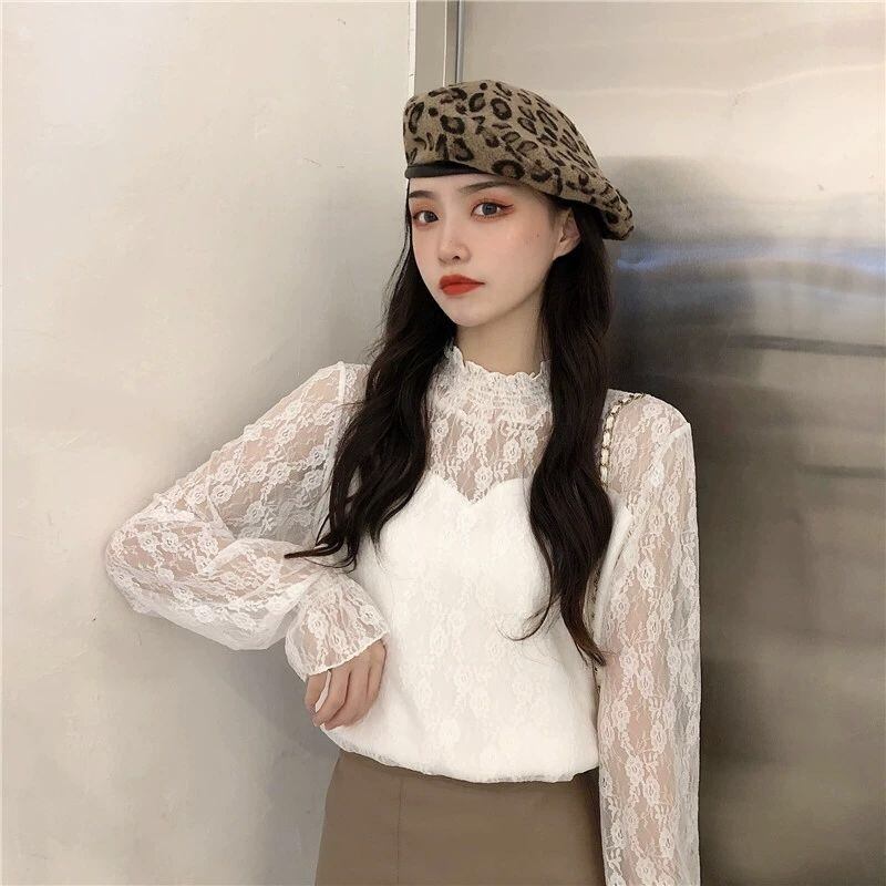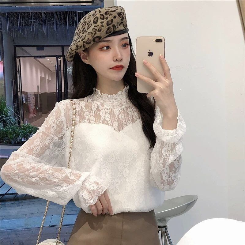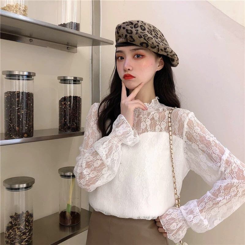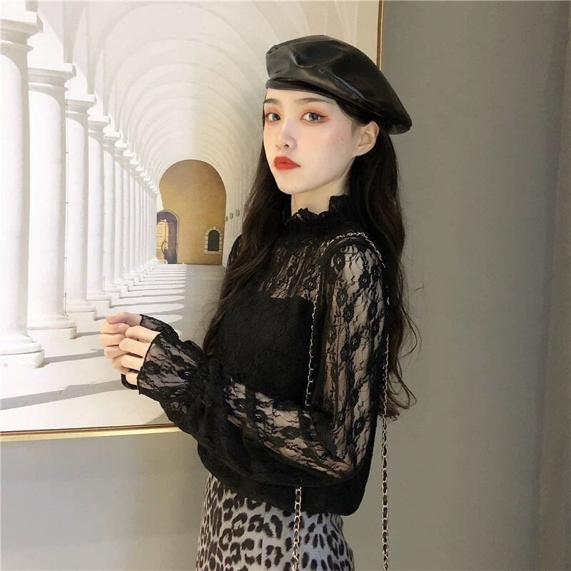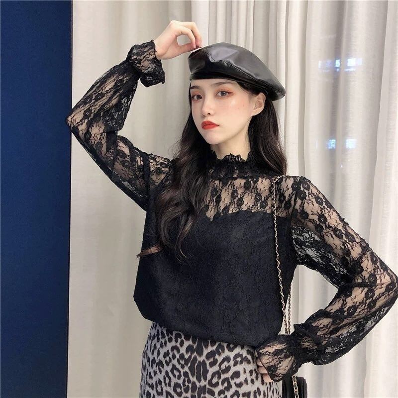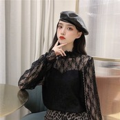 【tops】裏起毛秋冬レースブラウス2色