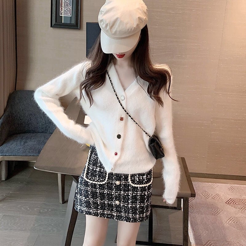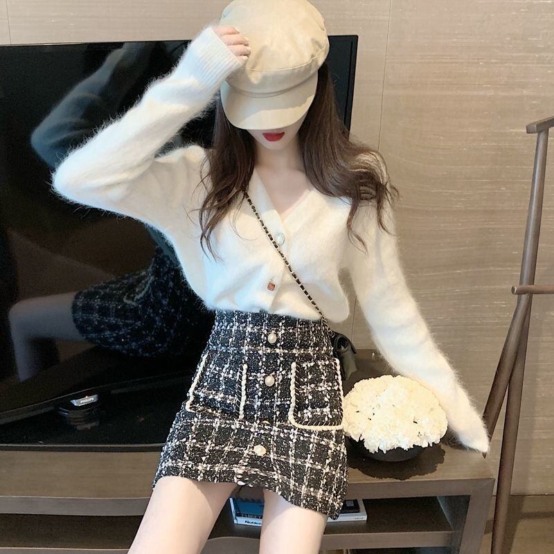 【set】人気2点セットアップニットカーディガンxハイウエストスカート TK2122