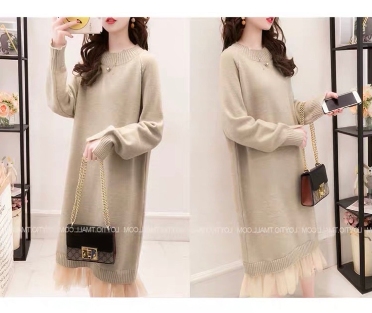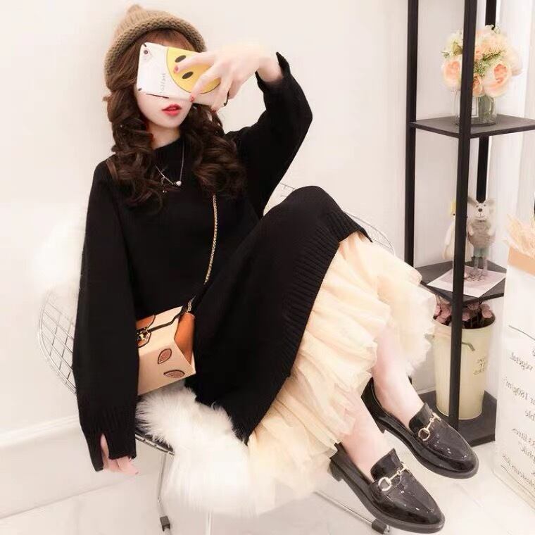 【dress】チュール切り替えニットワンピース3色 TK1125