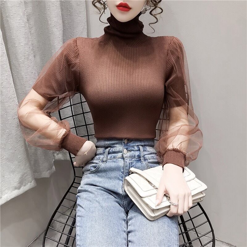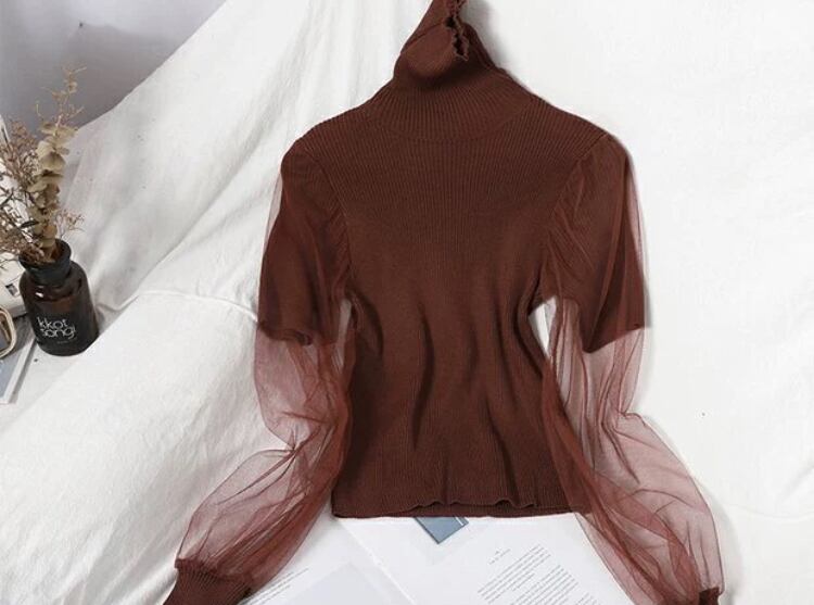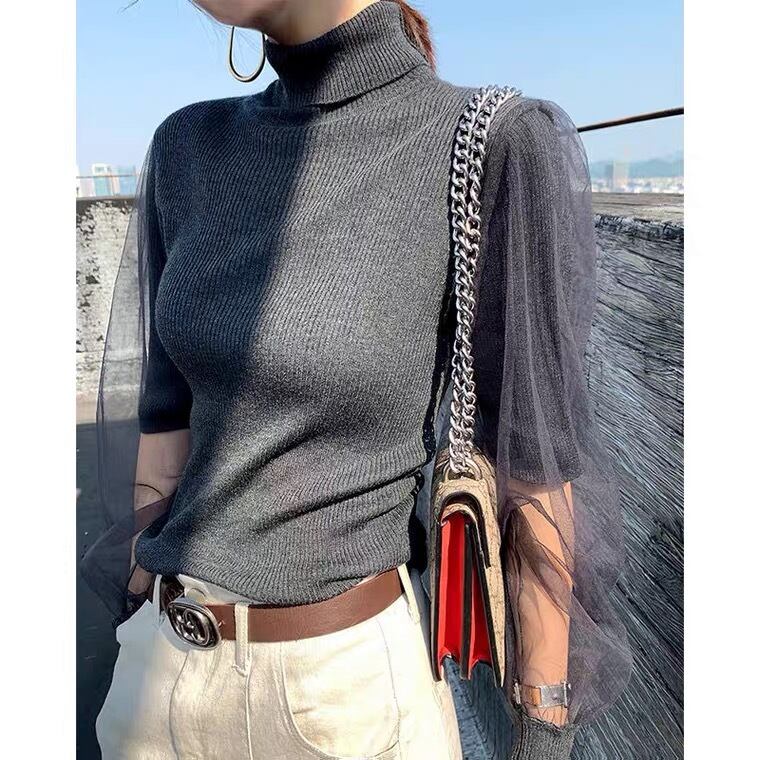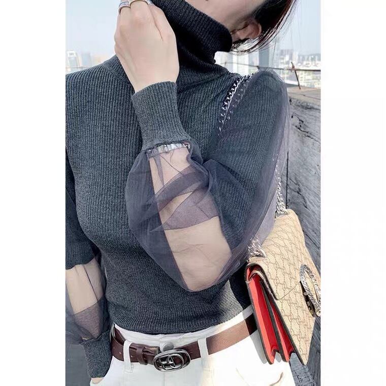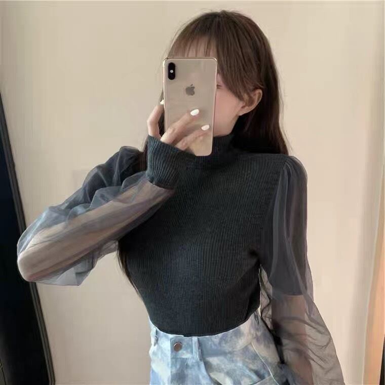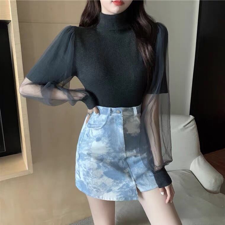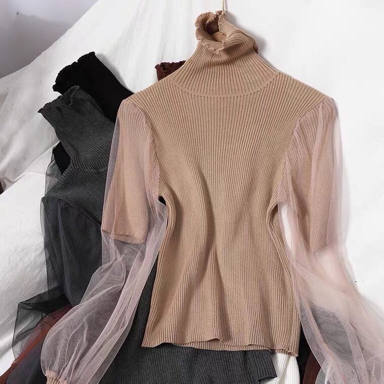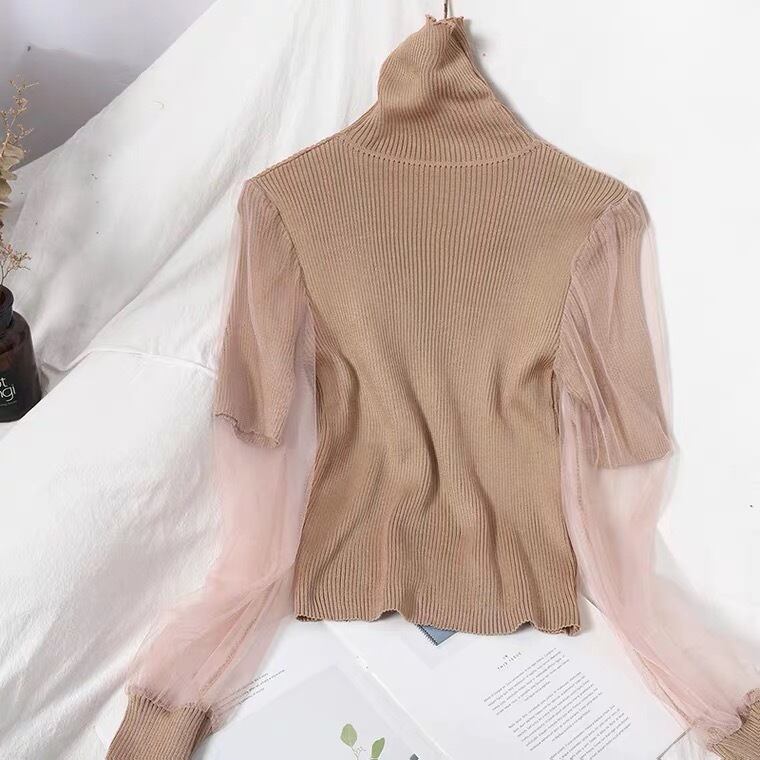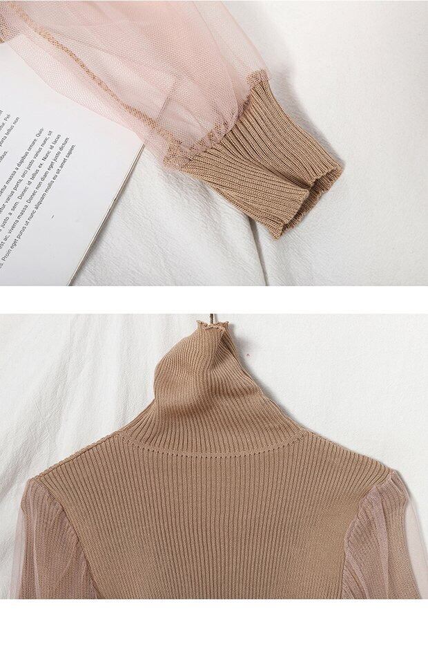 【tops】チュール切り替えニットセーター3色