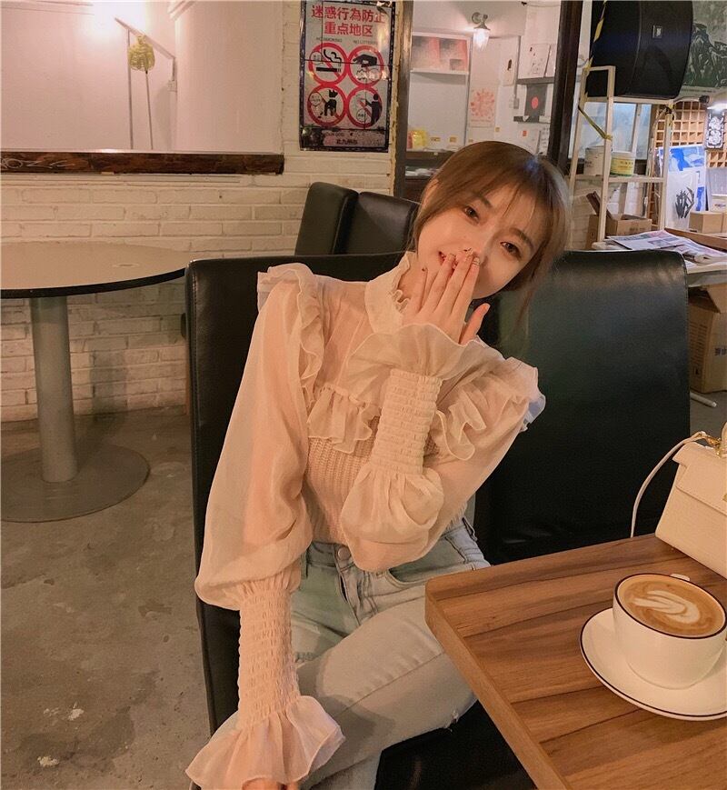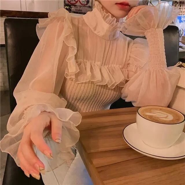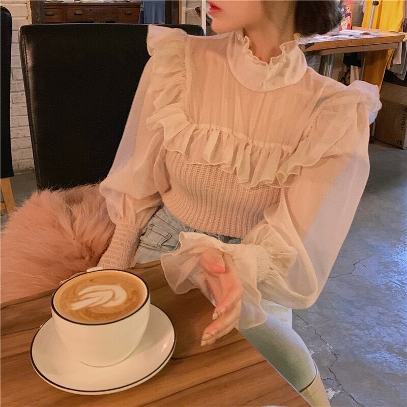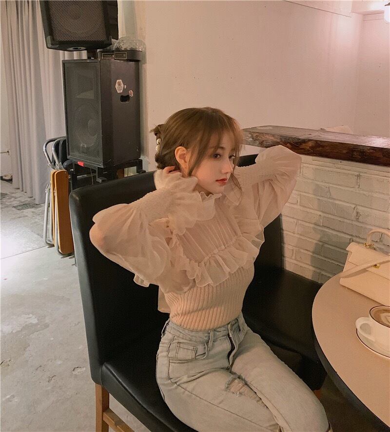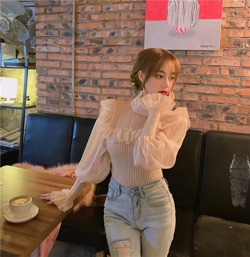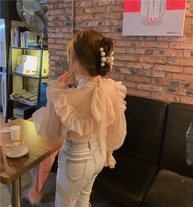 【tops】フリルチュール切り替え肌見せトップス TK2209
