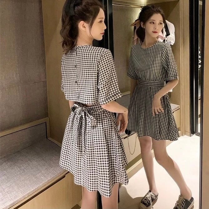 【dress】ギンガムバックデザインワンピース TK4200