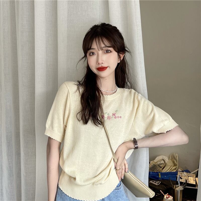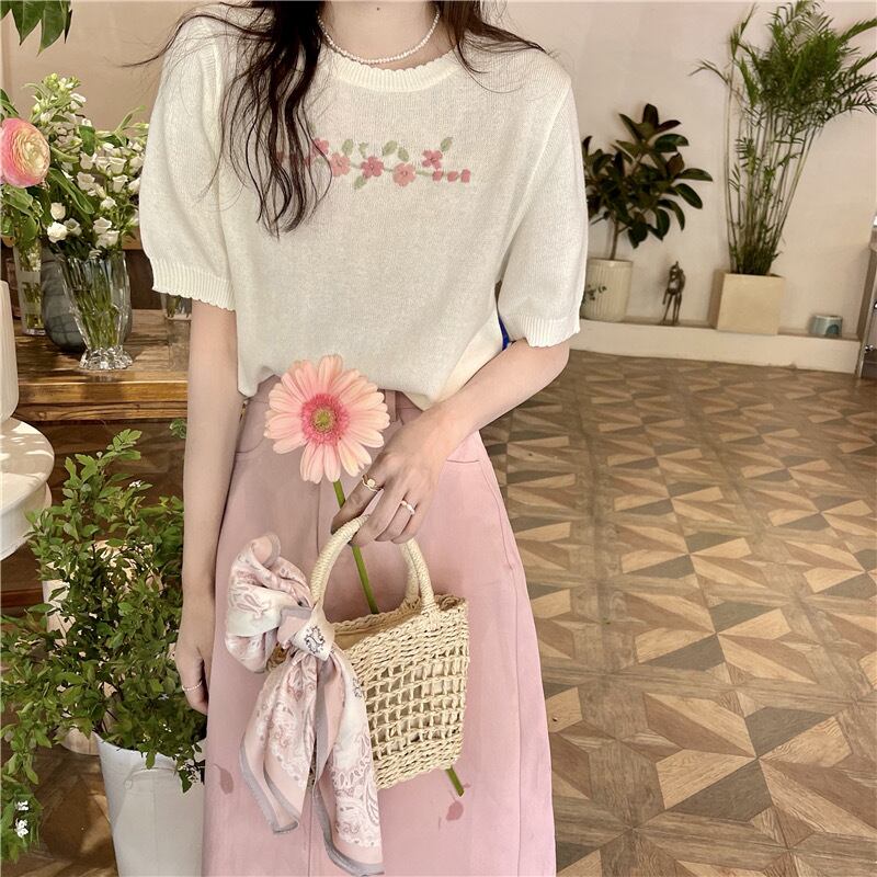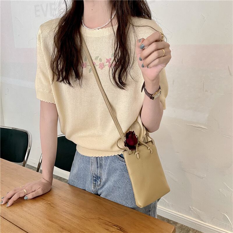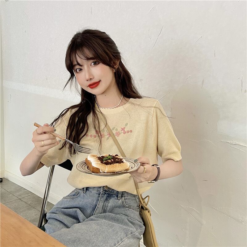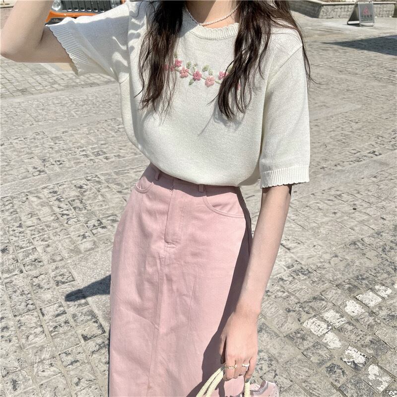 【tops】シンプルデザインニットトップス2色