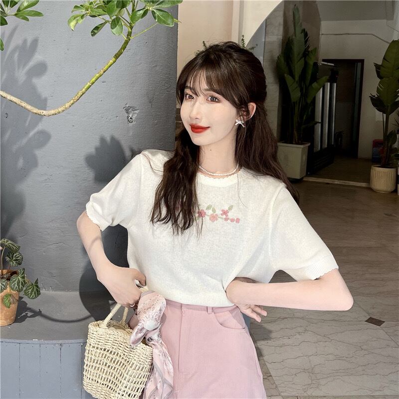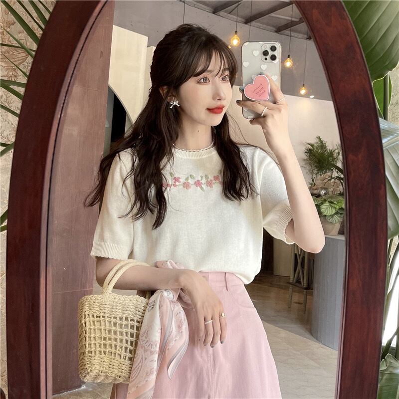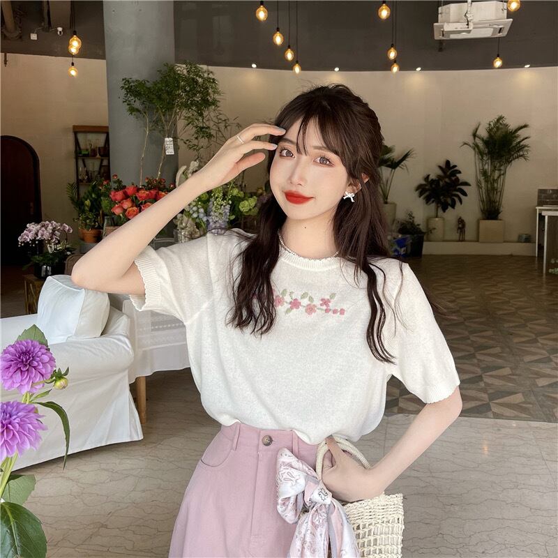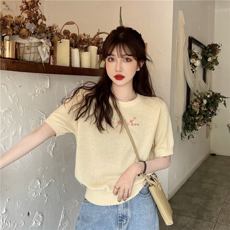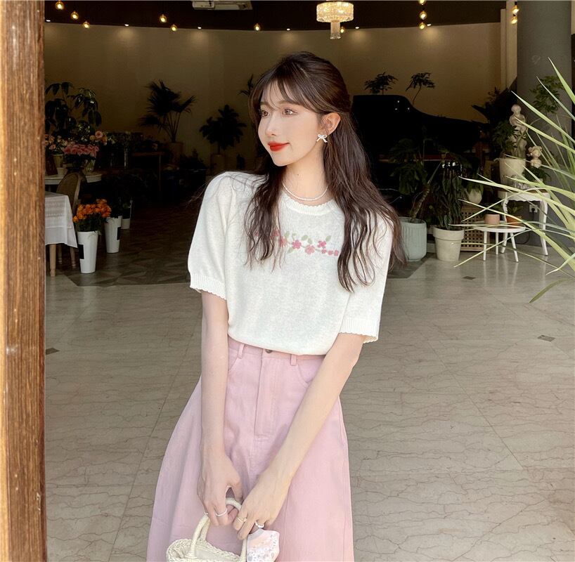 【tops】シンプルデザインニットトップス2色