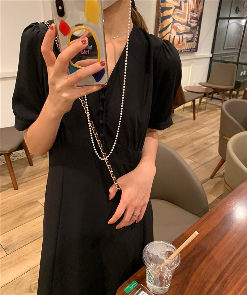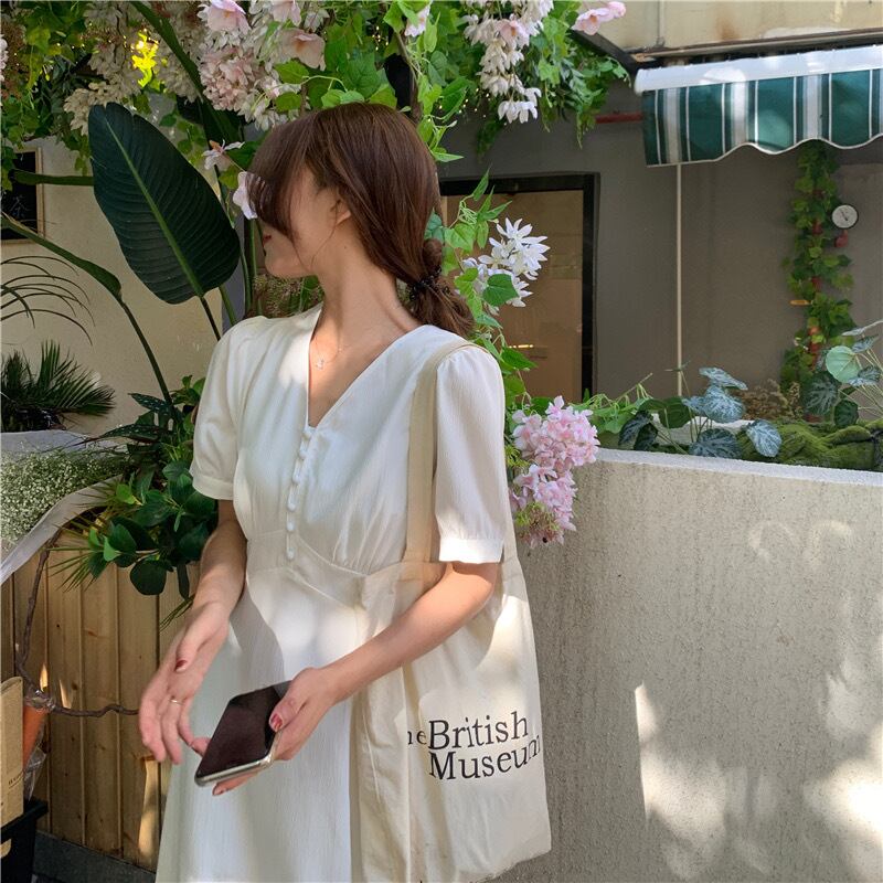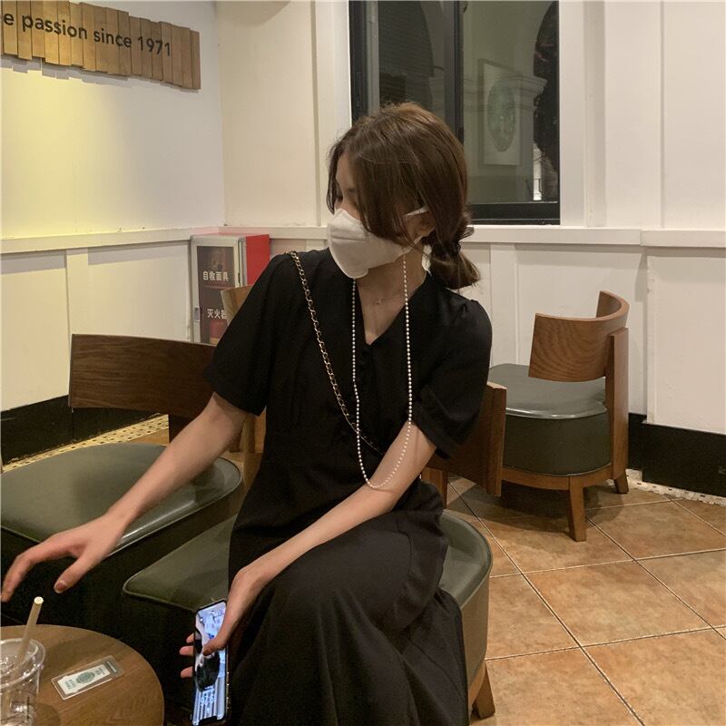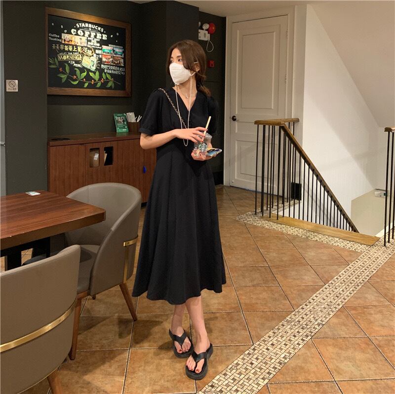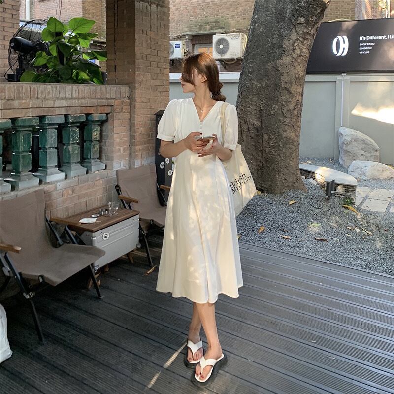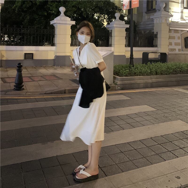 【dress】Vネックシンプルデザインワンピース2色