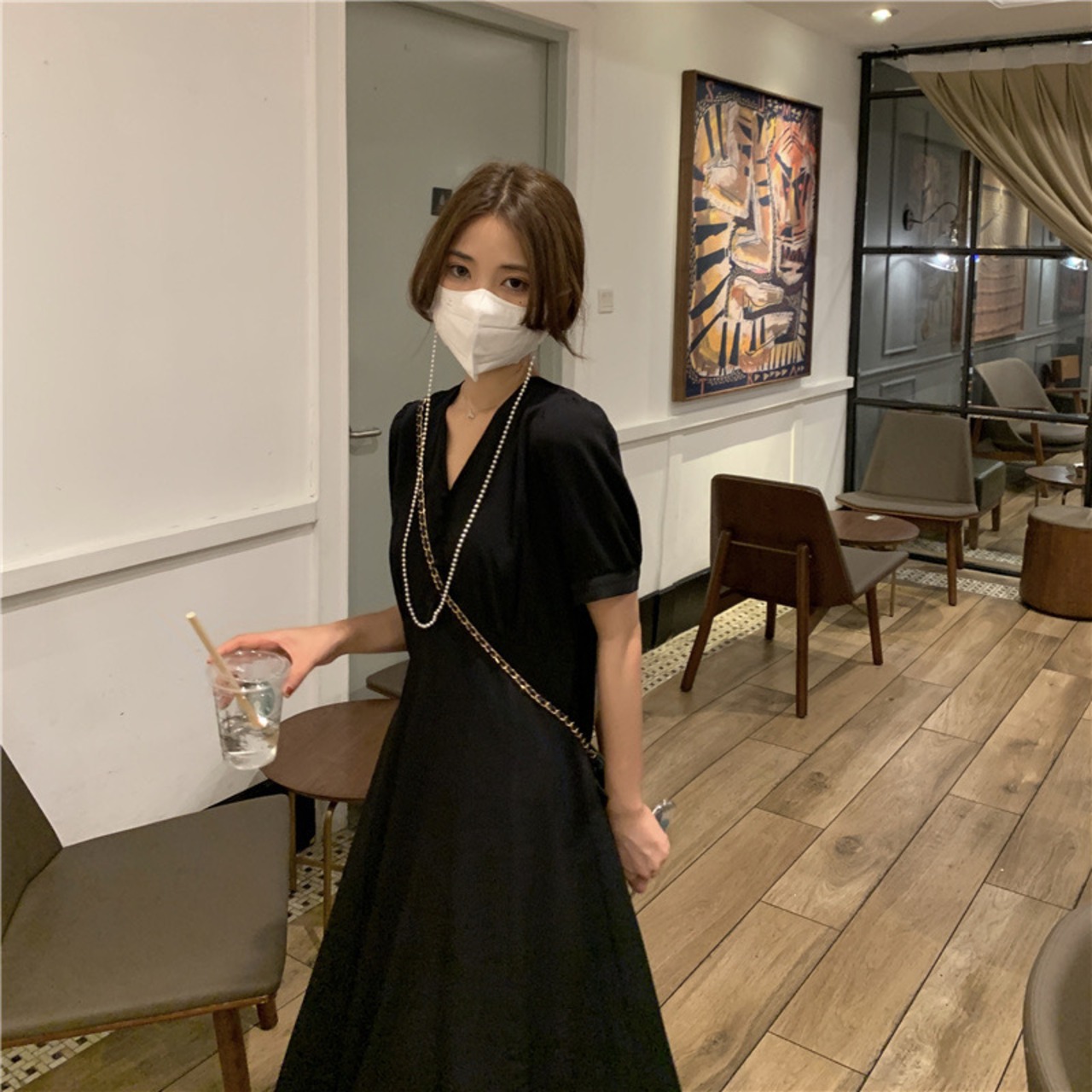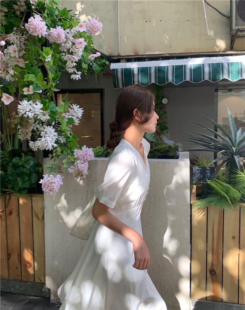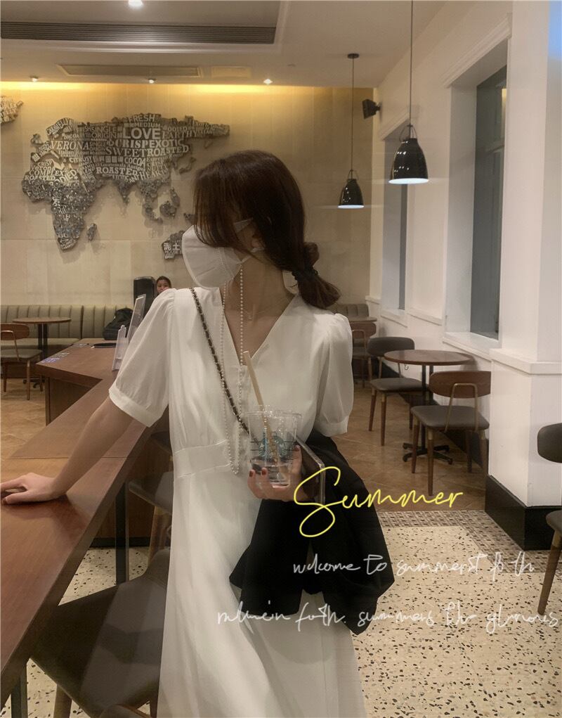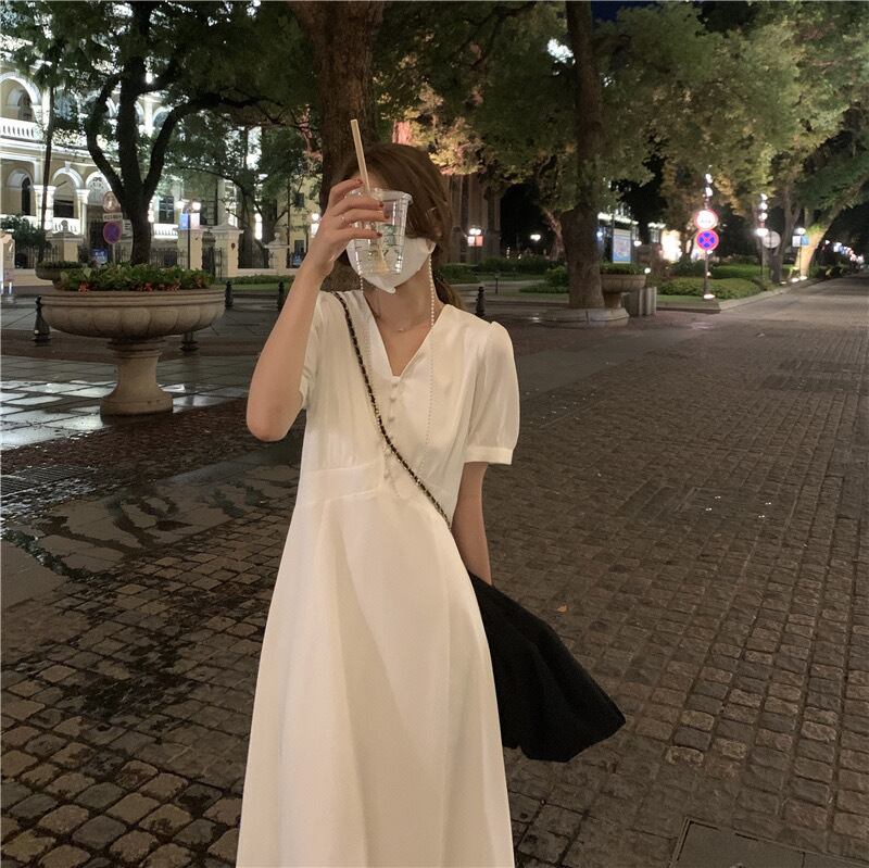 【dress】Vネックシンプルデザインワンピース2色