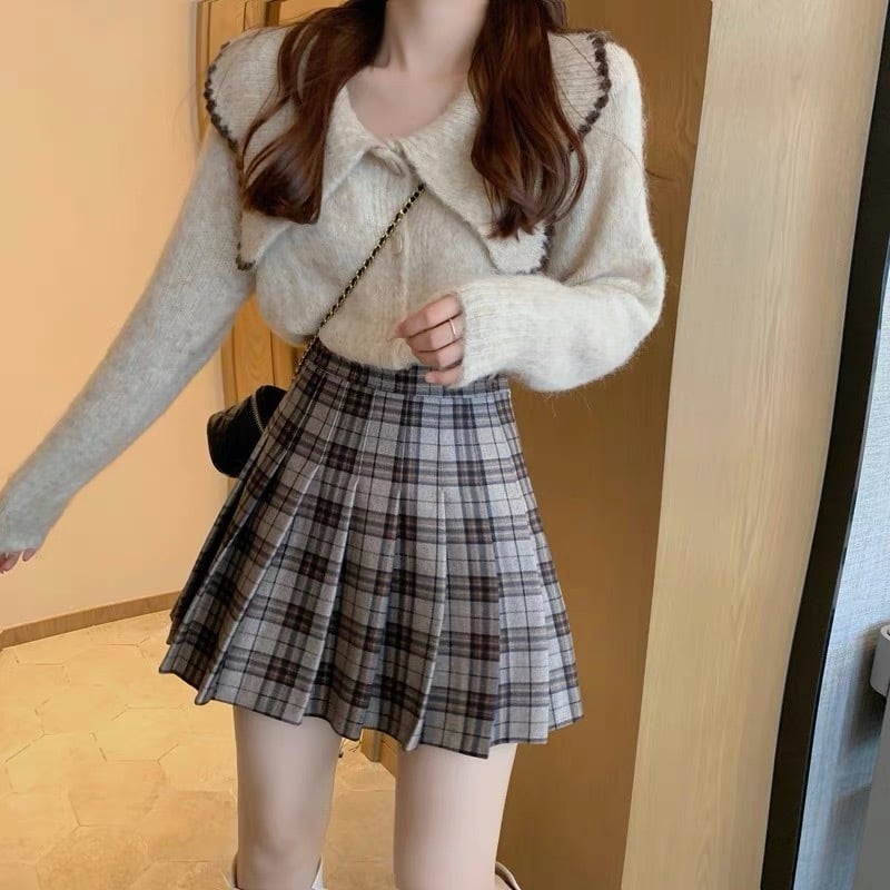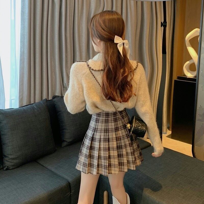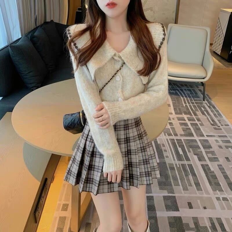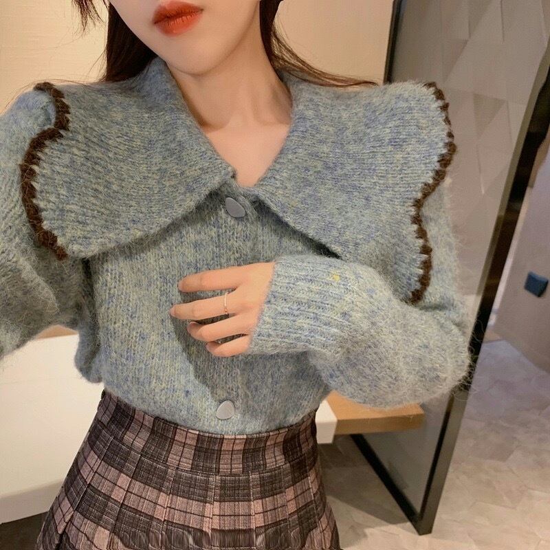 【outer】ビッグ襟長袖ニットトップス2色