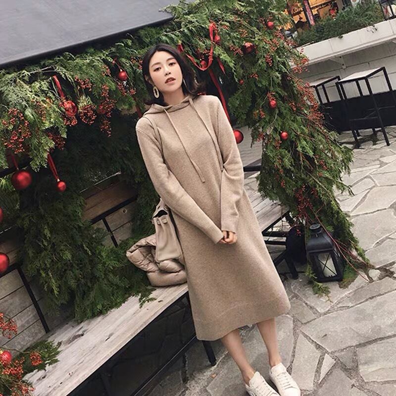 【dress】フード付きカジュアルパーカーワンピース3色 TK7009