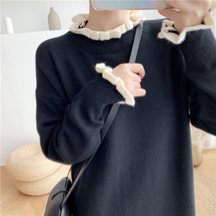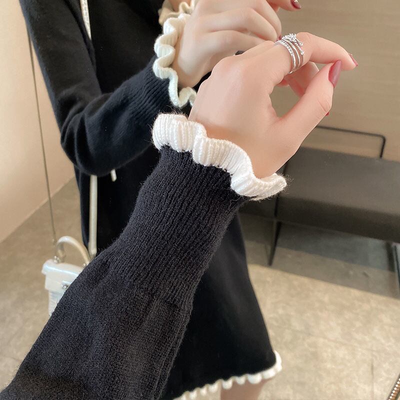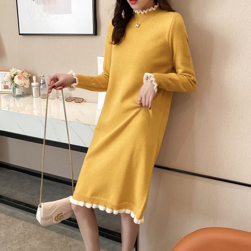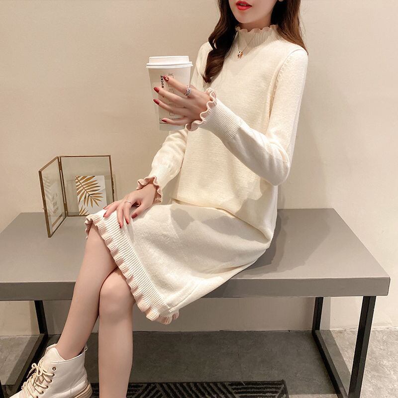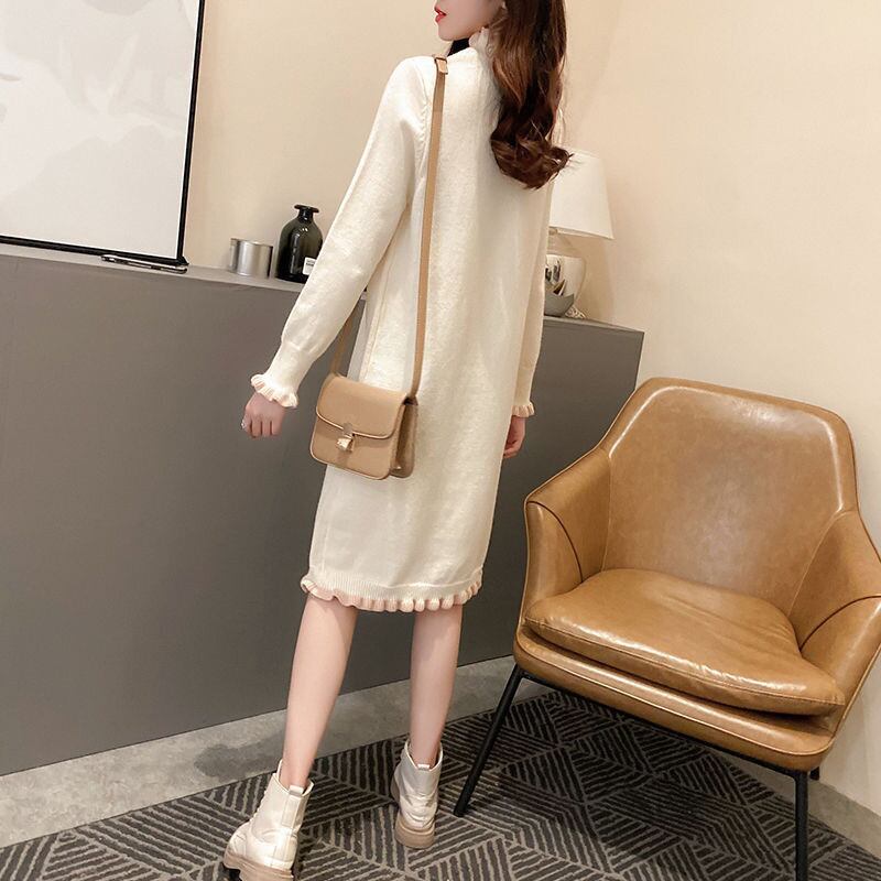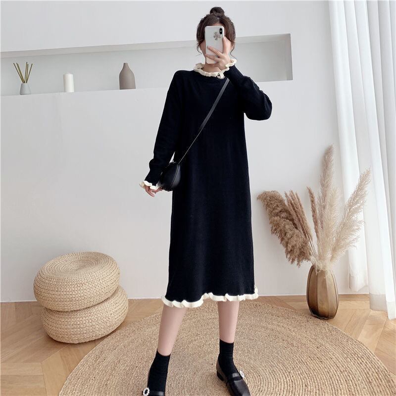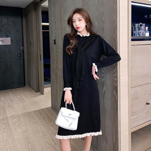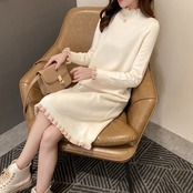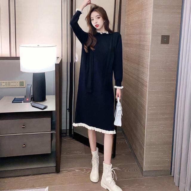 【dress】フリル長袖ニットワンピース3色