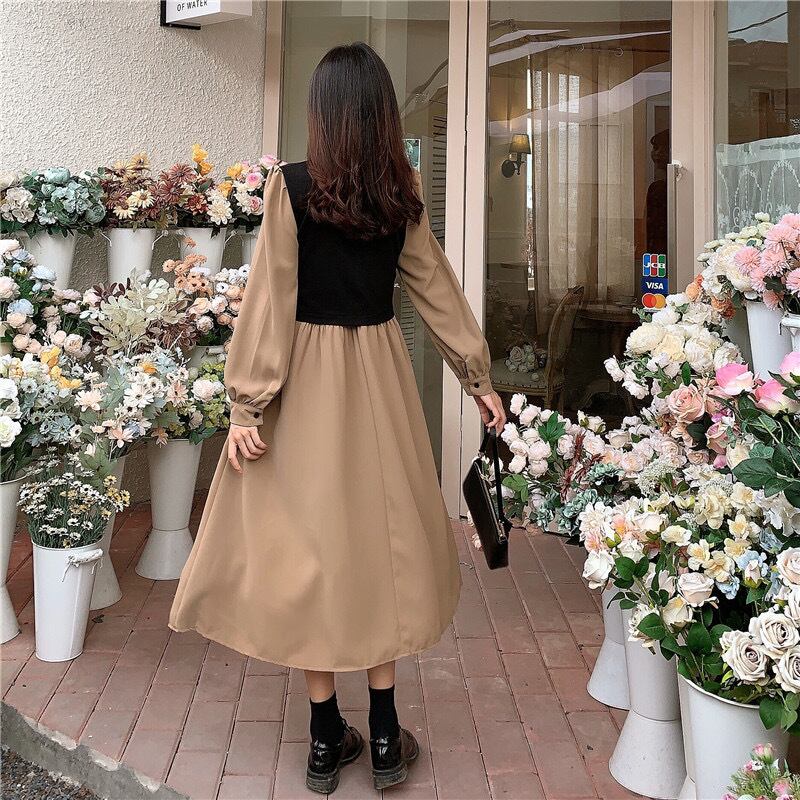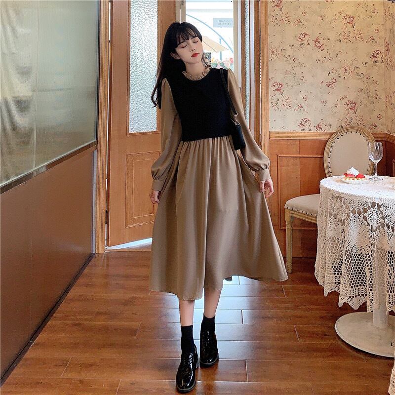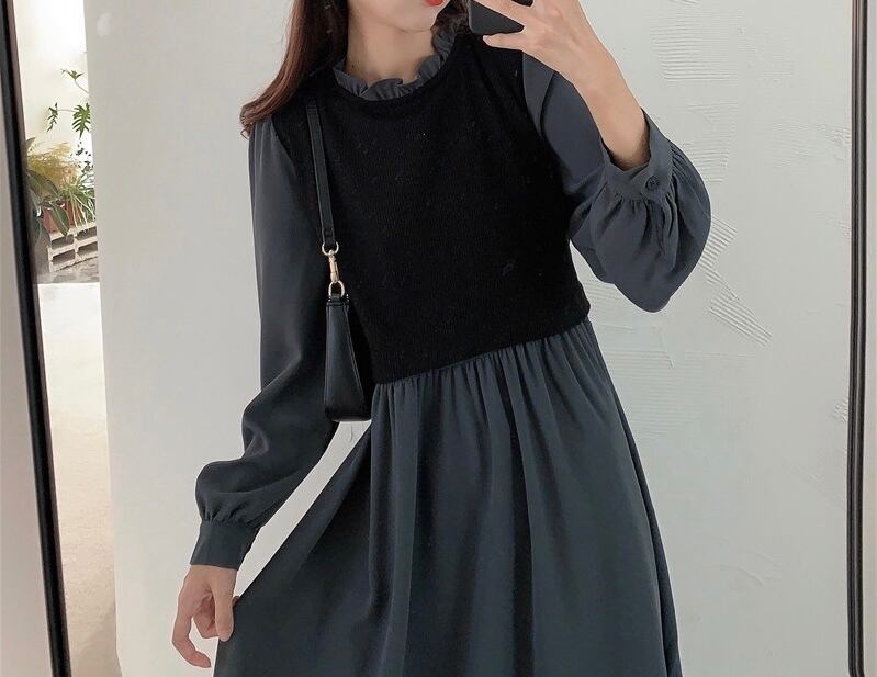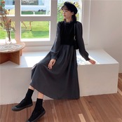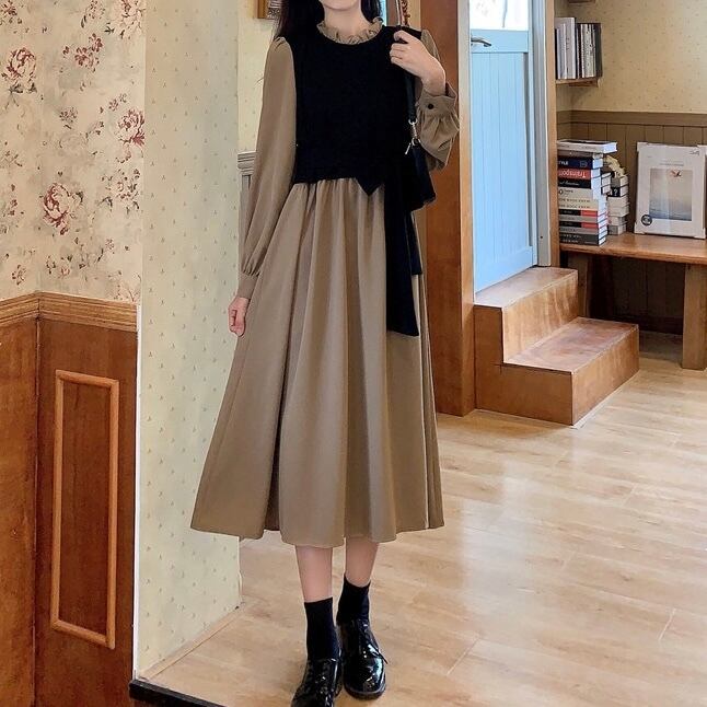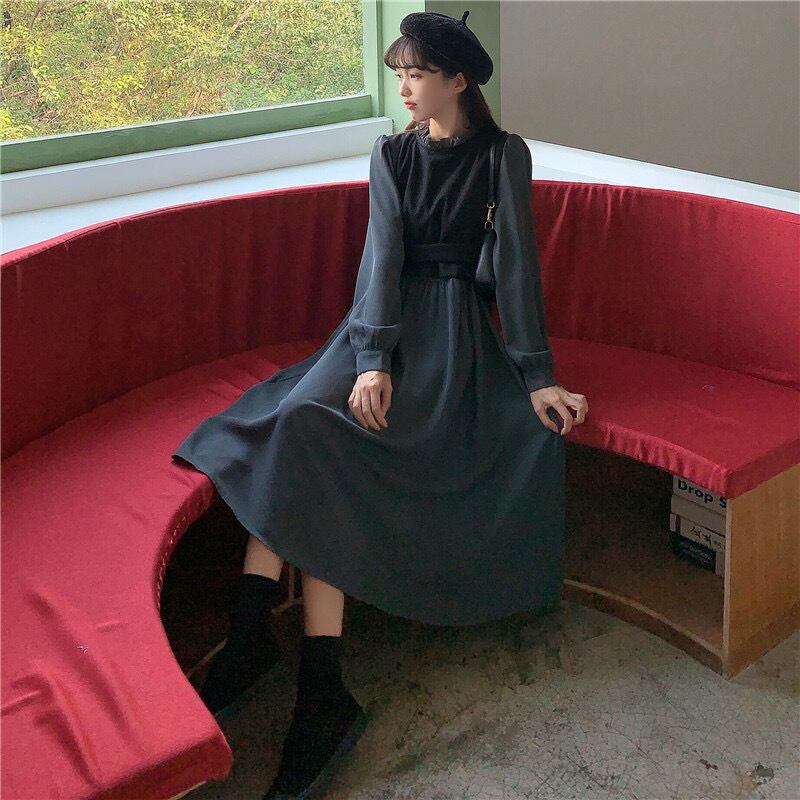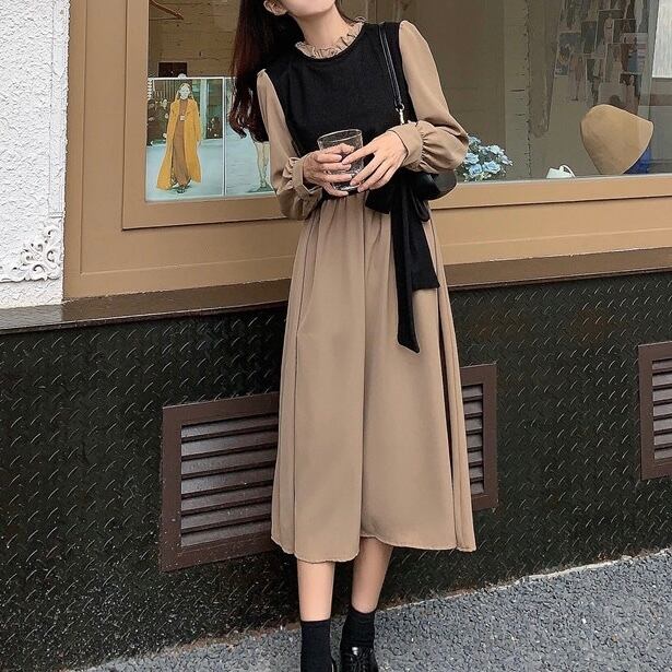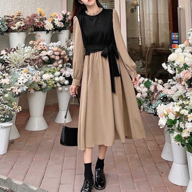 【dress】リボンベルト長袖ワンピース2色 OR1090