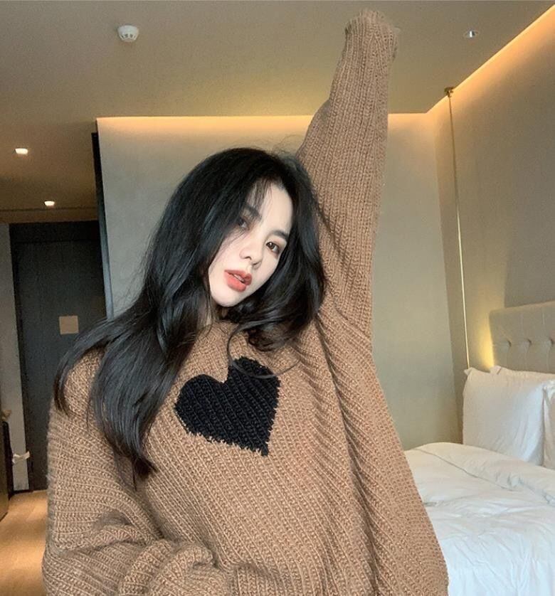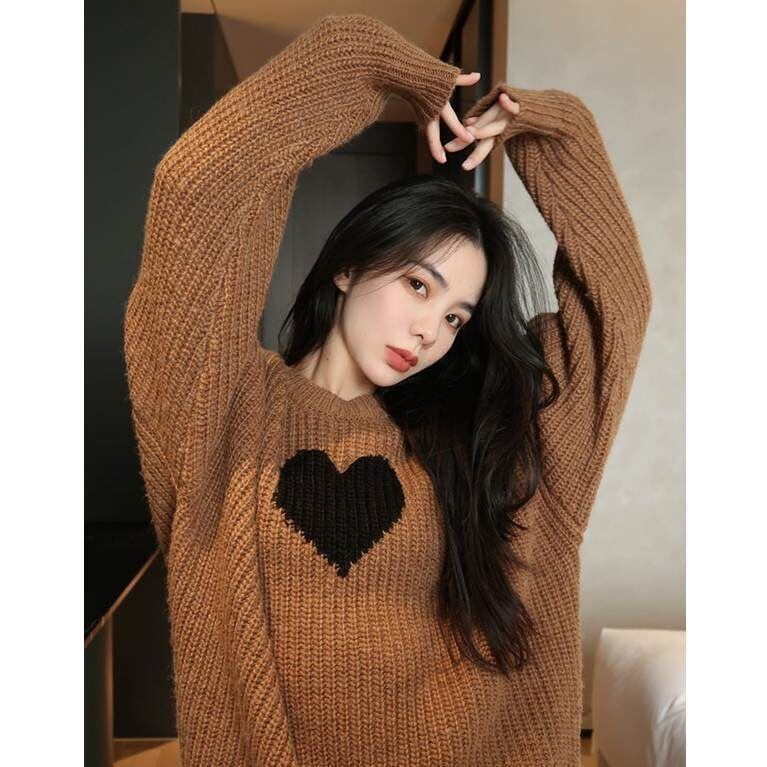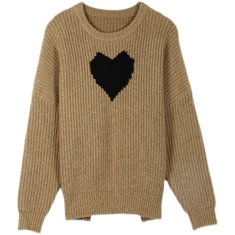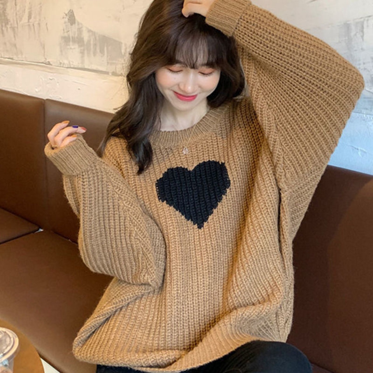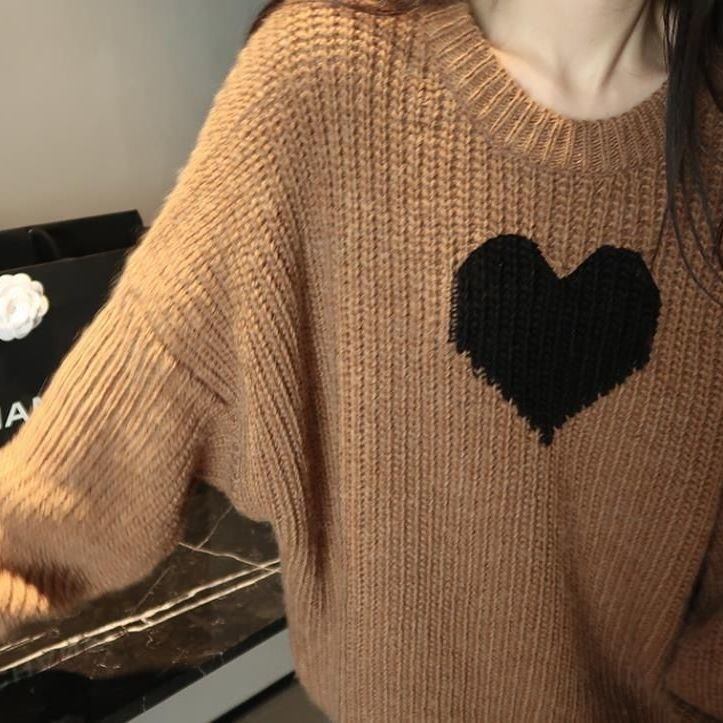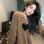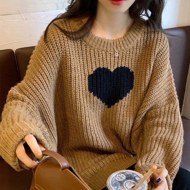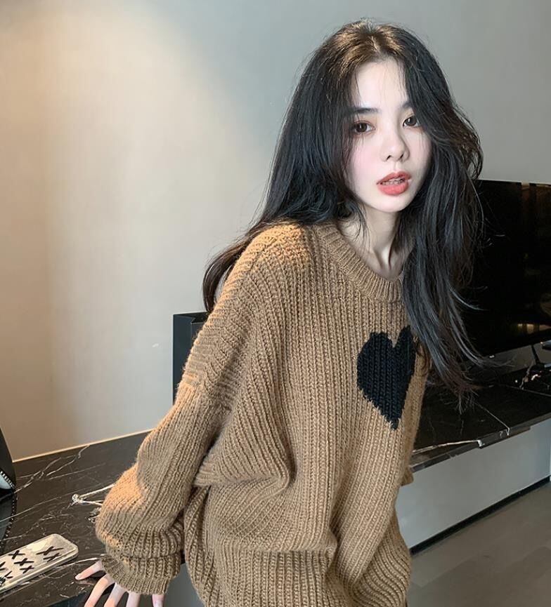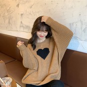 【tops】ラウンドネックゆったりカジュアル長袖ニットセーター