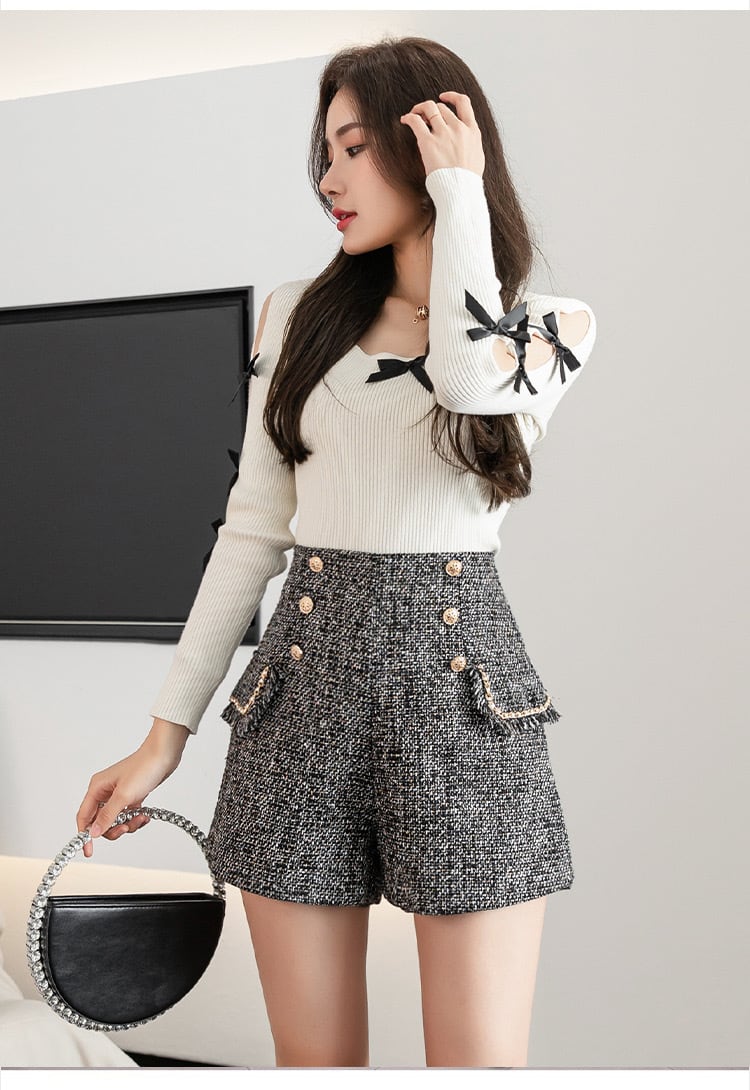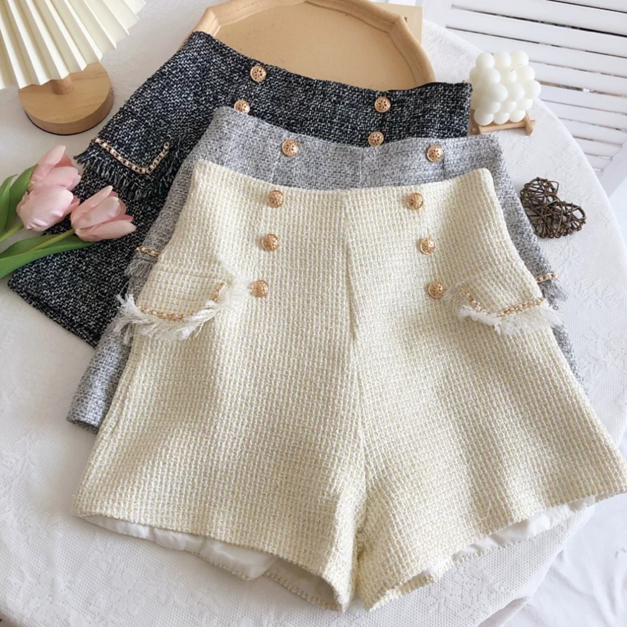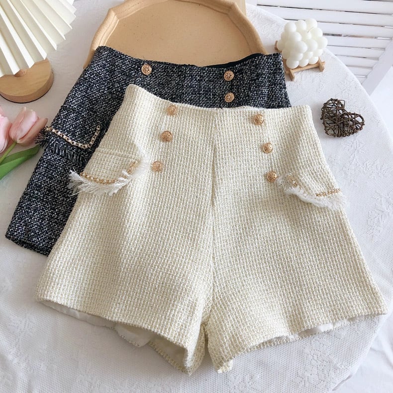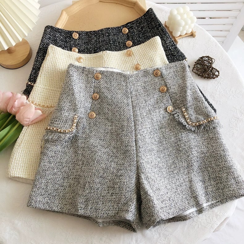 【bottoms】ボタンツイードショートパンツ3色 TK2211