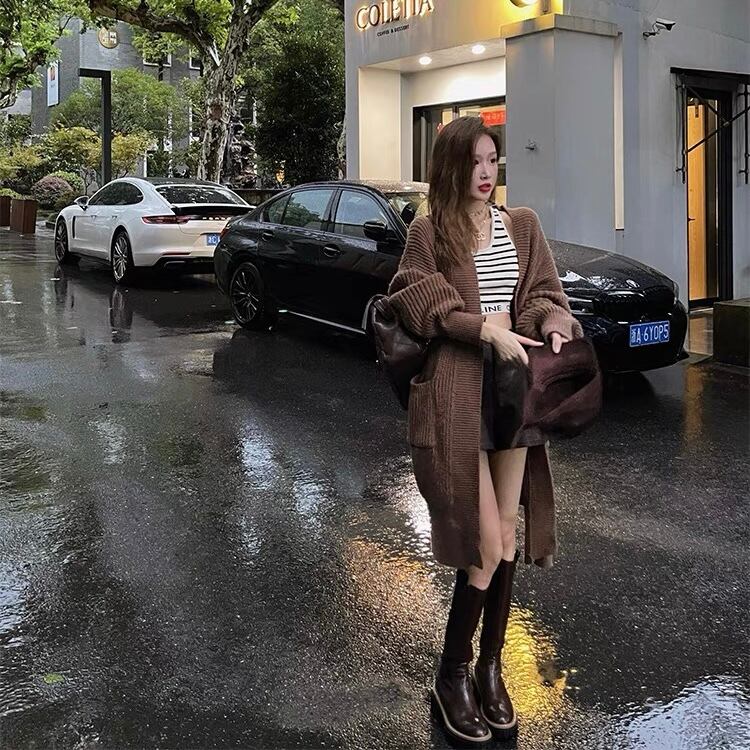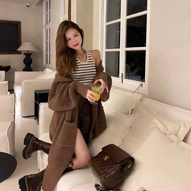 【outer】韓国系ポケット付きカジュアルゆったりカーディガン4色