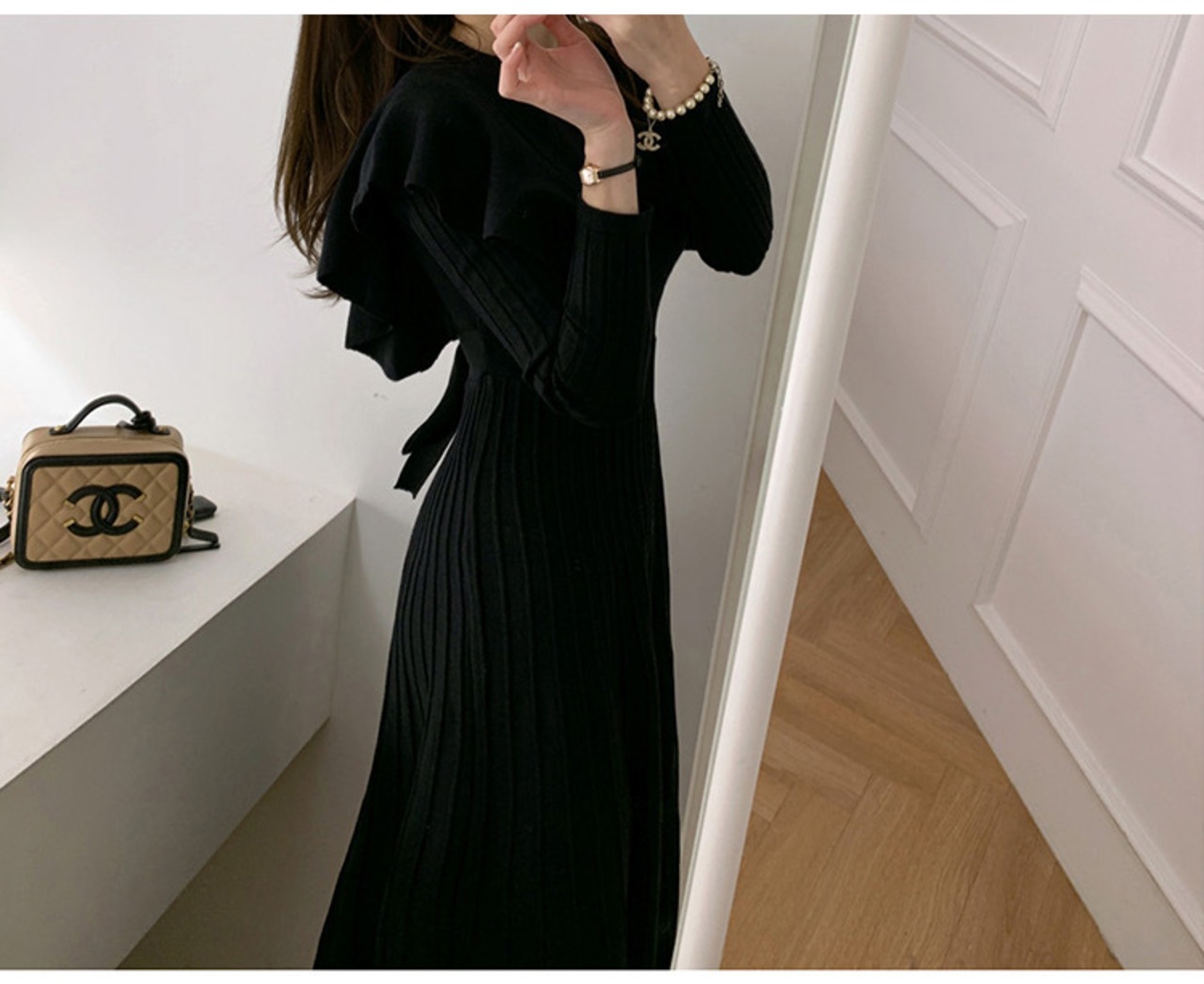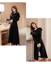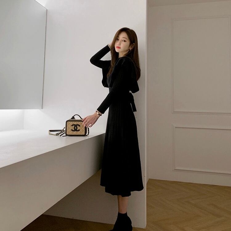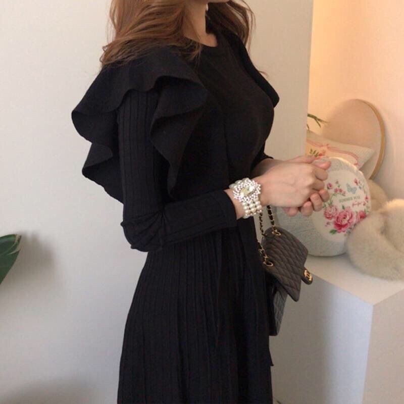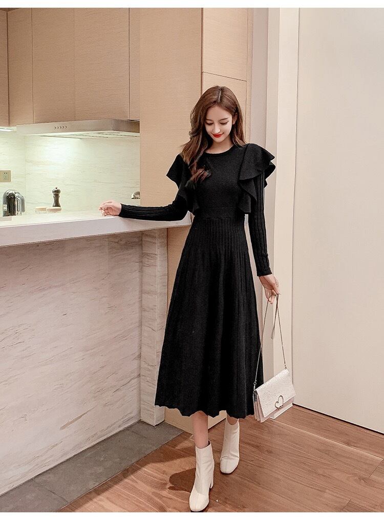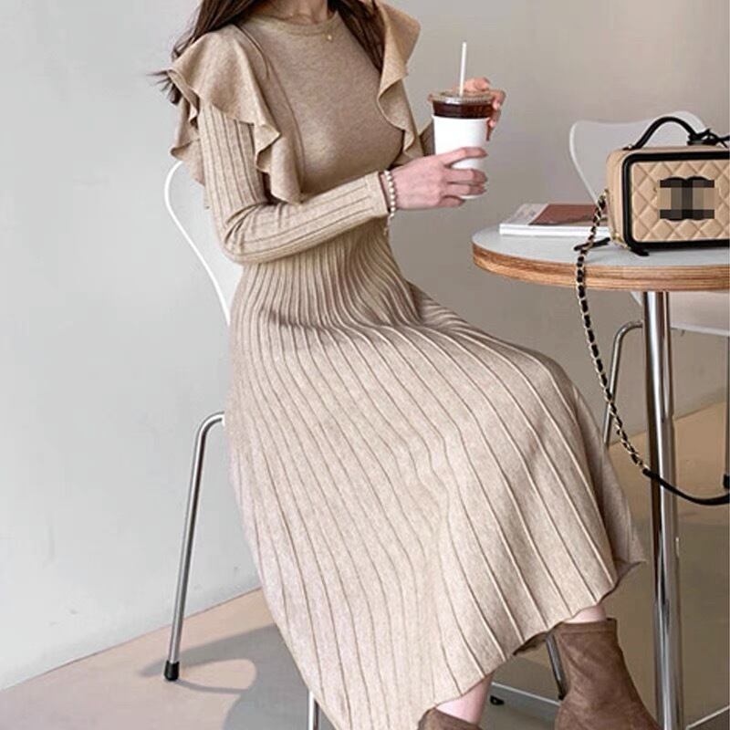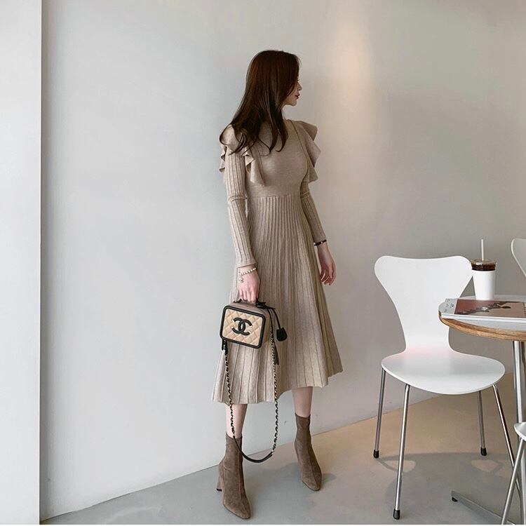 【dress】韓国系2wayリボンベルトフリルニットワンピース2色 TK1994