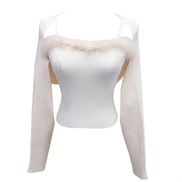 【set】フェイクファー付きキャミソールxカーディガン BN0315