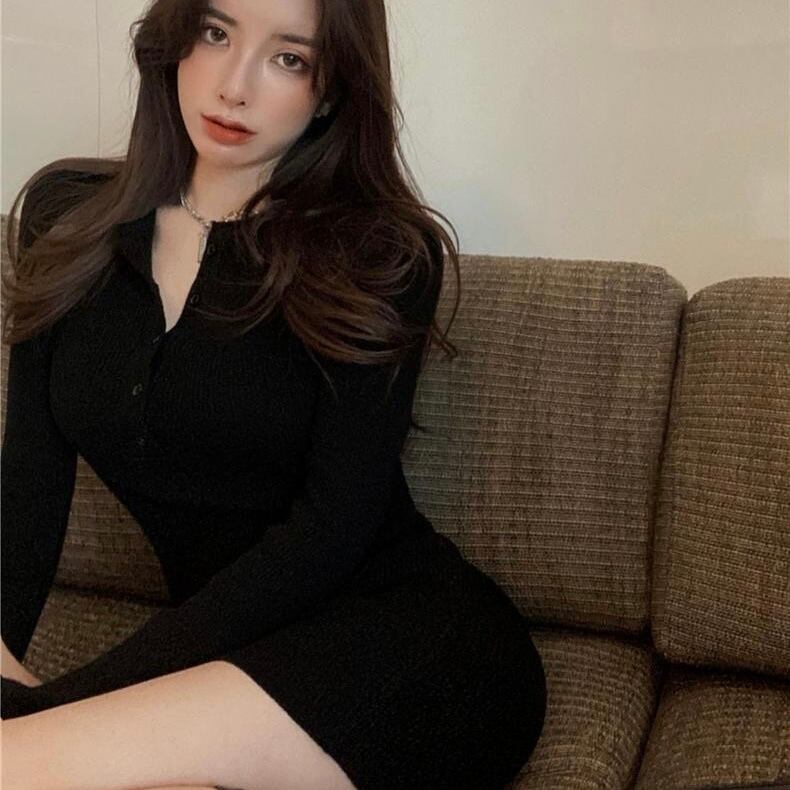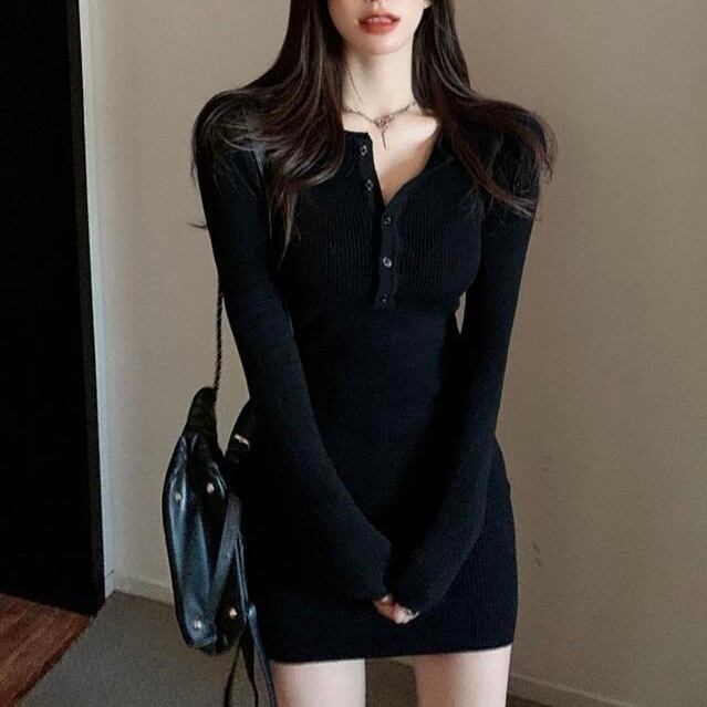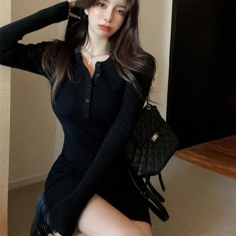 【dress】フロントボタンニットミニワンピース BN0312