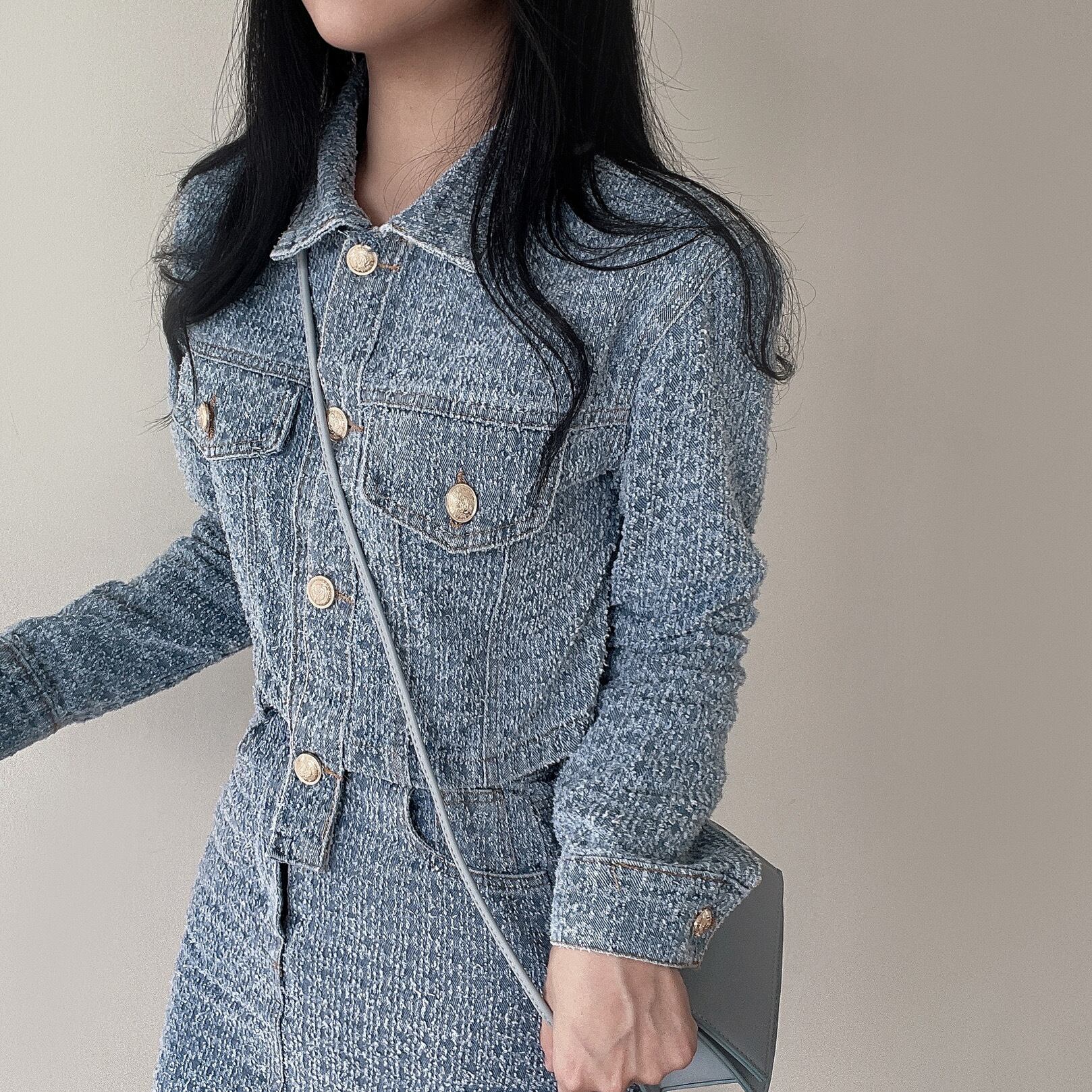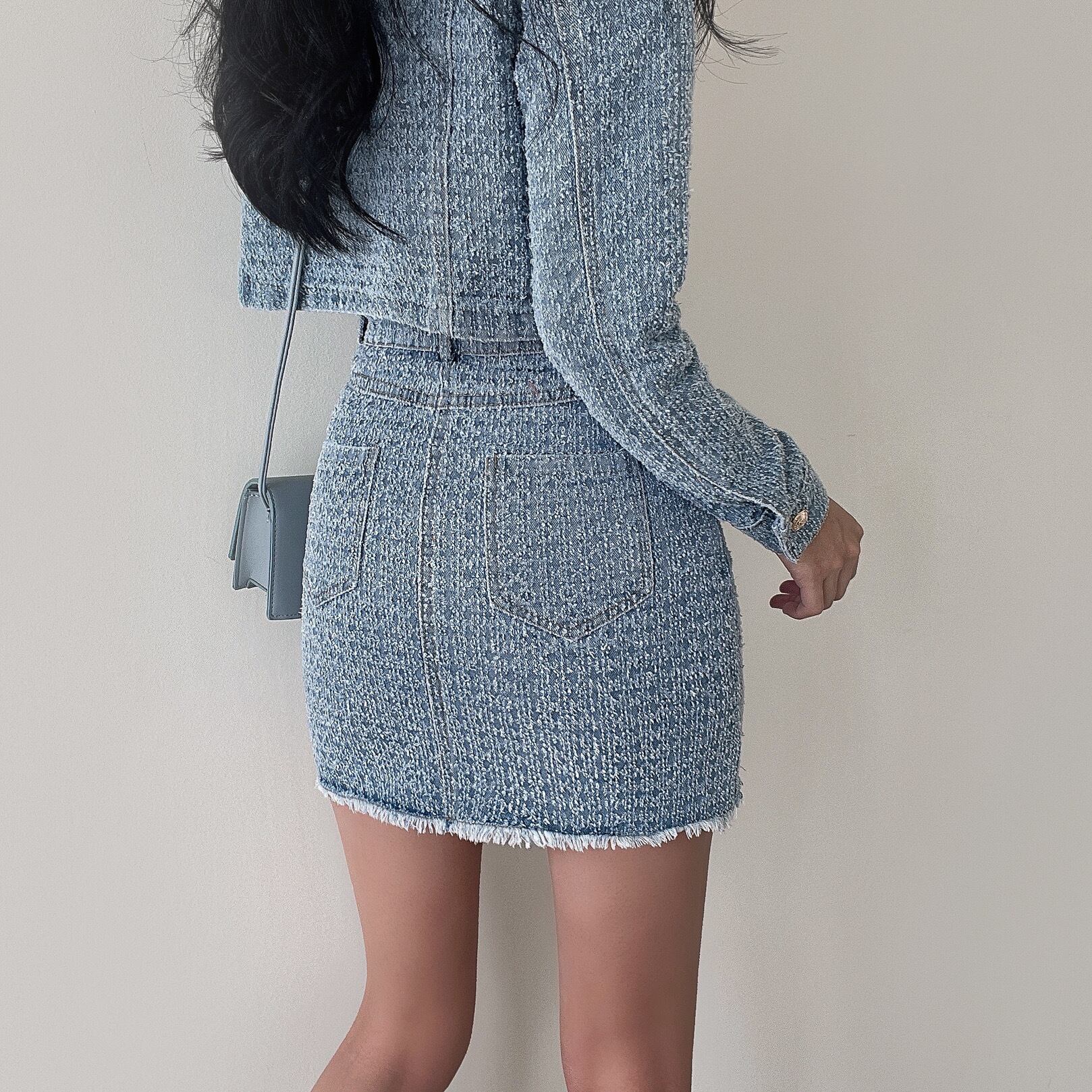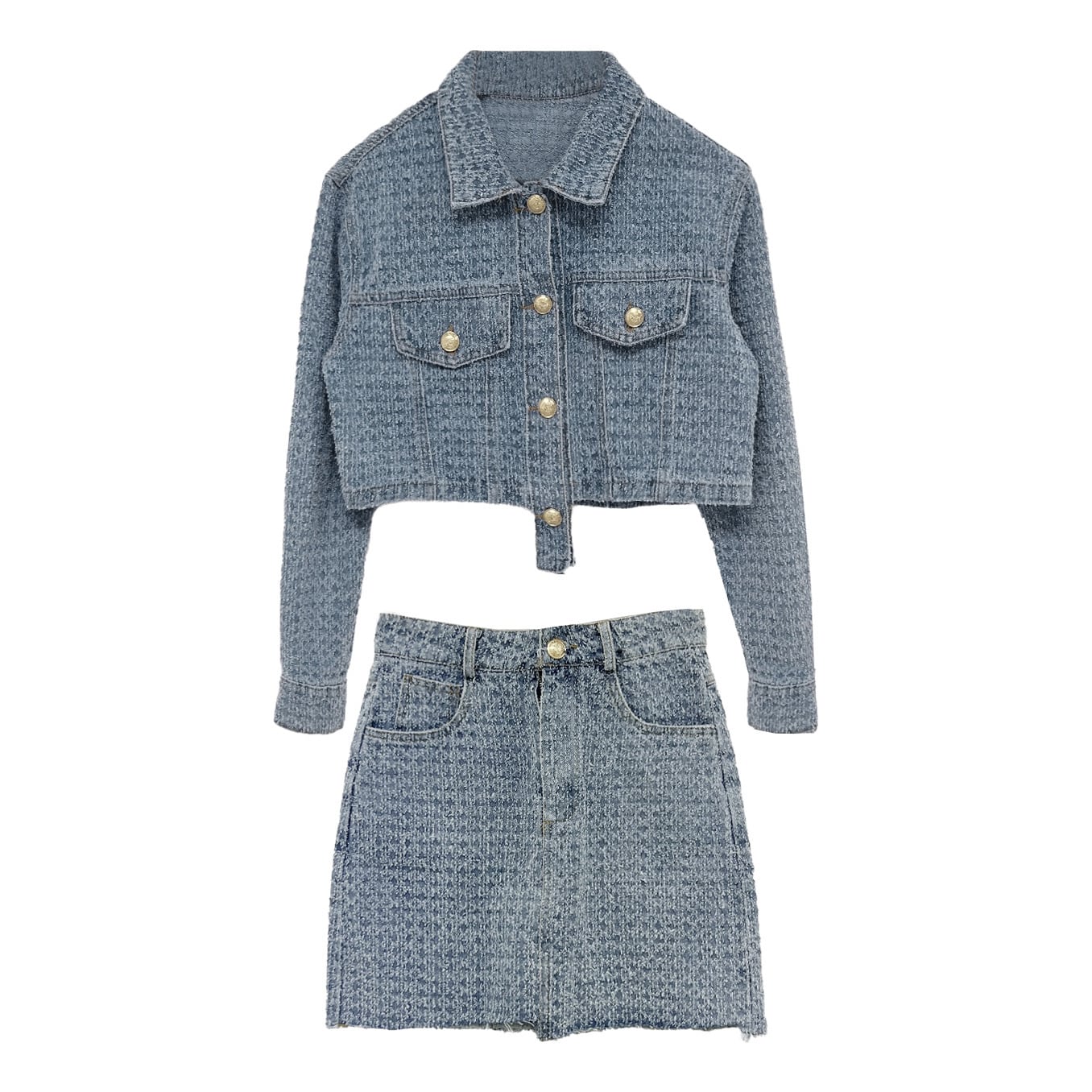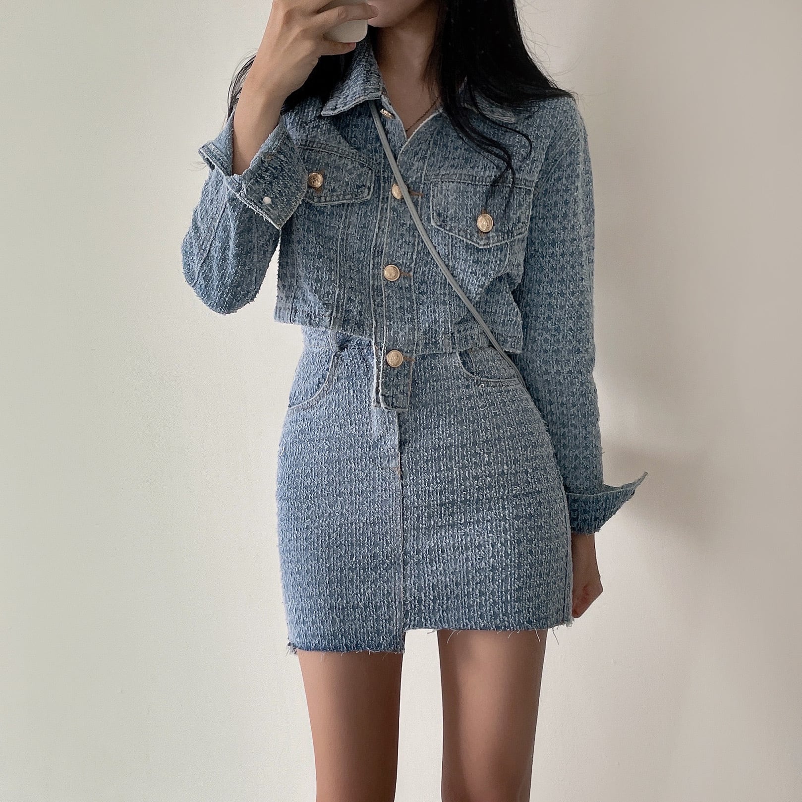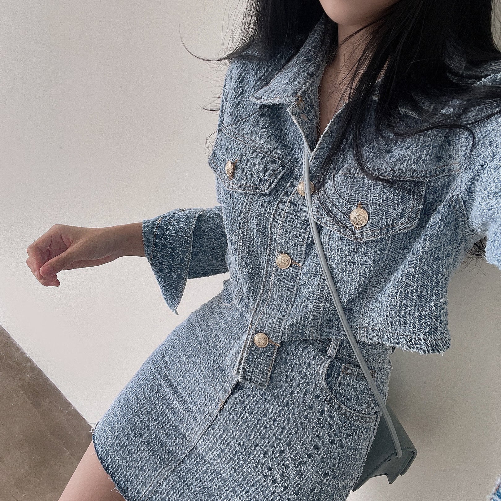 【set】デニムトップスアウターxミニスカートセットアップ BN0319