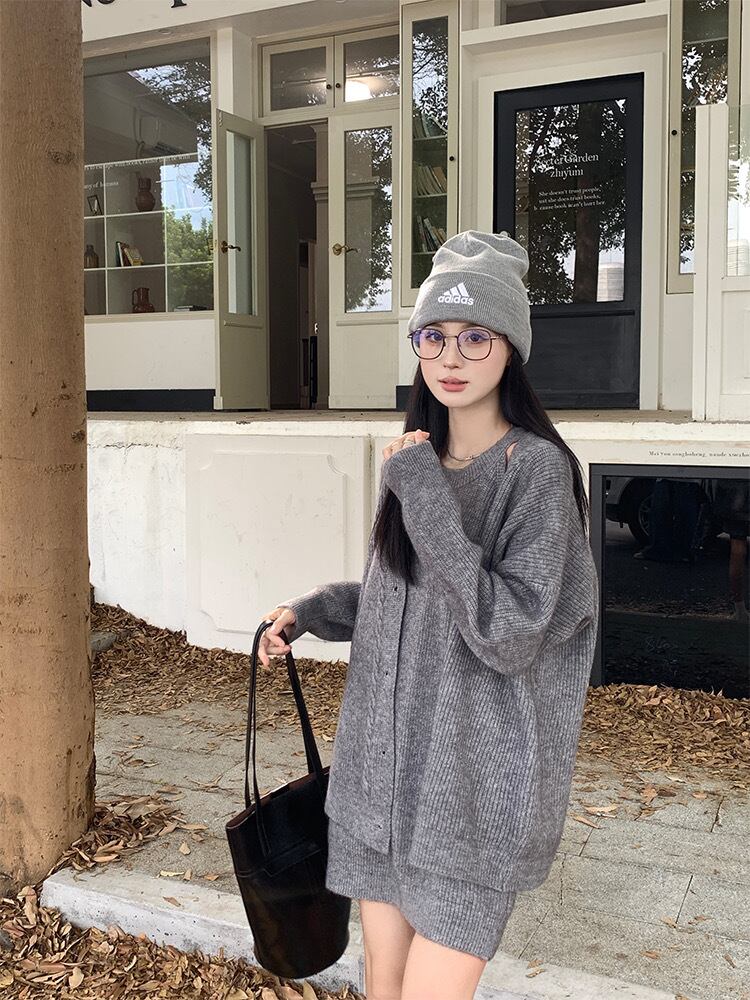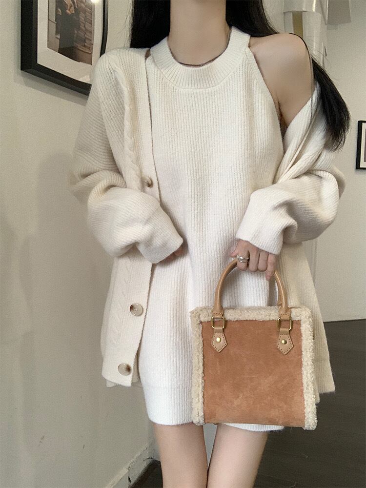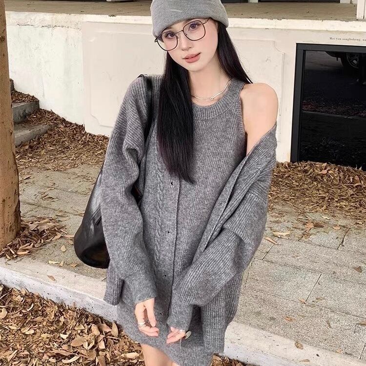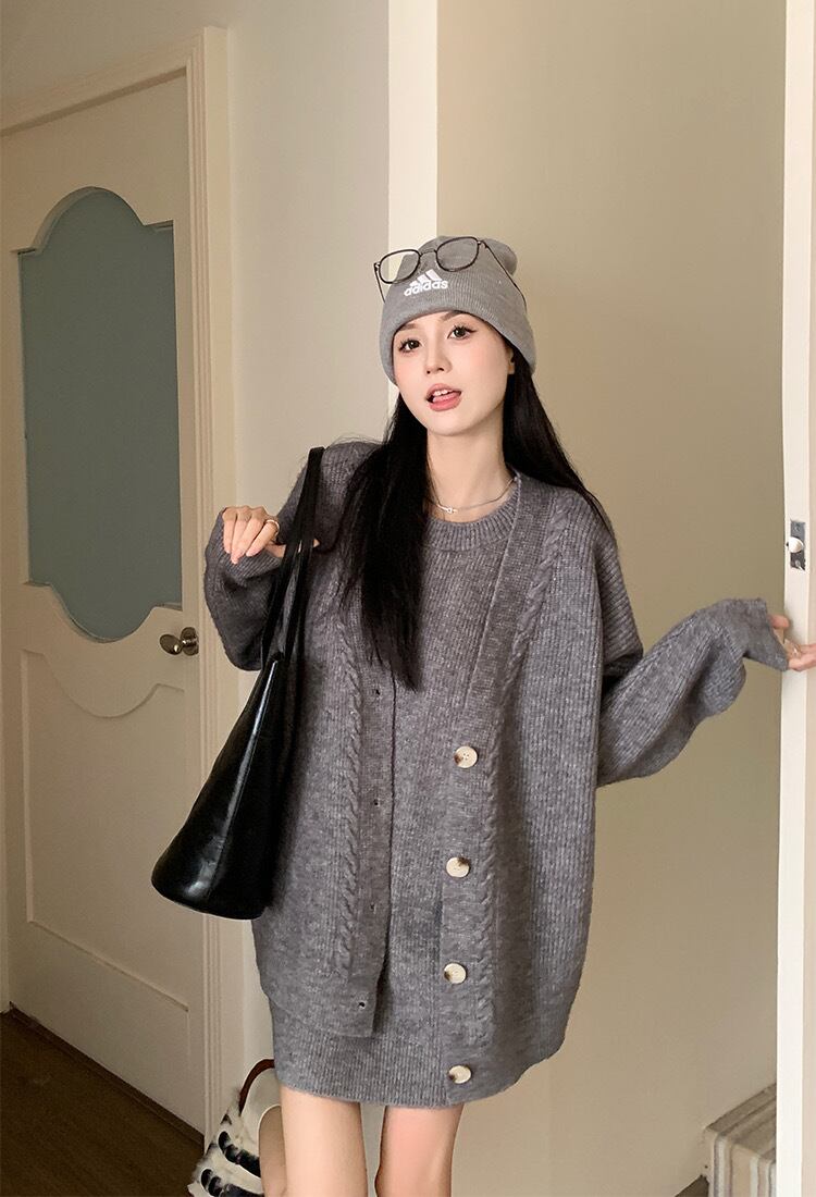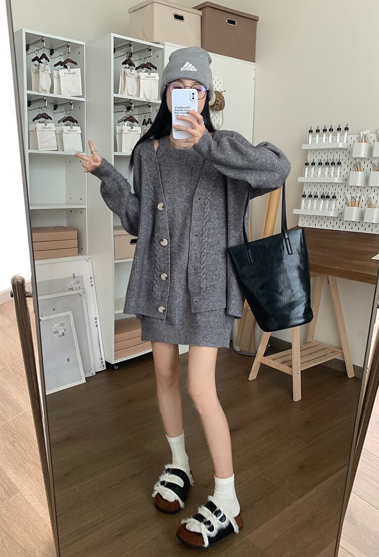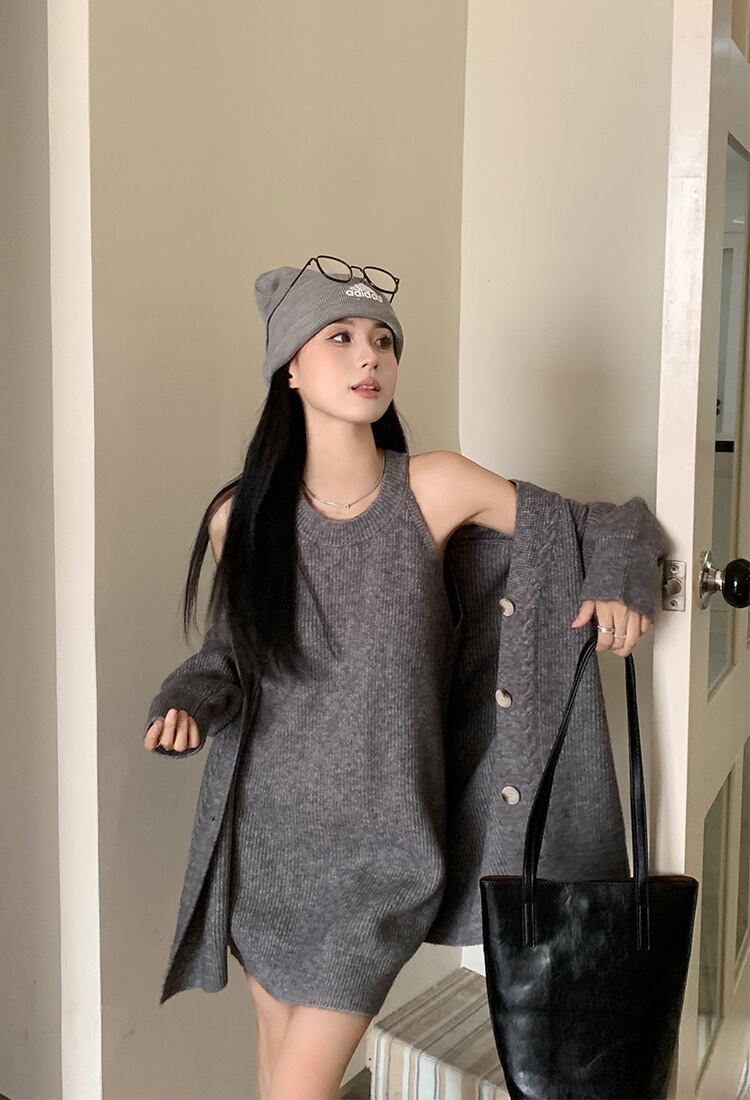 【set】ラウンドネックワンピースxカーディガン2色 BN0321