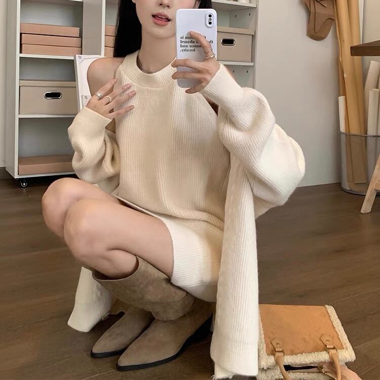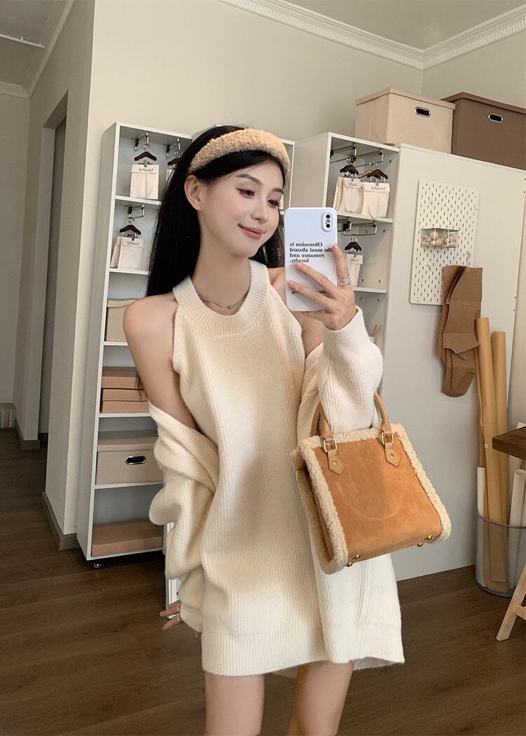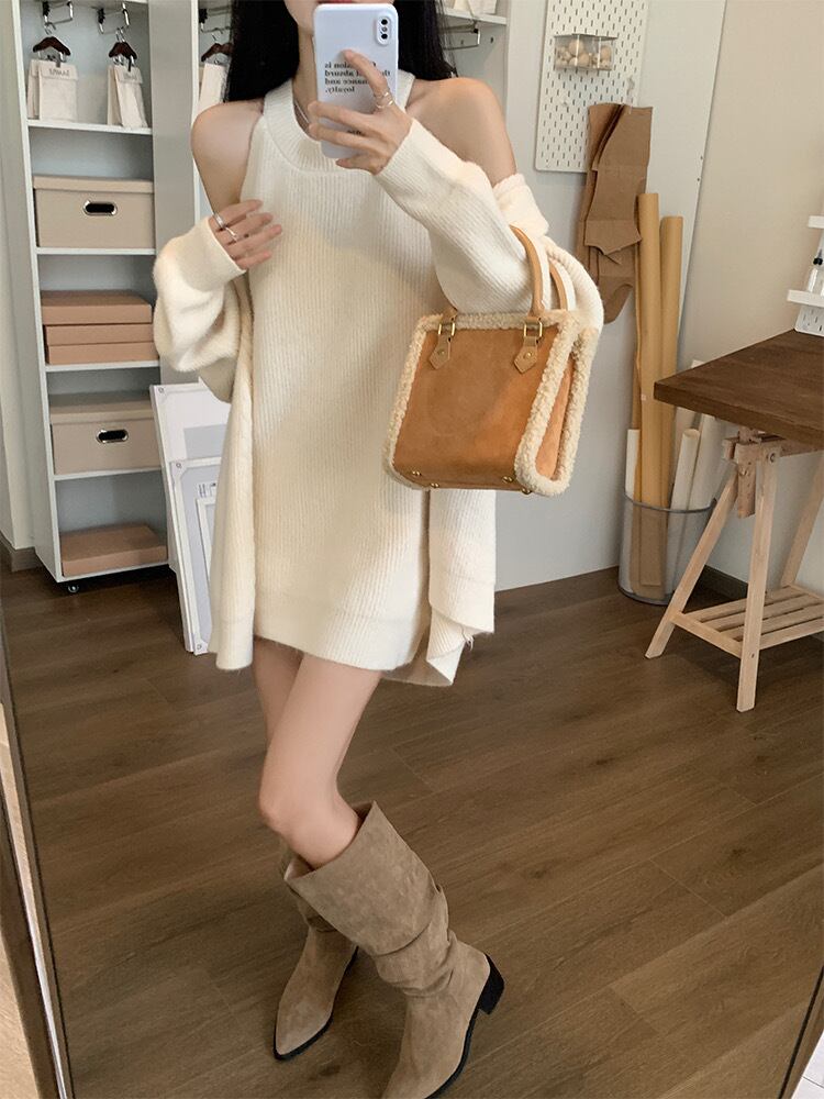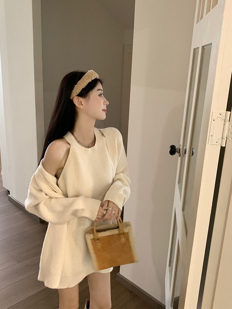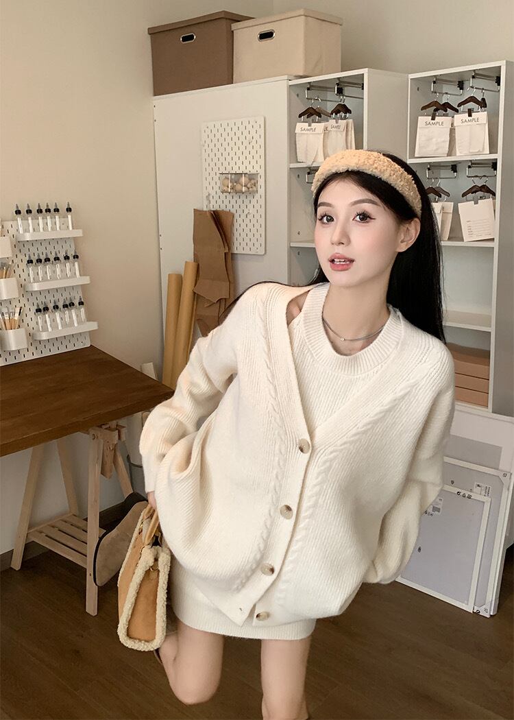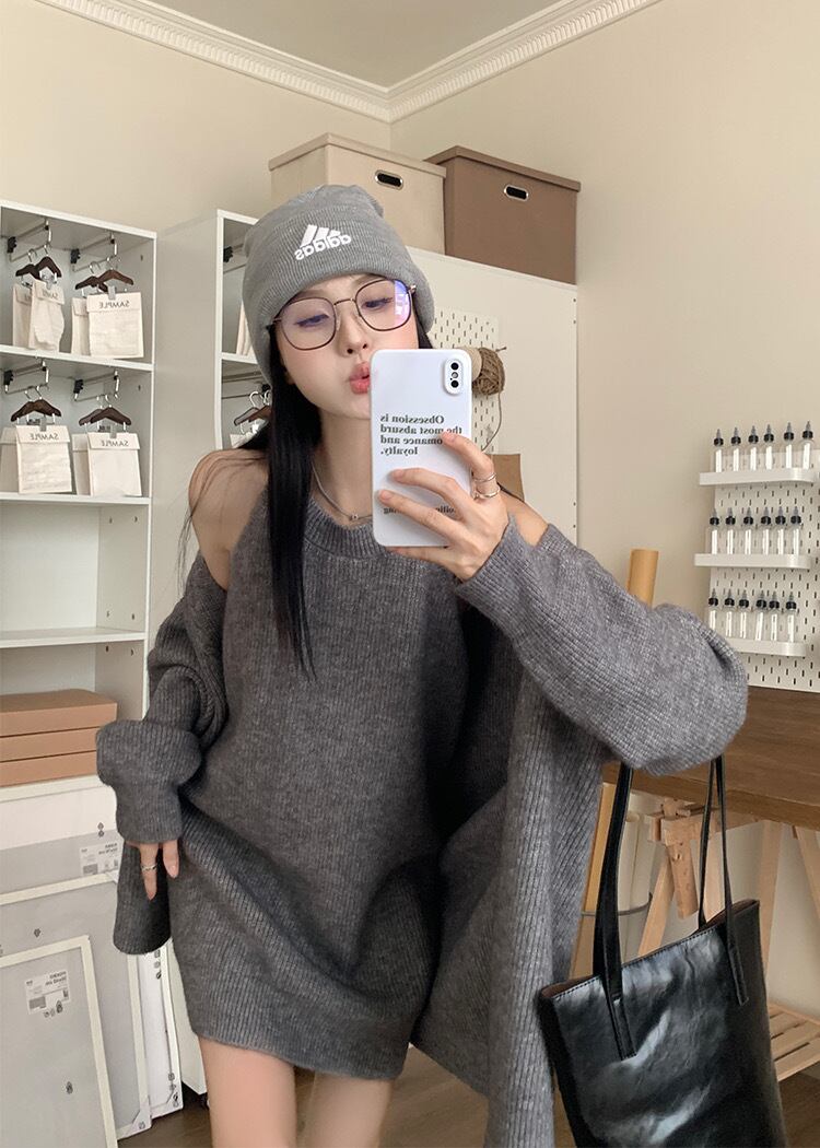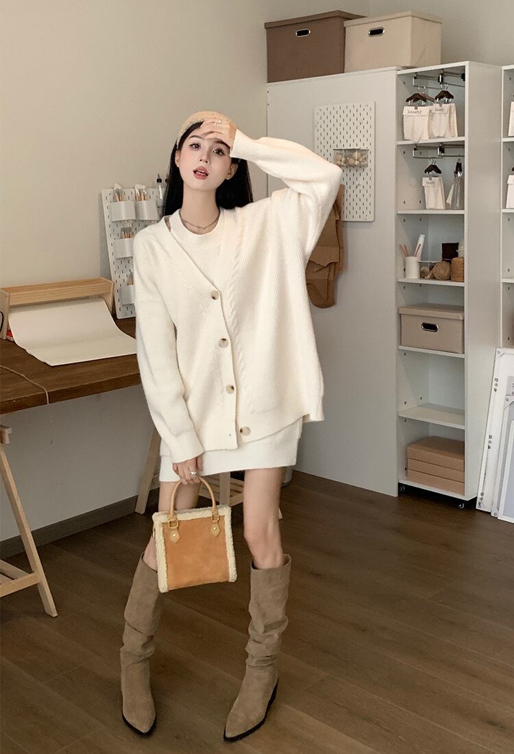 【set】ラウンドネックワンピースxカーディガン2色 BN0321