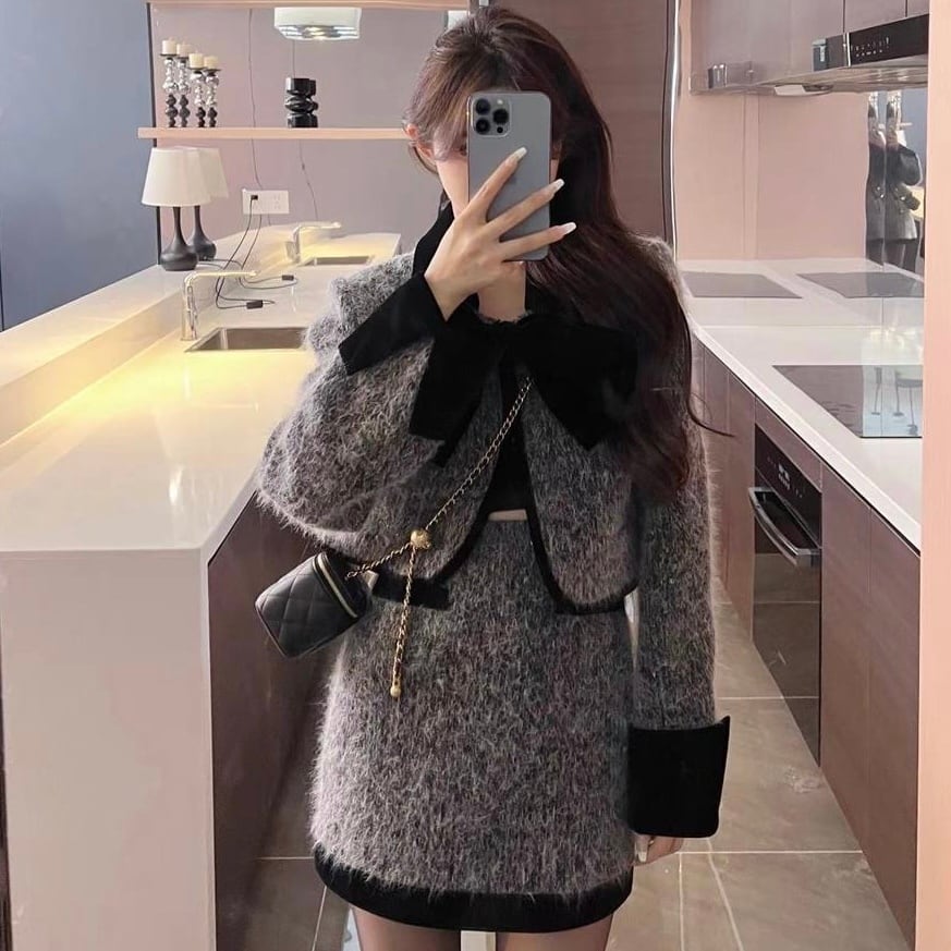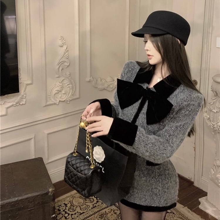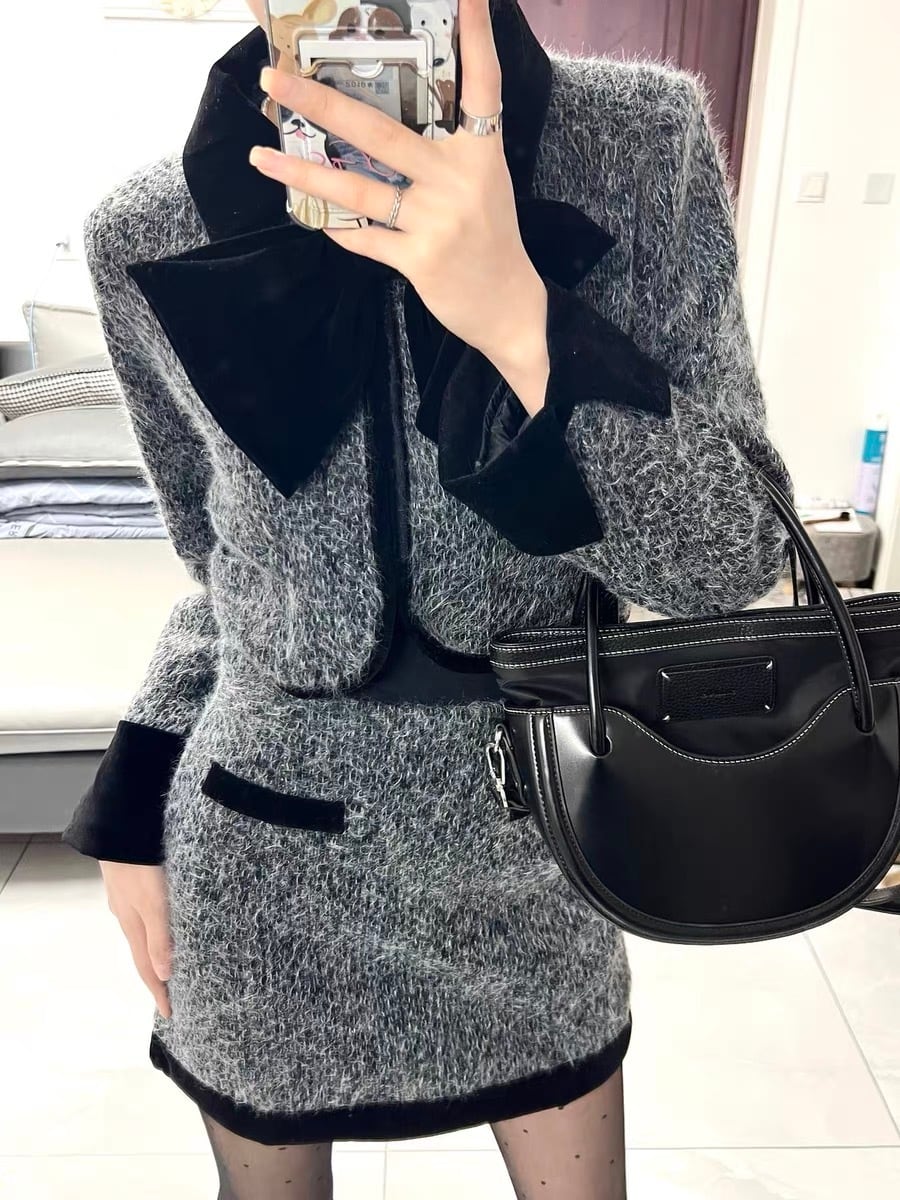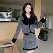 【set】リボンブローチ付きジャケットxミニスカート JN015