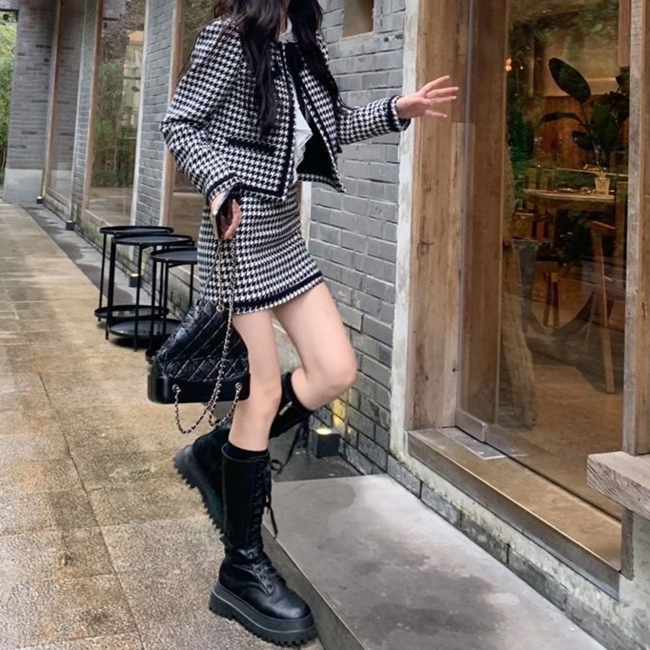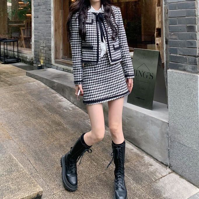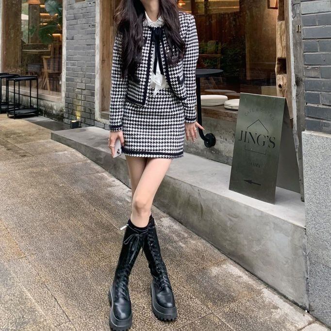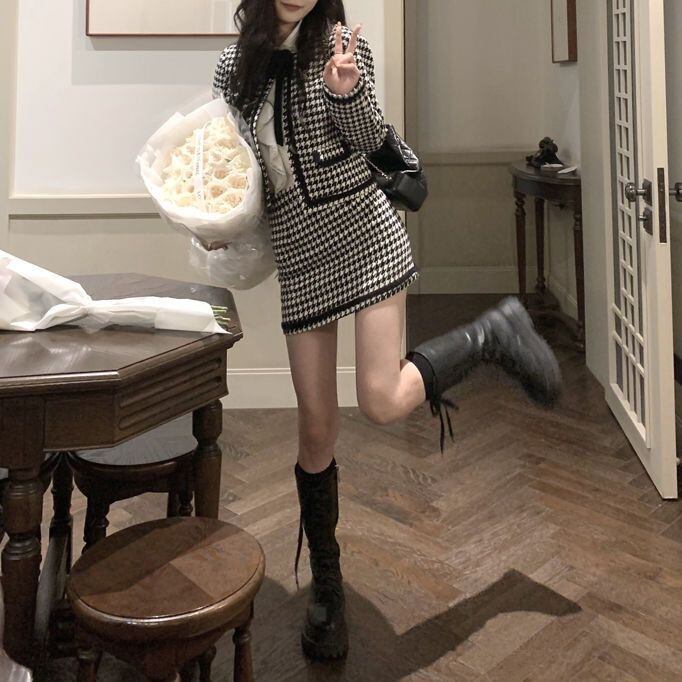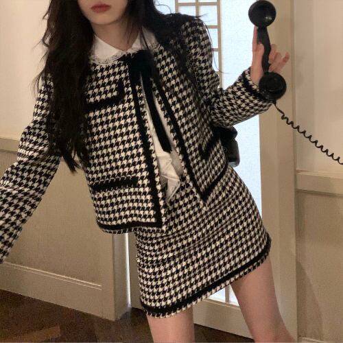 【set】千鳥柄ジャケットxスカート HJ0015