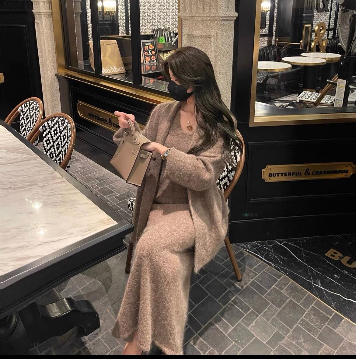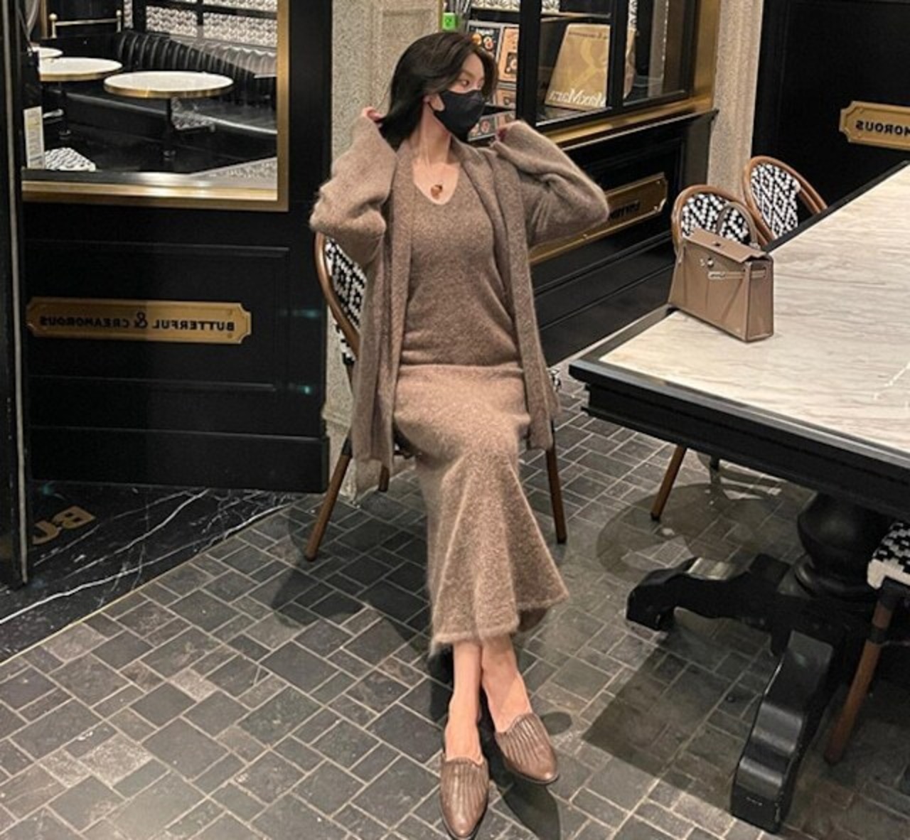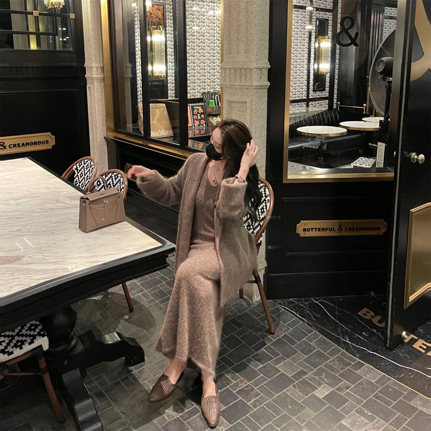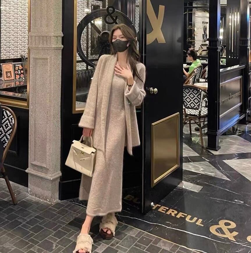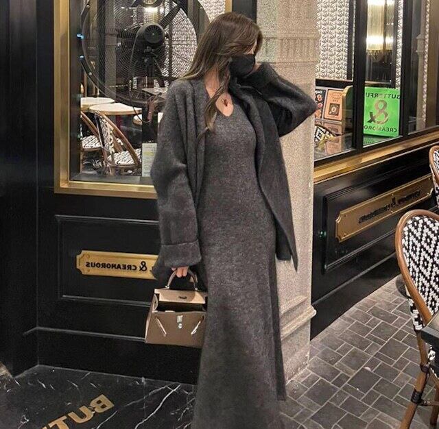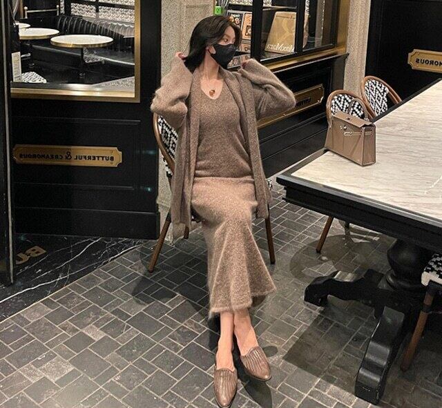 【set】カーディガンxVネックキャミワンピース3色 HB0014