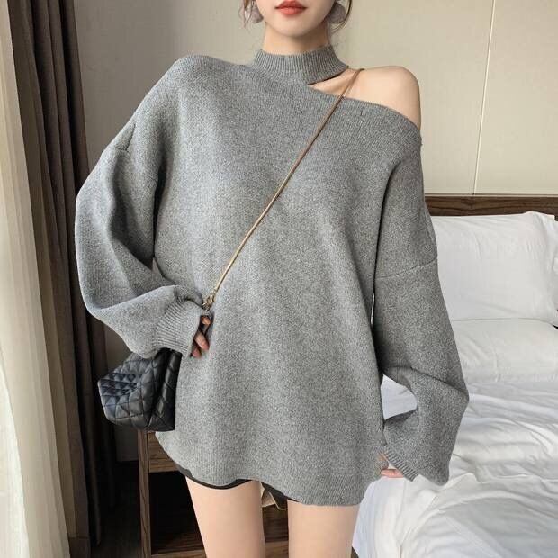 【tops】肩見せ長袖ニットトップス4色 HB1108