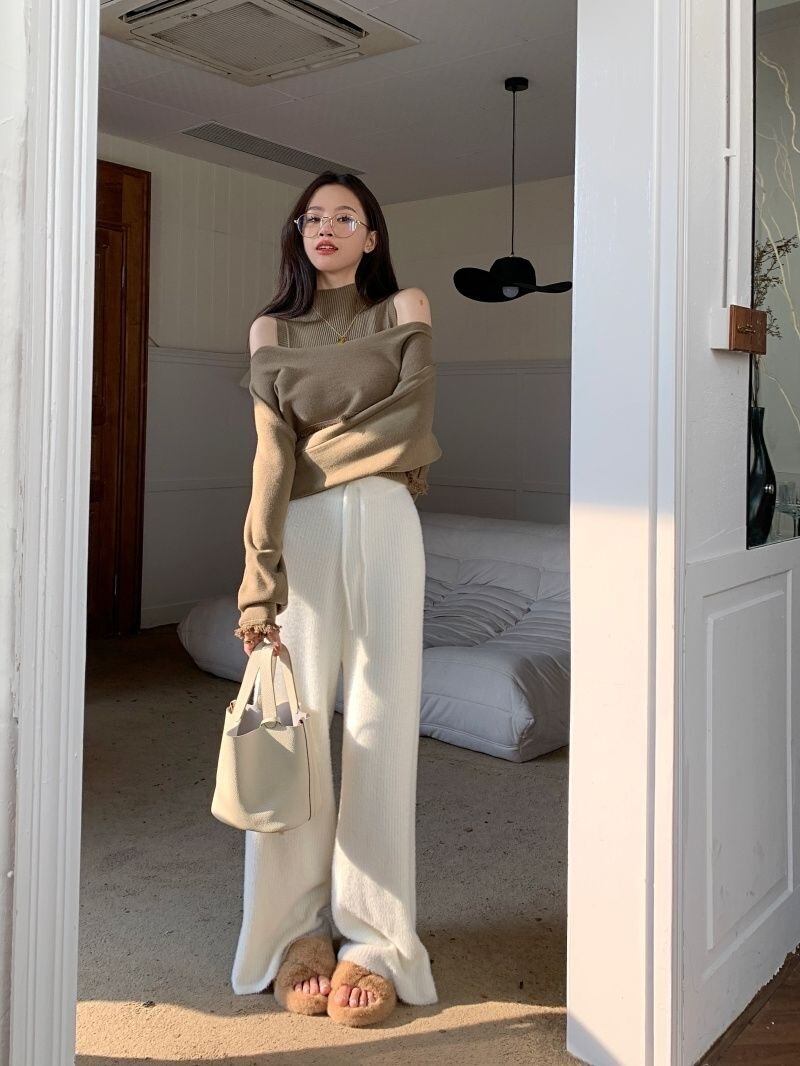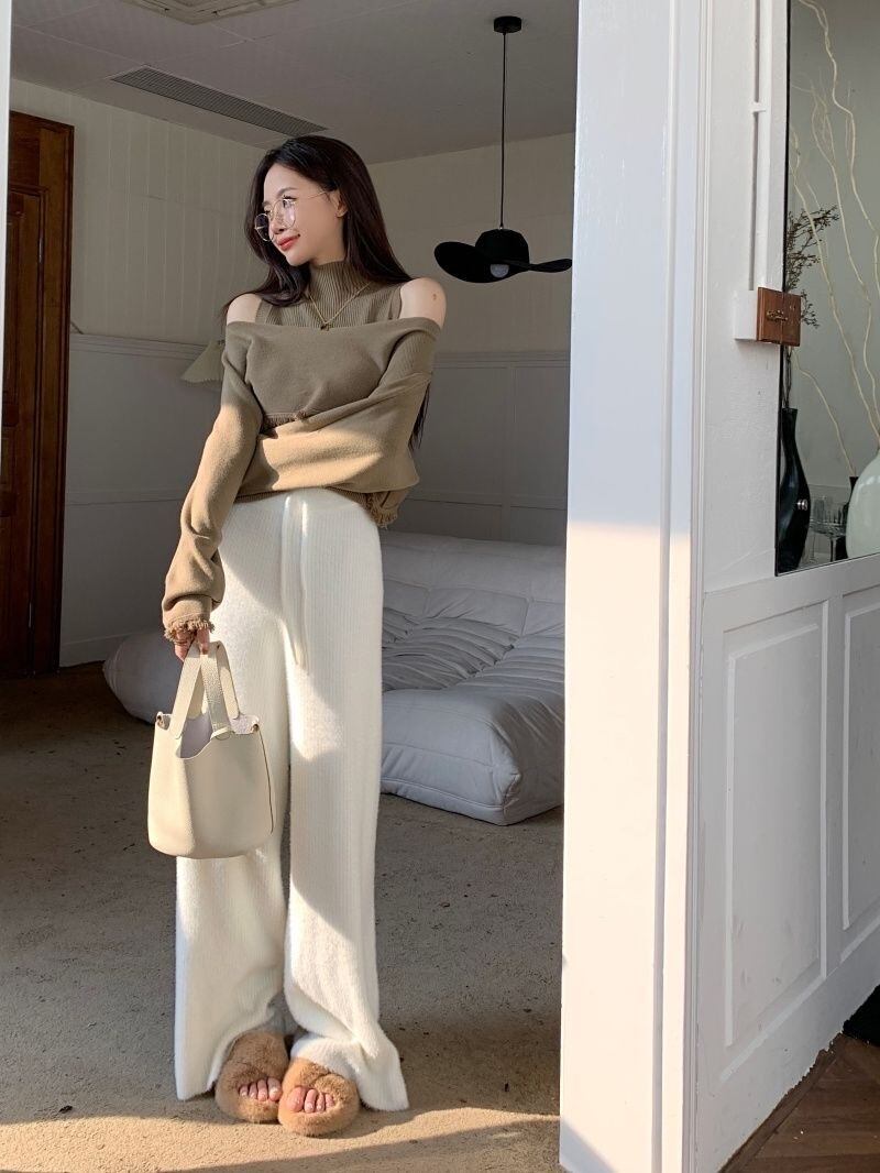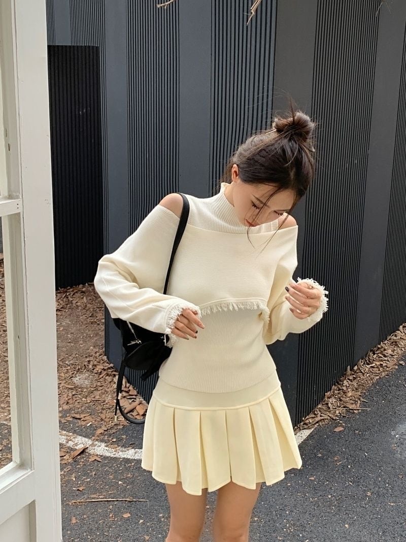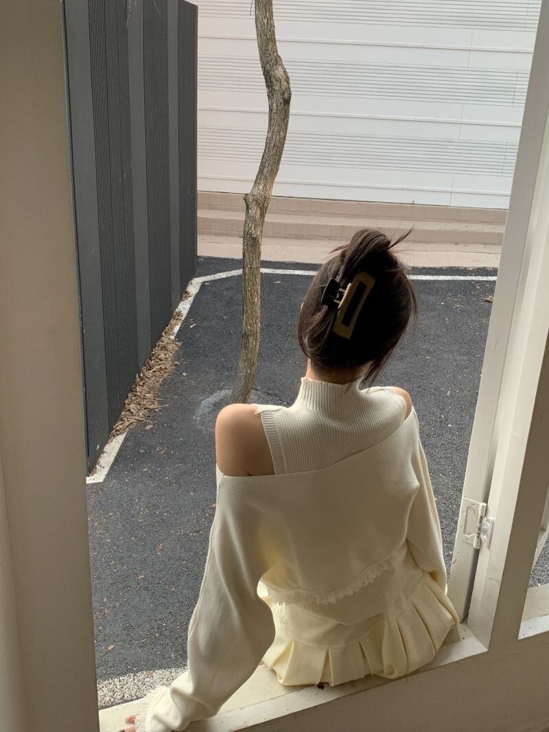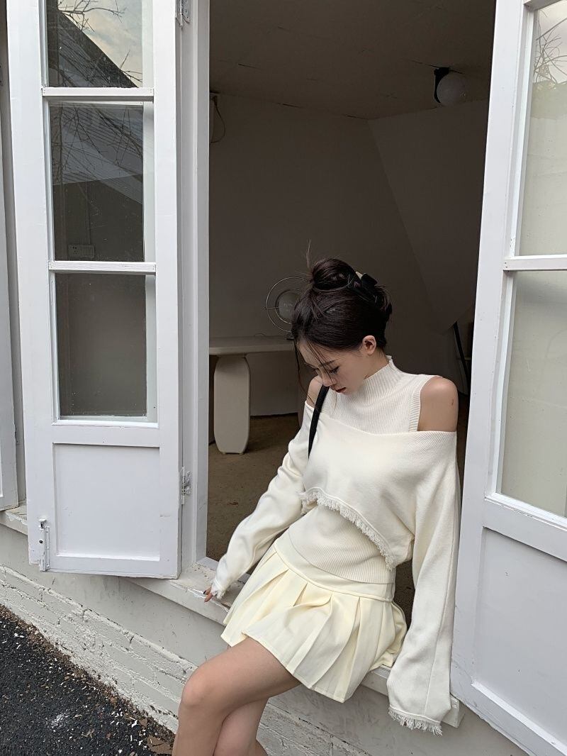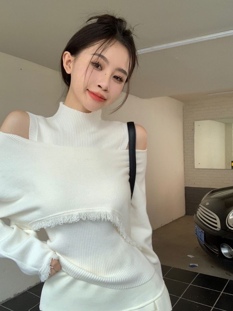 【set】ハイネックノースリーブタンクトップx2way長袖ニットトップス CR777