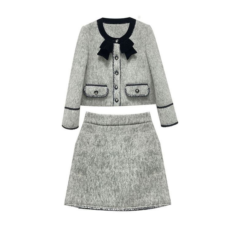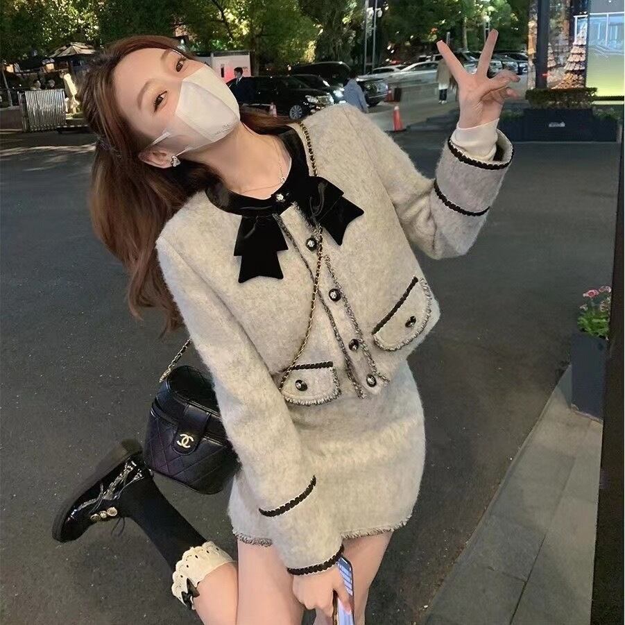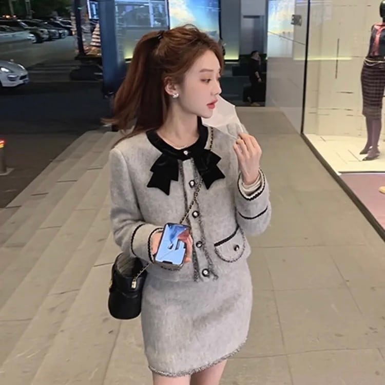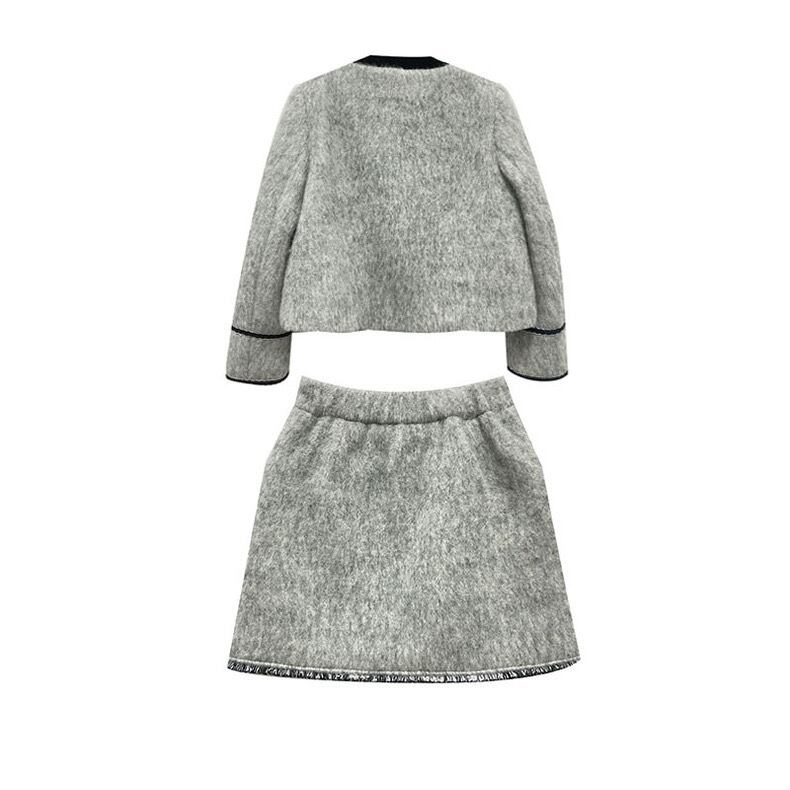 【set】起毛配色ジャケットxミニスカート GT0014