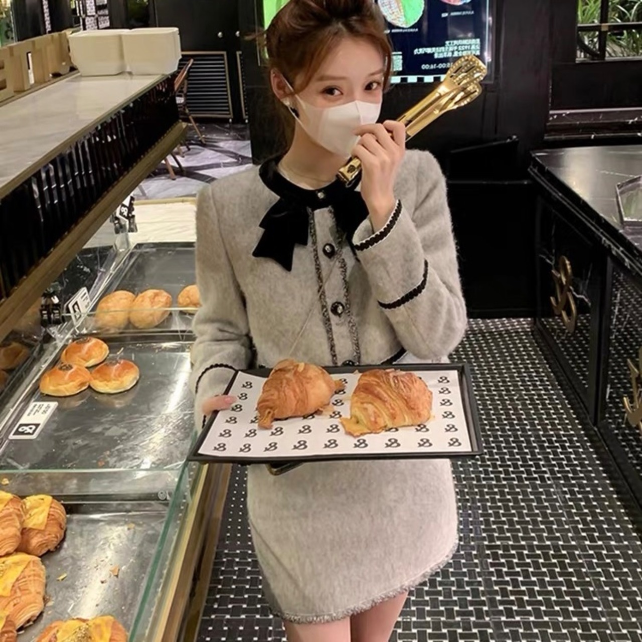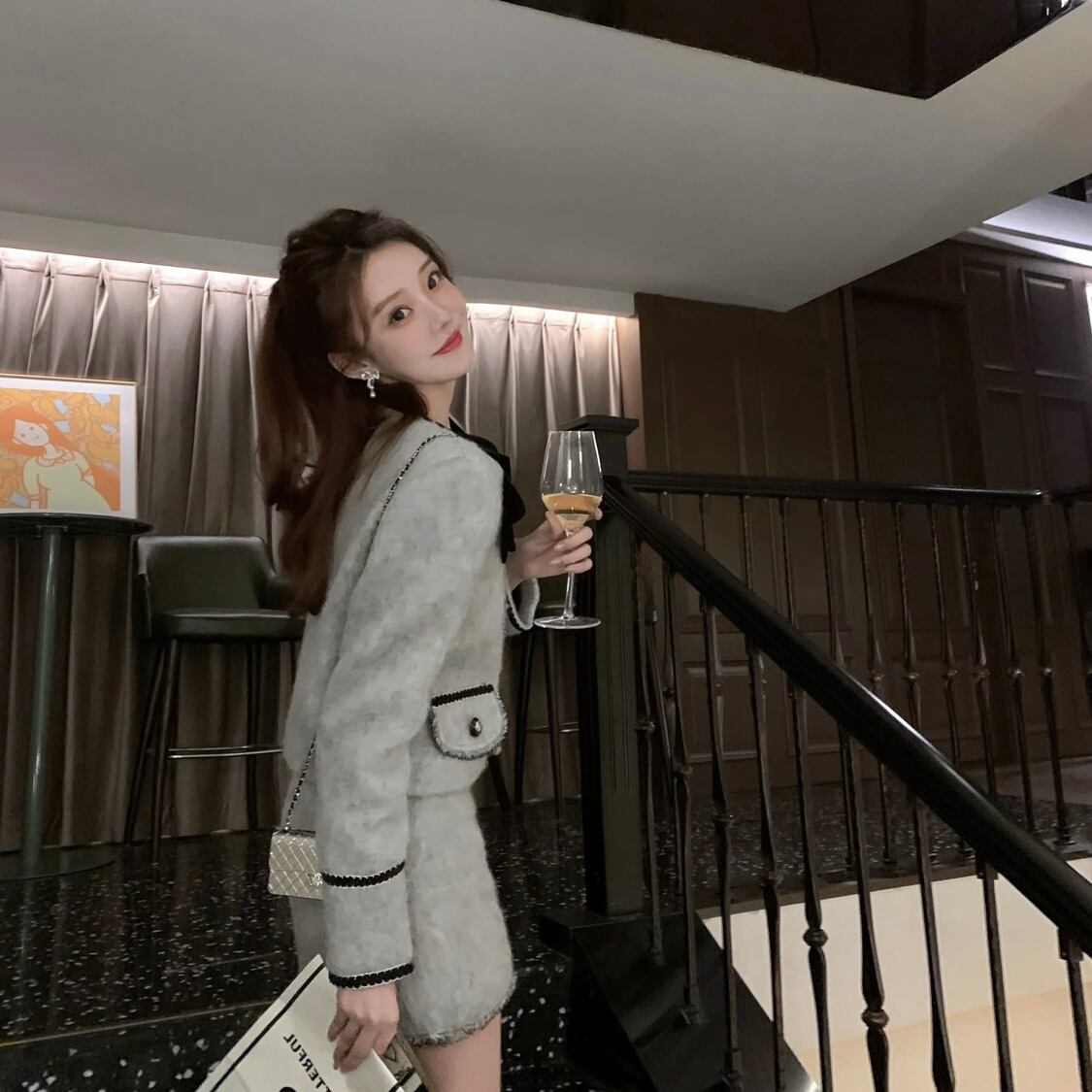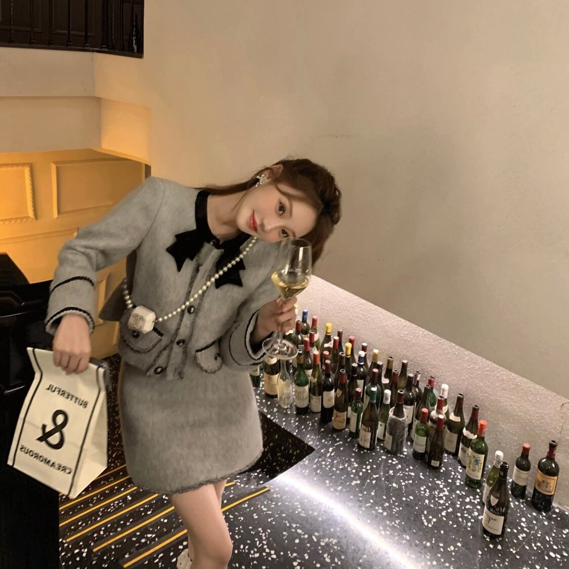 【set】起毛配色ジャケットxミニスカート GT0014