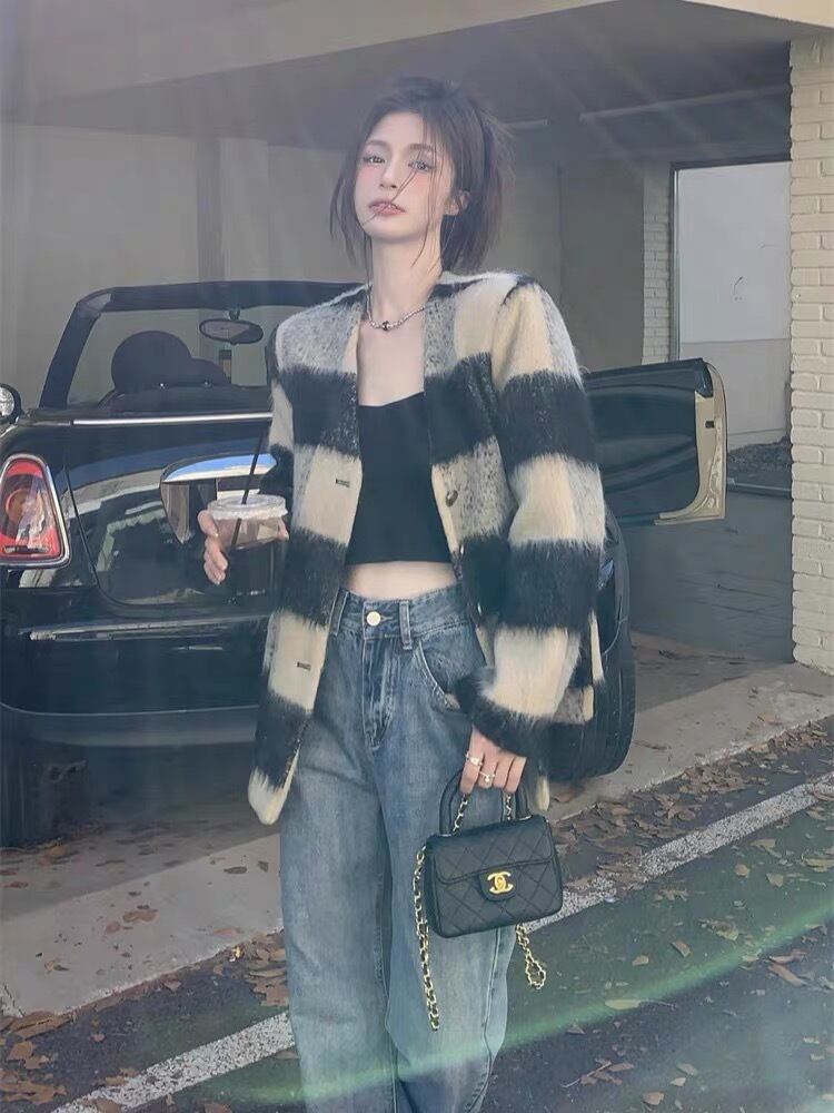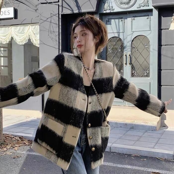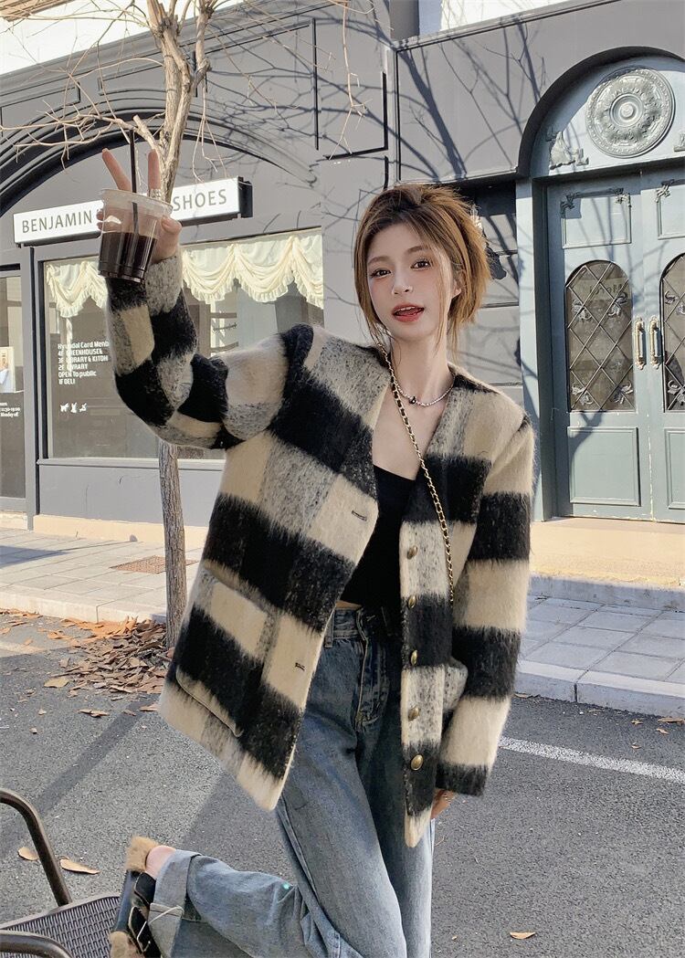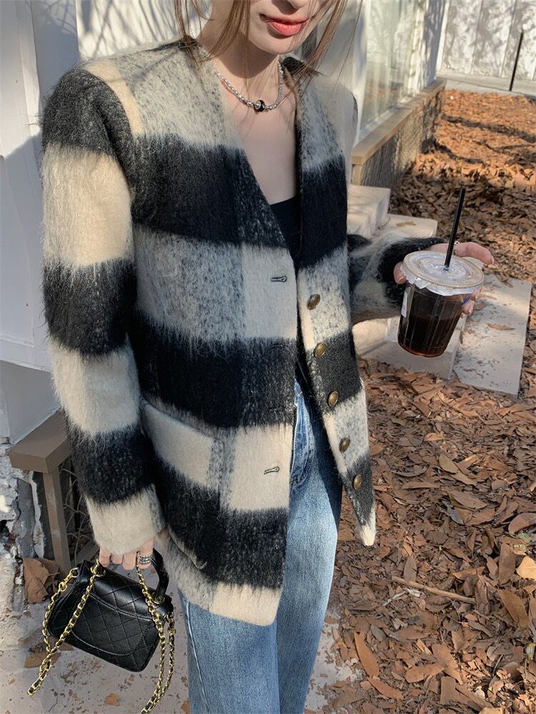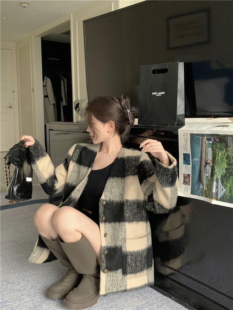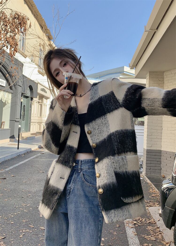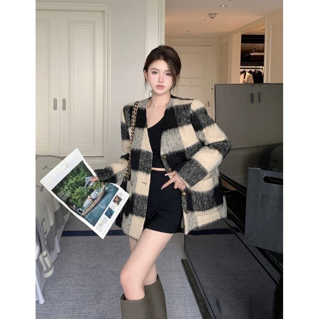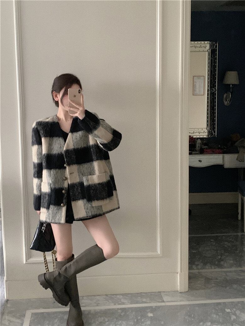 【outer】チェック柄ゆっくり韓国系ジャケット GT0016