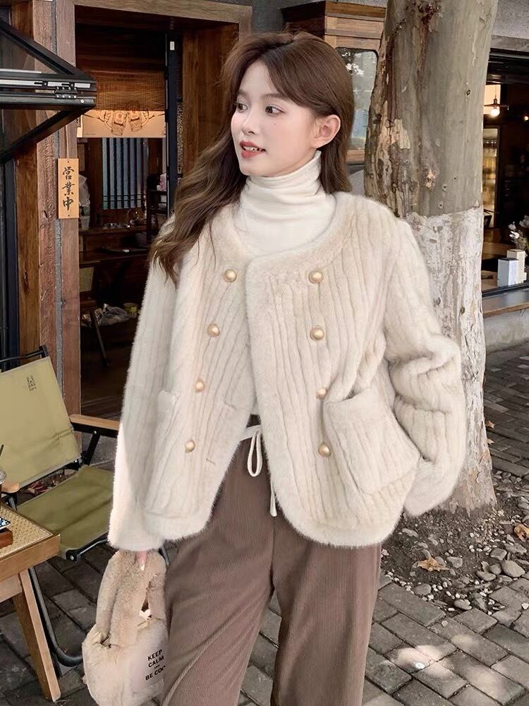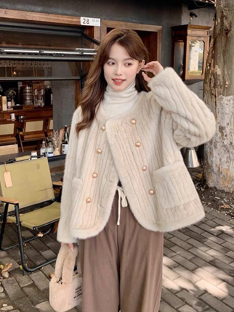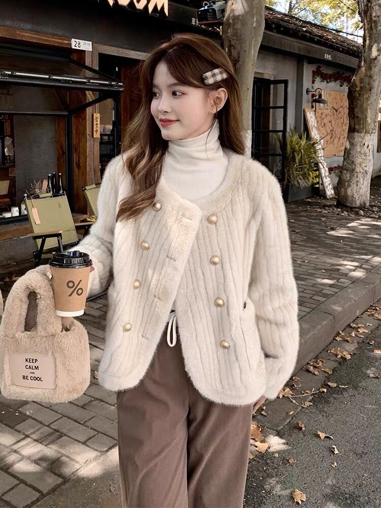 【outer】ラウンドネックファージャケット GT0017
