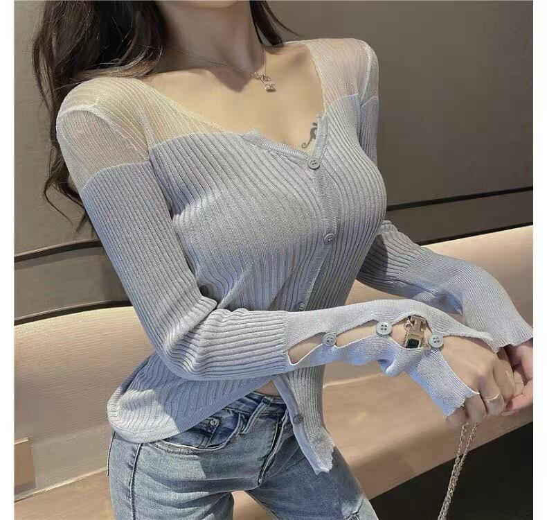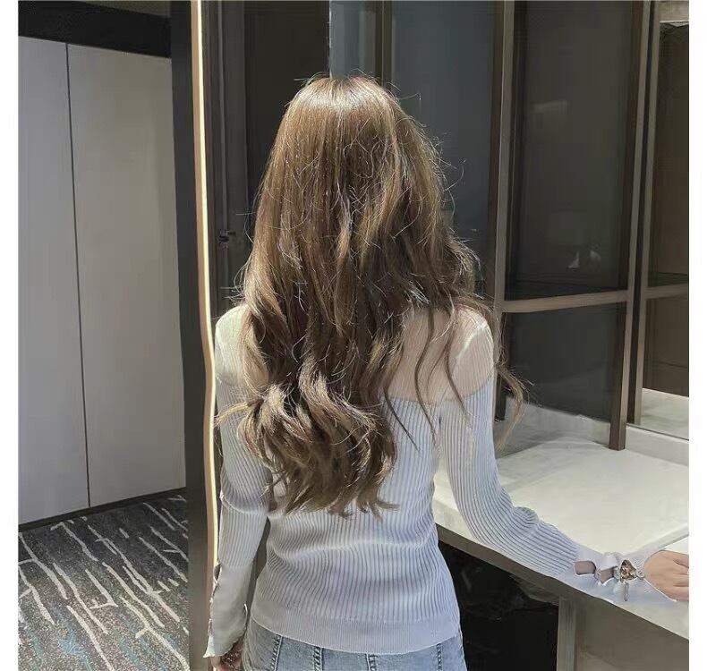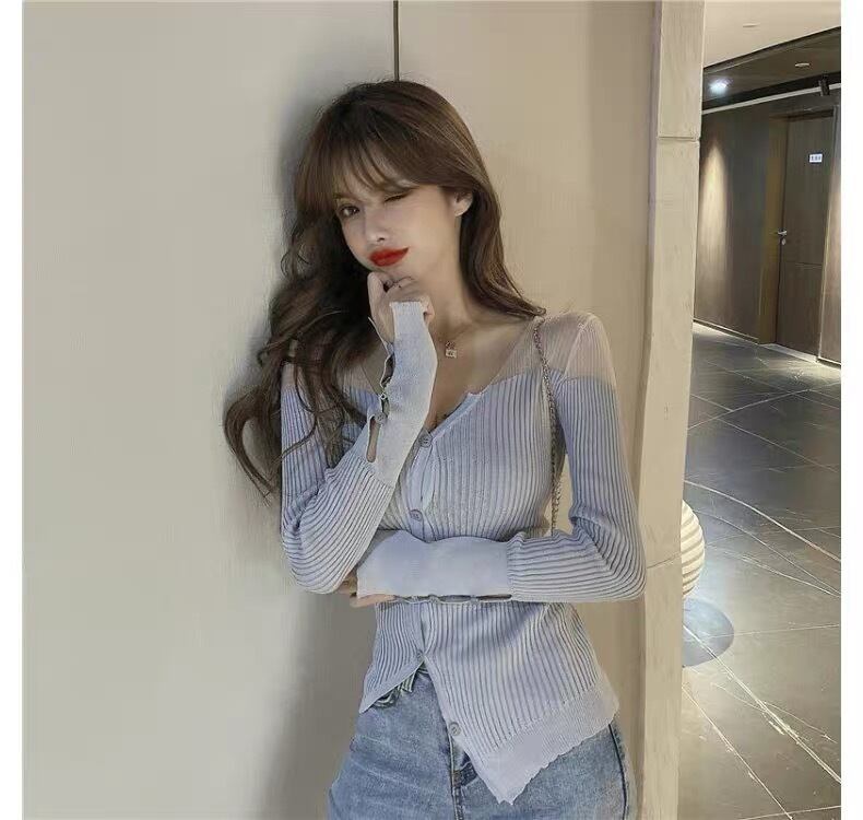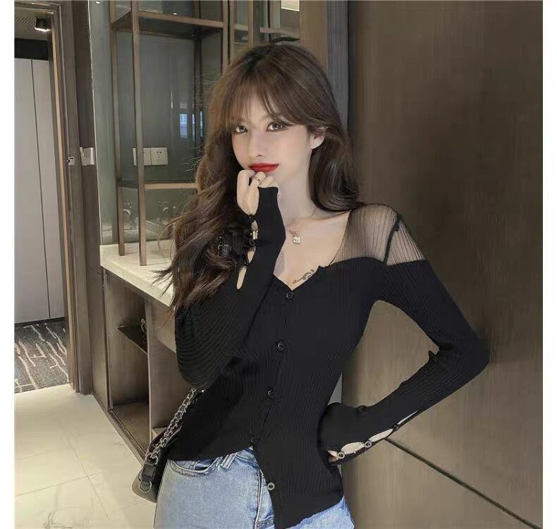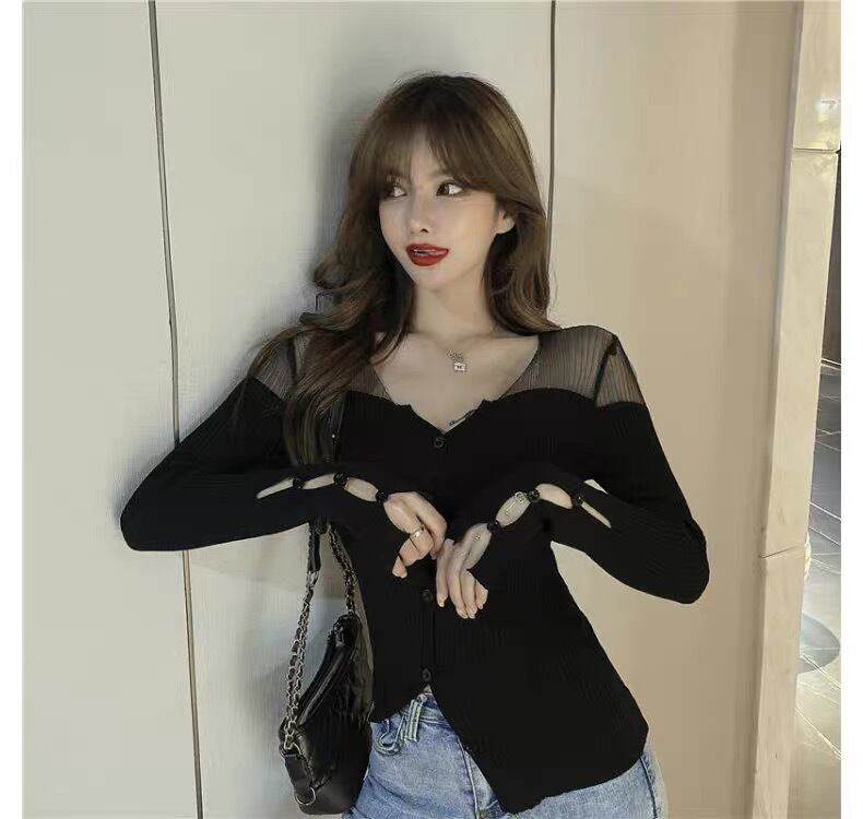 【tops】Vネックチュール切り替え長袖トップス2色 OR0012