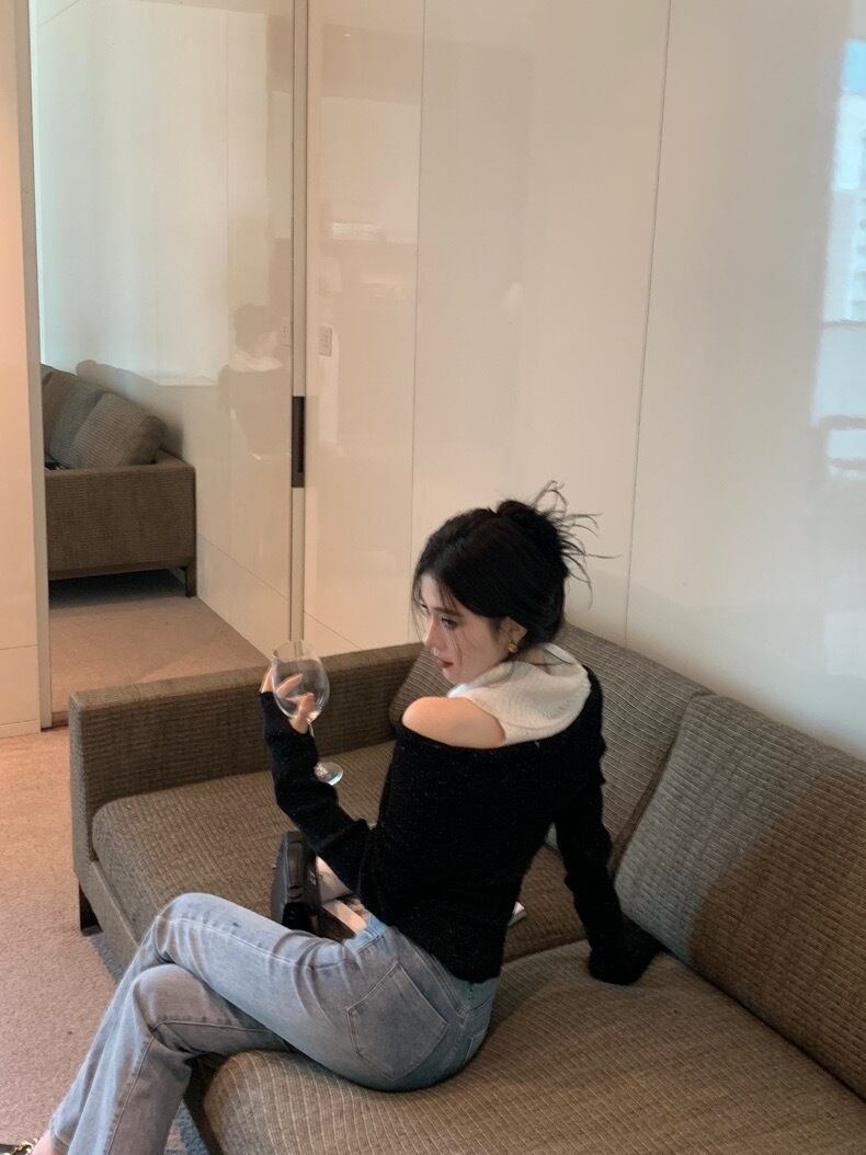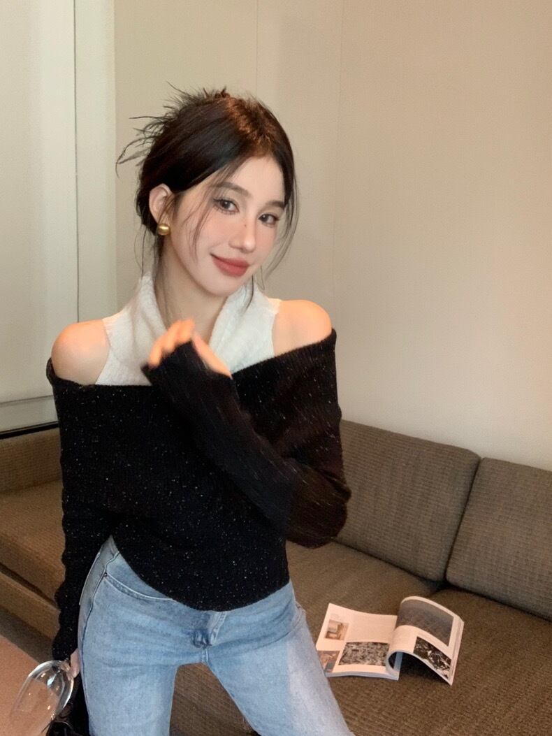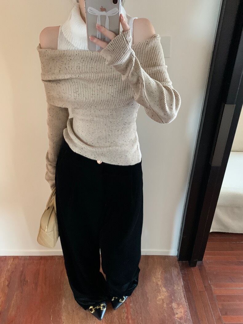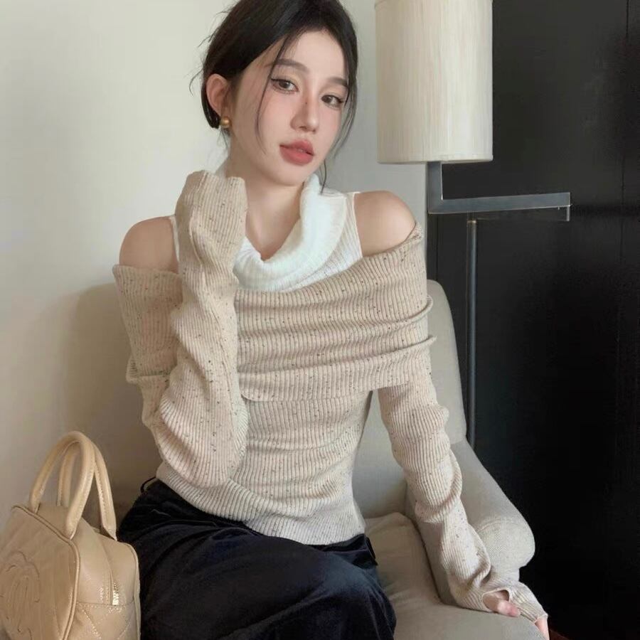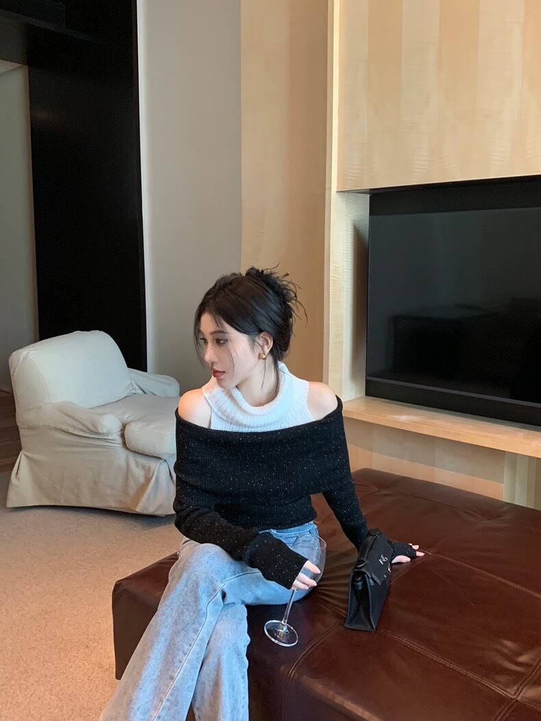 【tops】肩見せ配色ハイネックニットトップス2色 SY0112