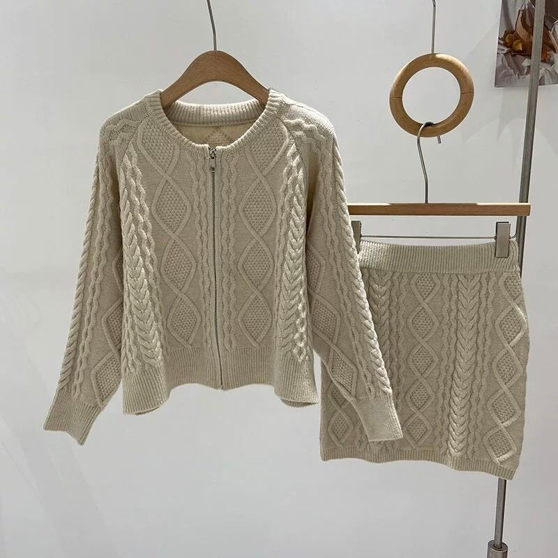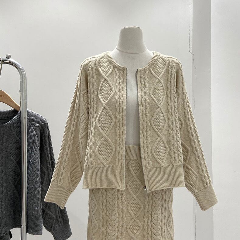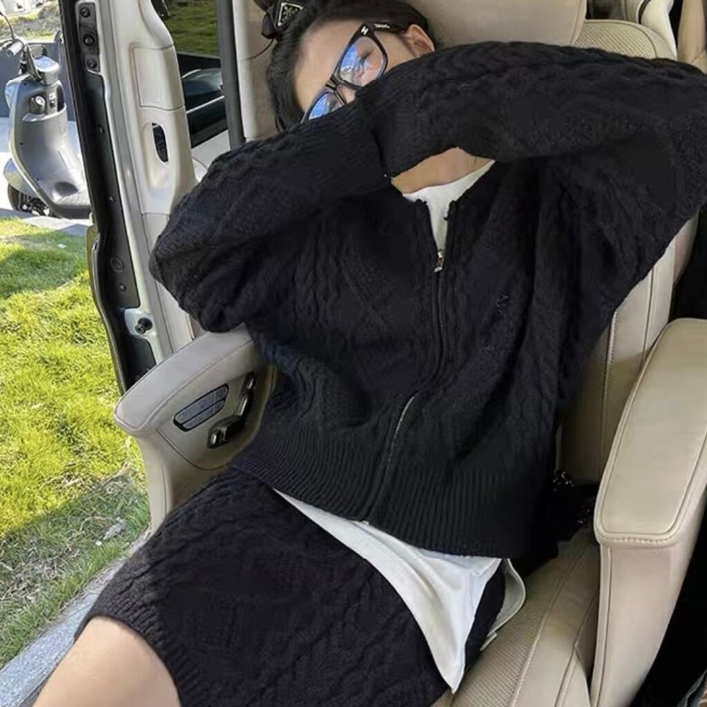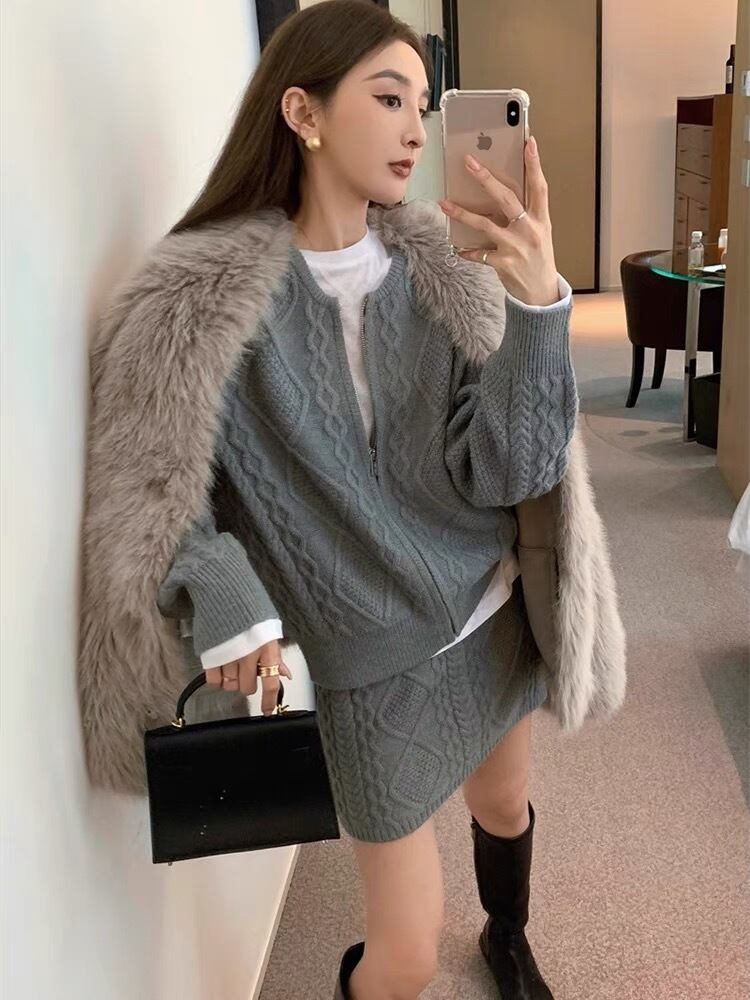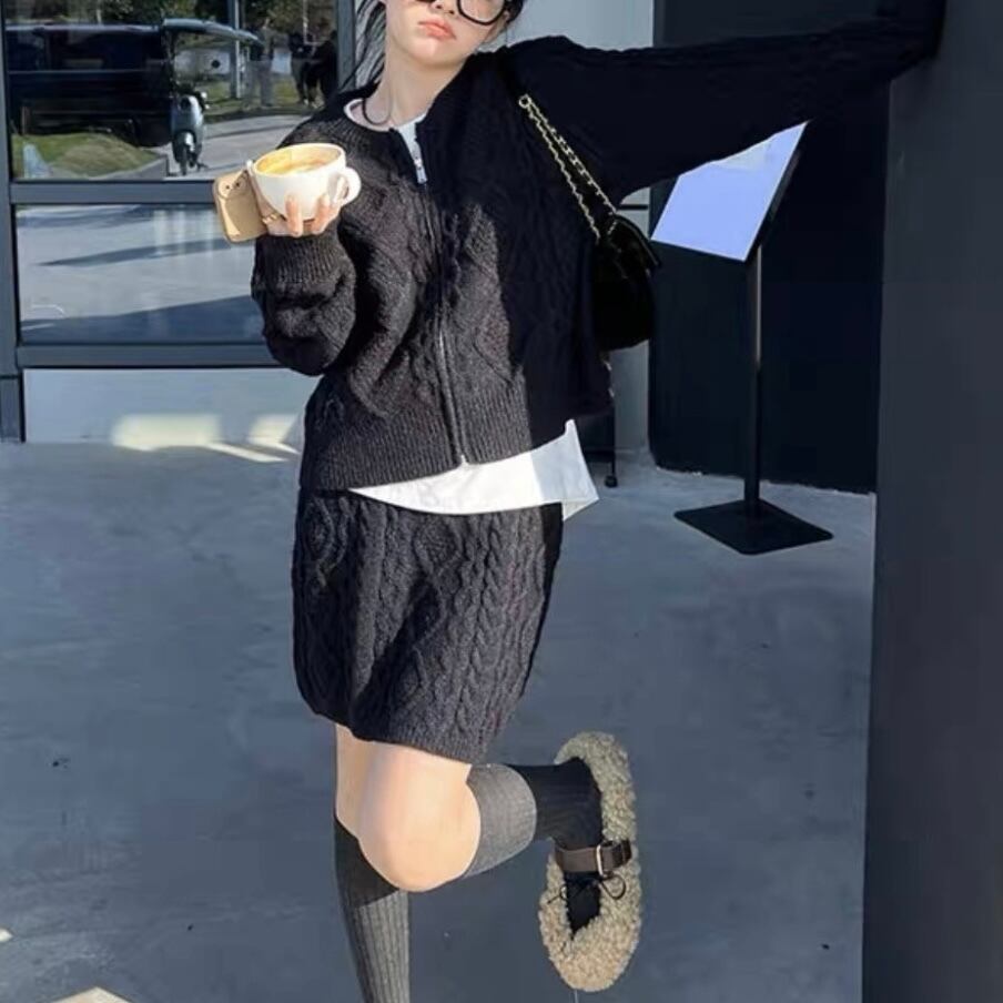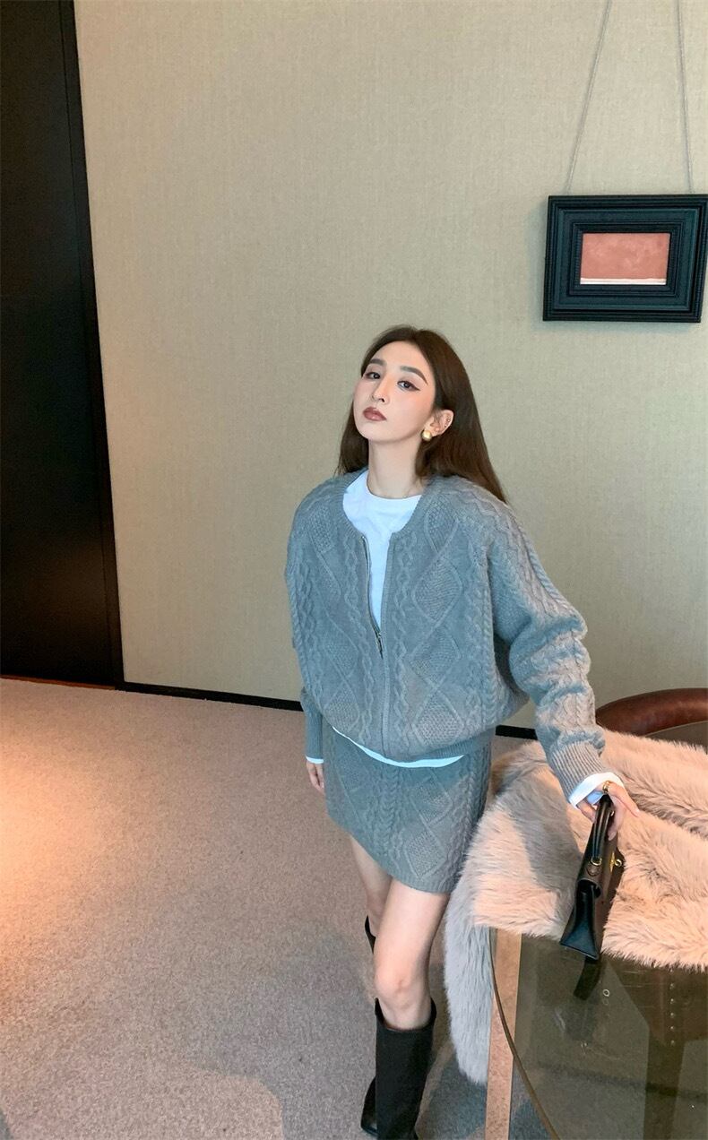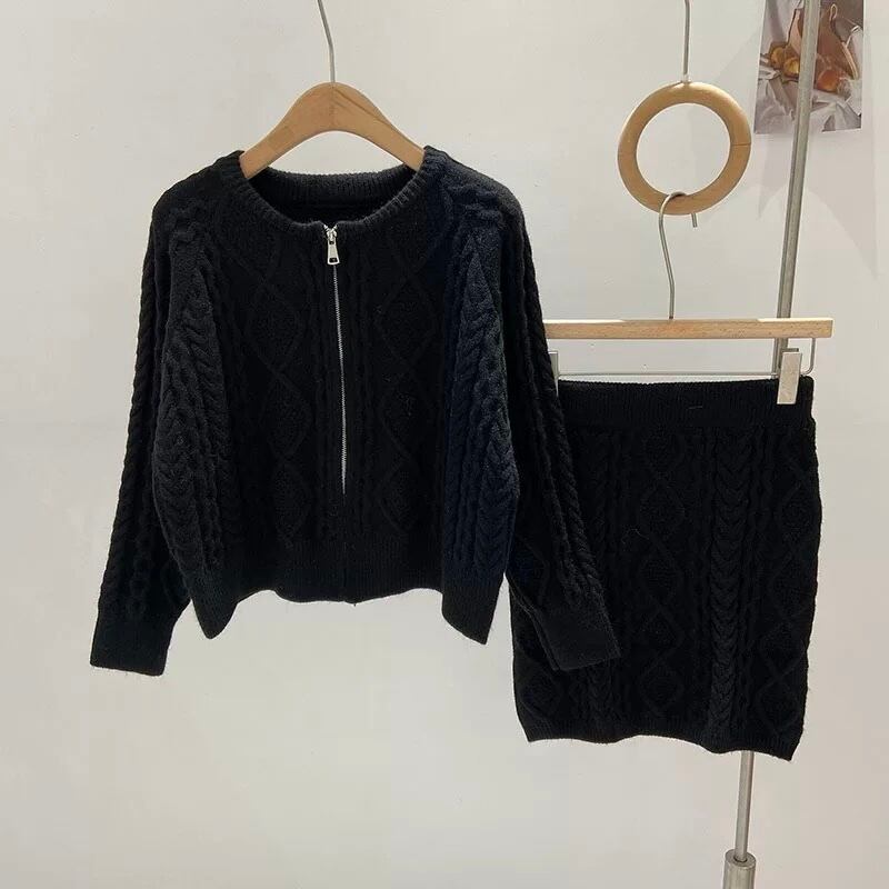 【set】ZIP長袖ニットトップスxスカート3色 TK1431
