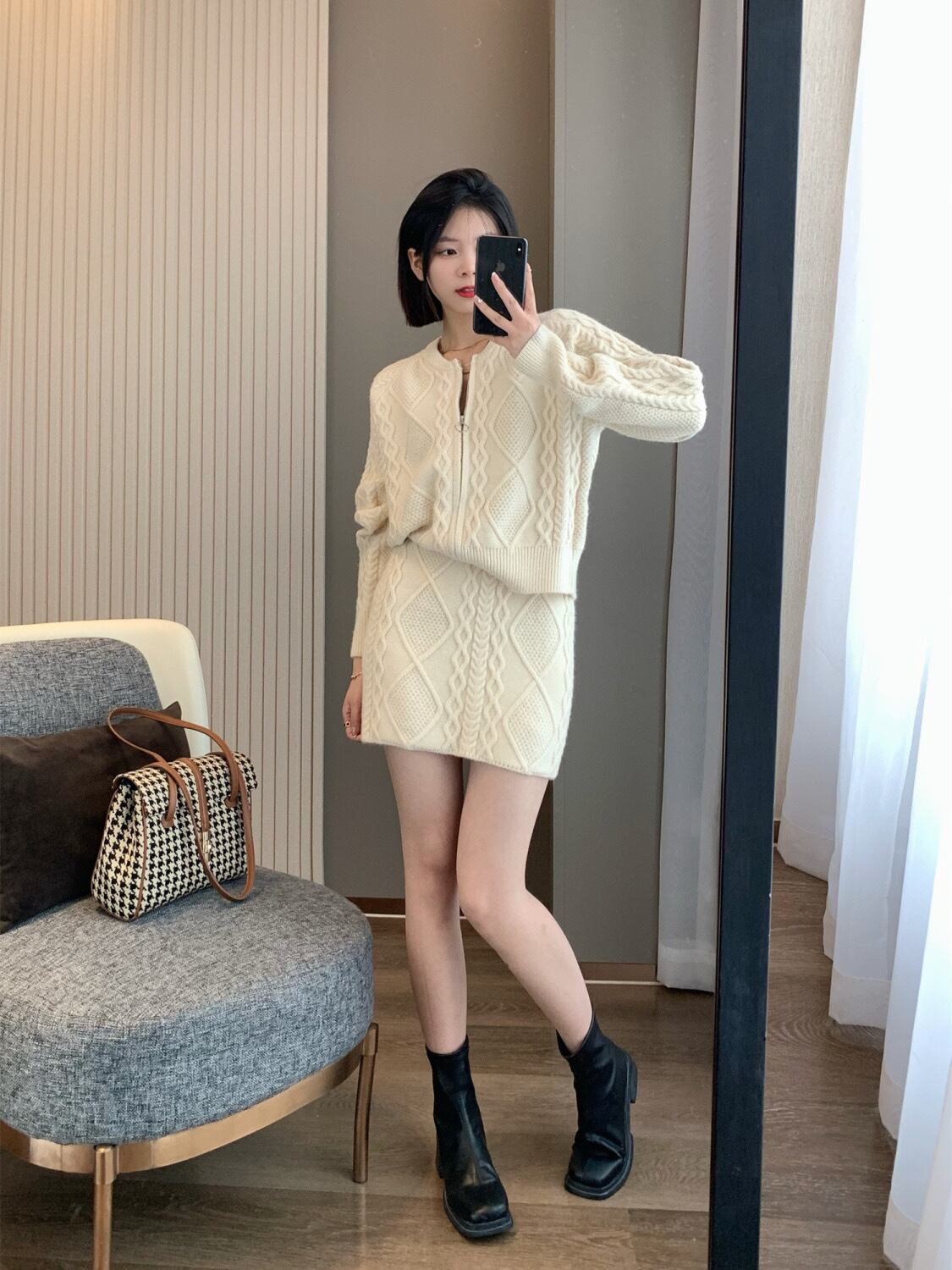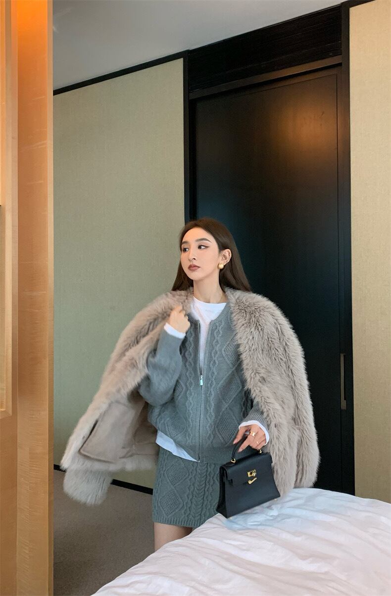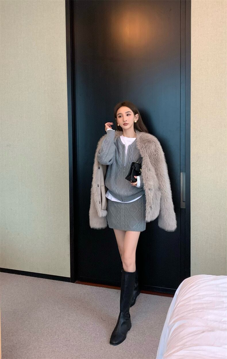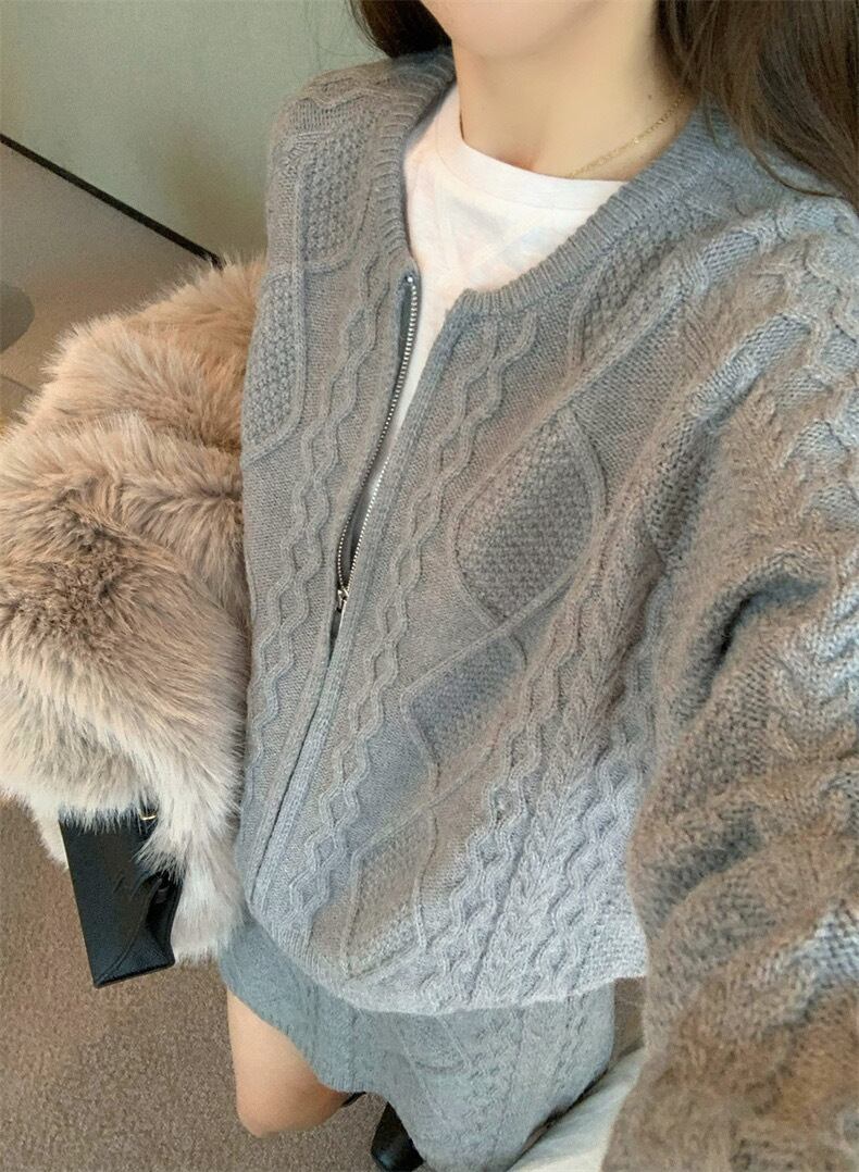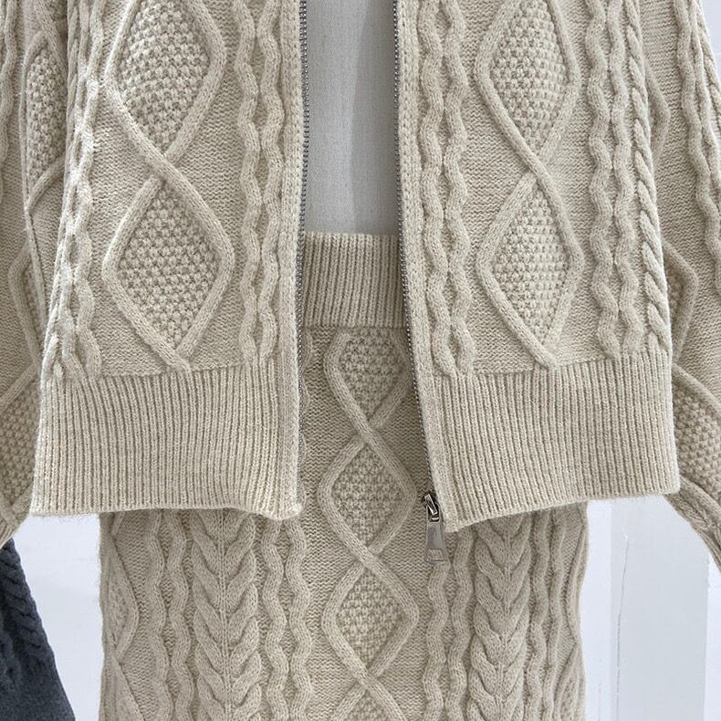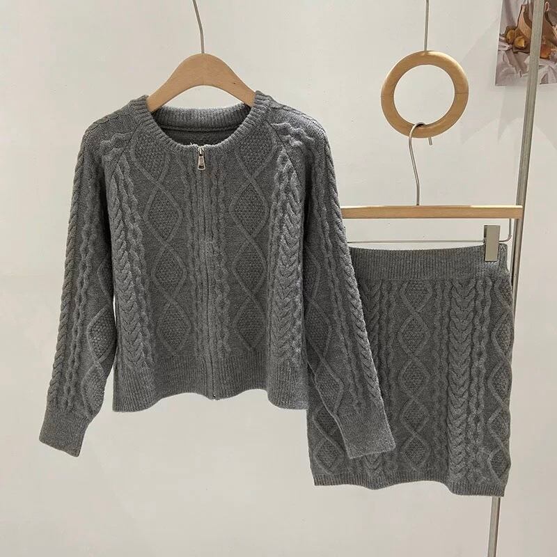 【set】ZIP長袖ニットトップスxスカート3色 TK1431