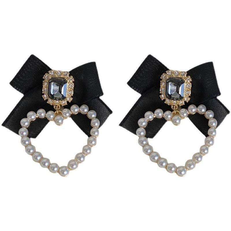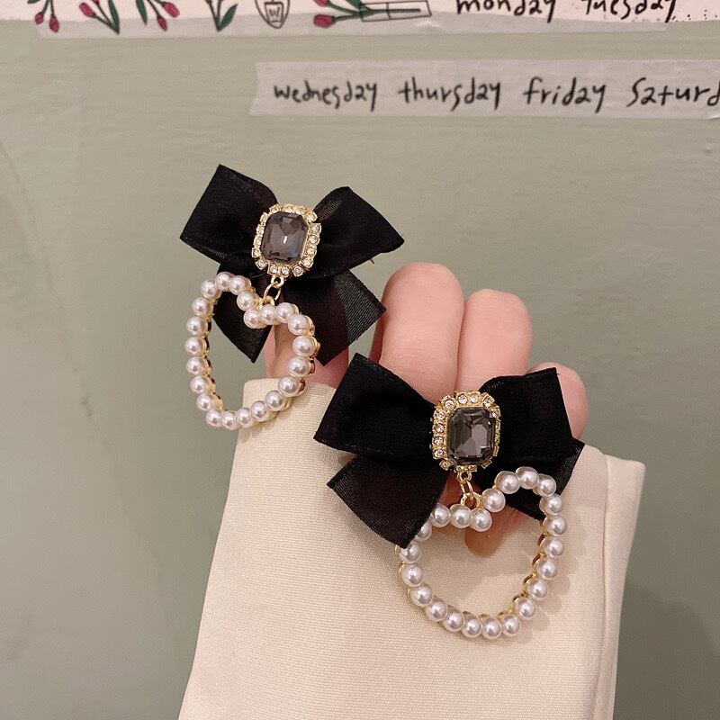 【雑貨】レトロリボンハート型ピアス/イヤリング OR0035