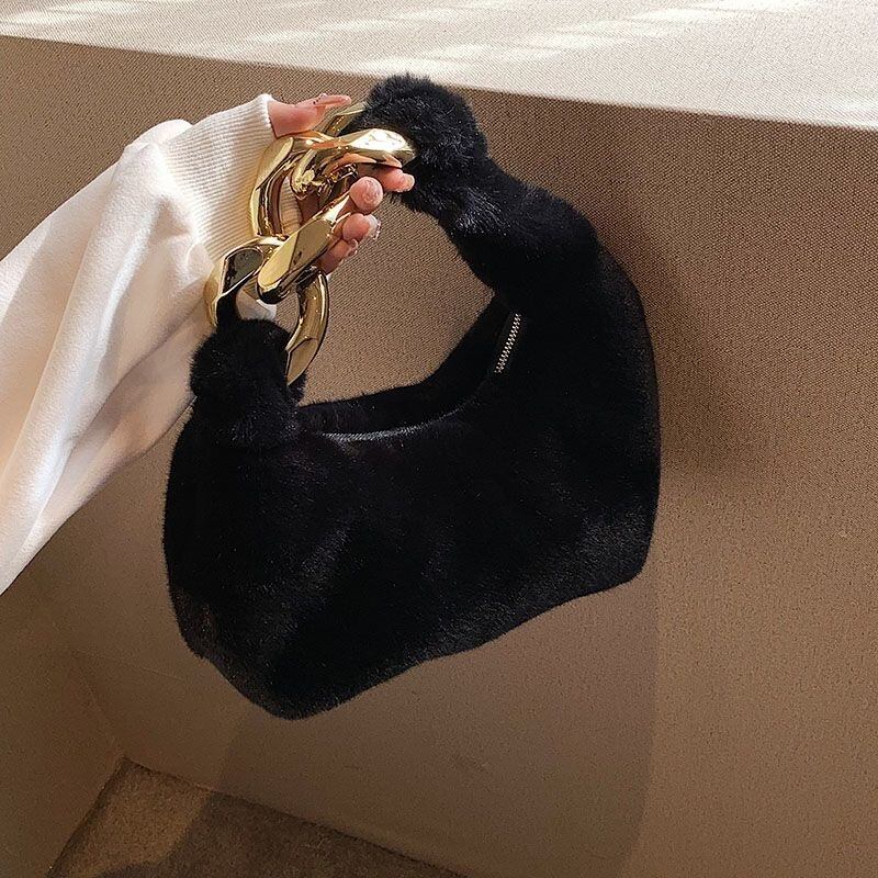 【bag】ゴールドチェーンふわふわファーバッグ5色 OR1122