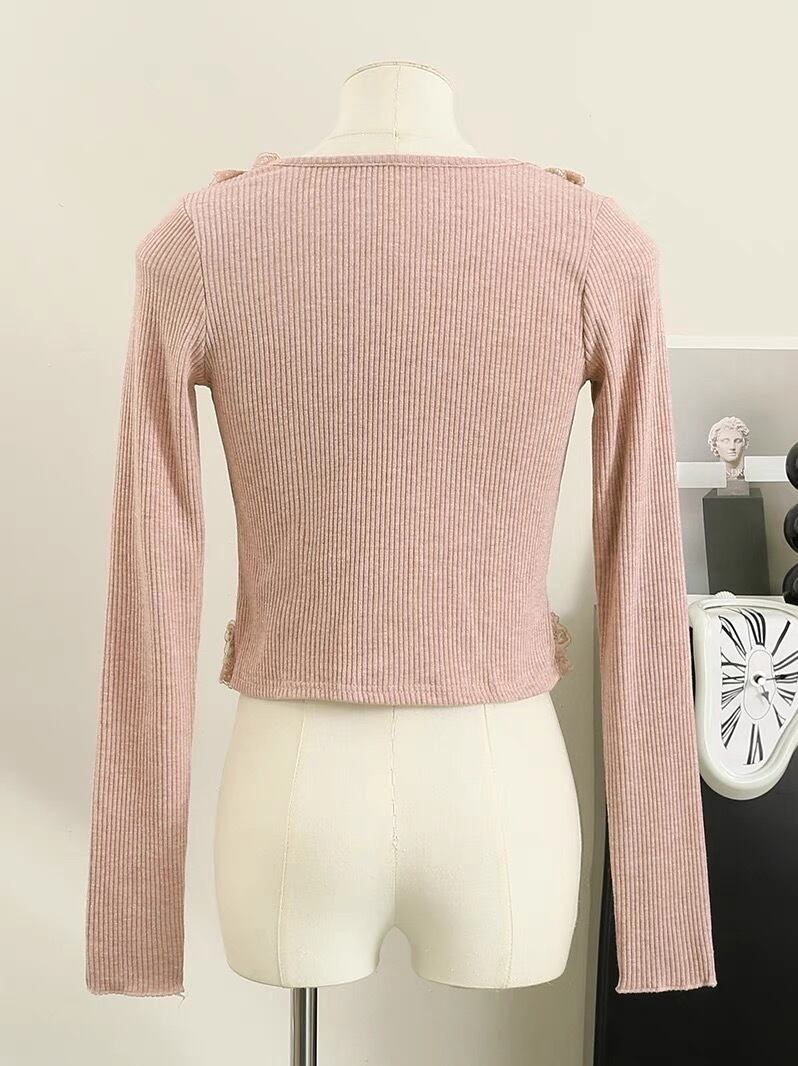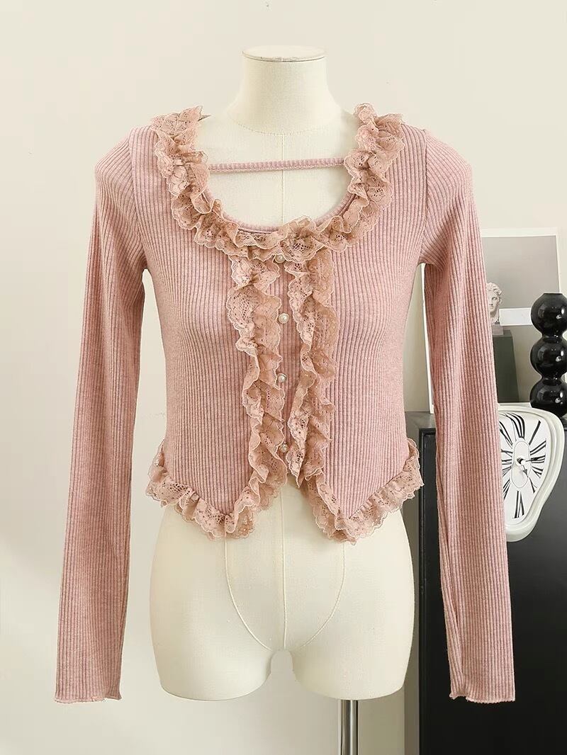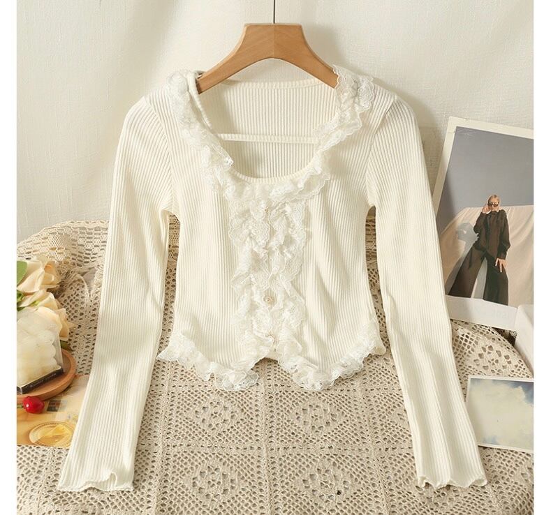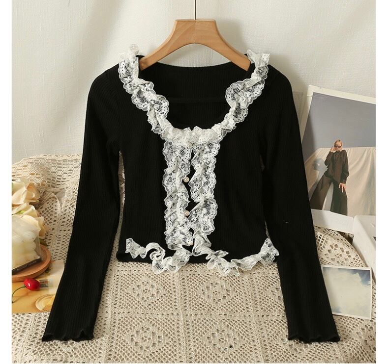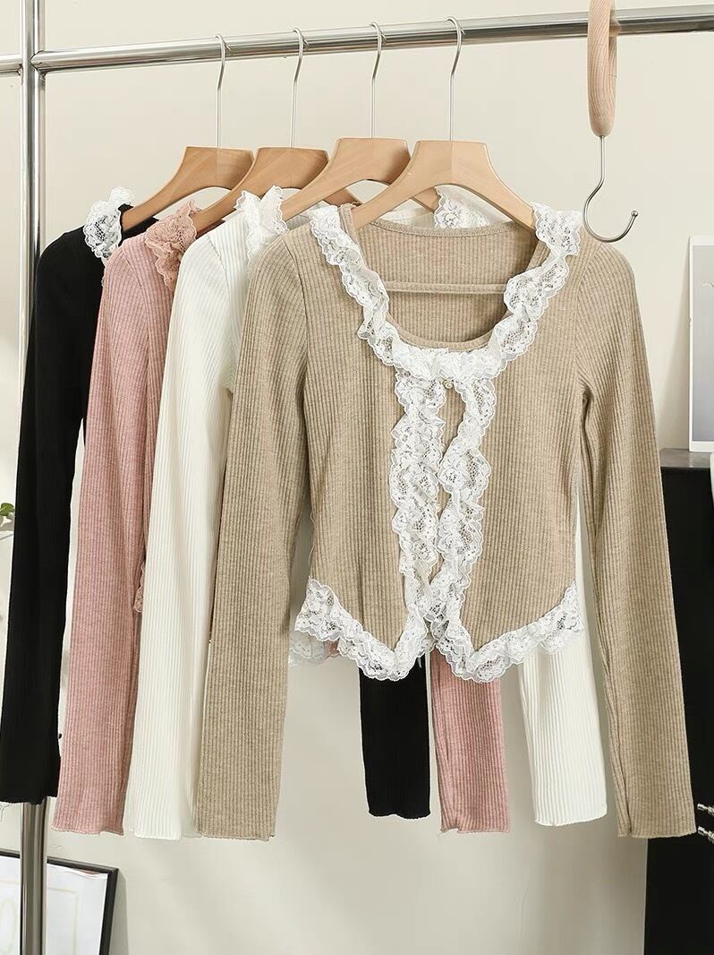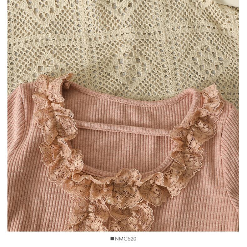 【tops】レース切り替え長袖トップス4色 SY1190
