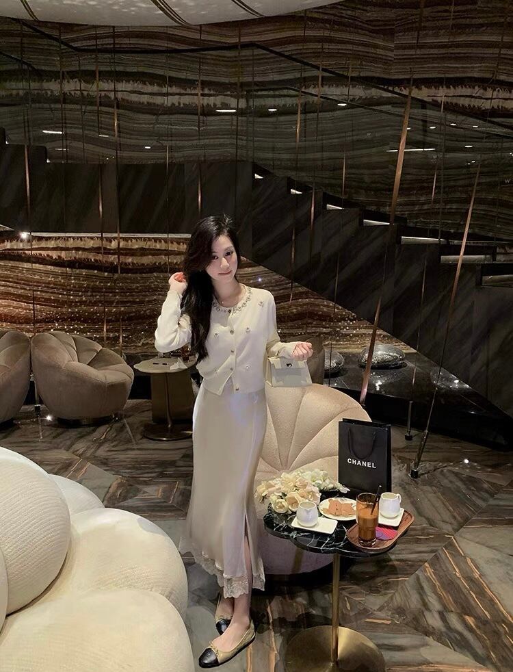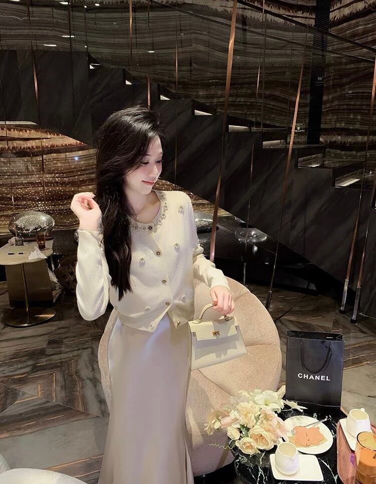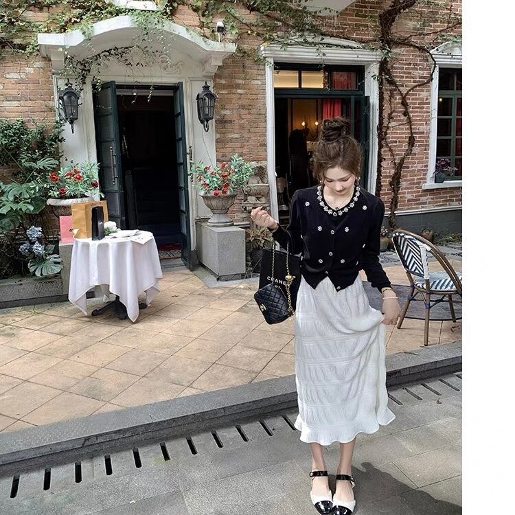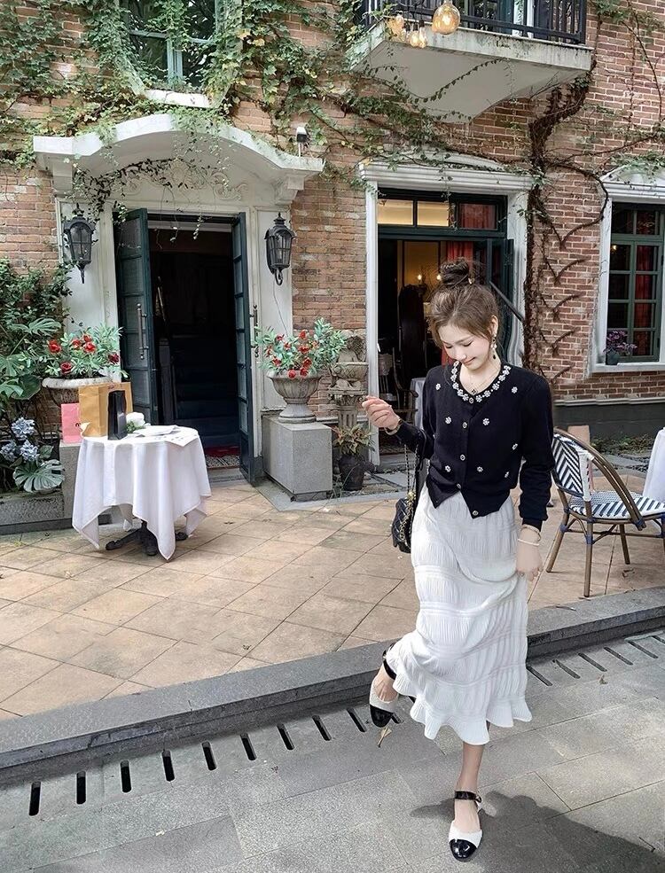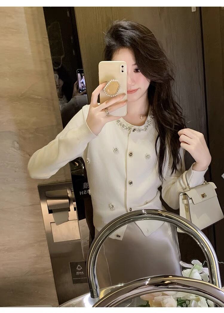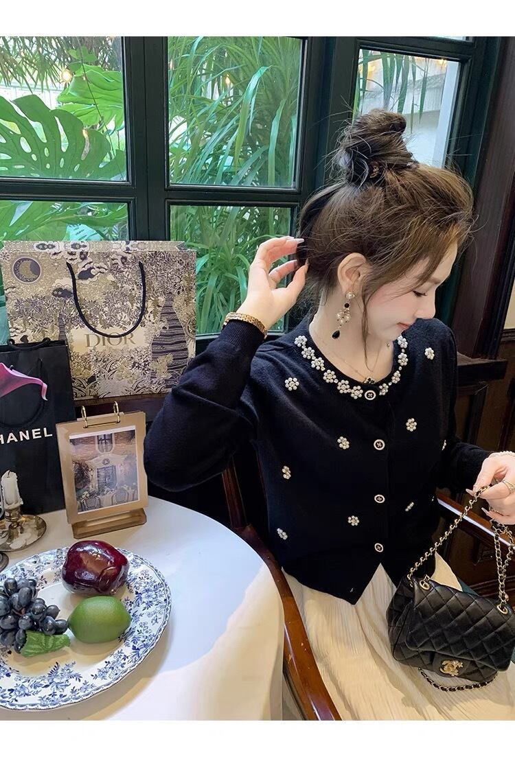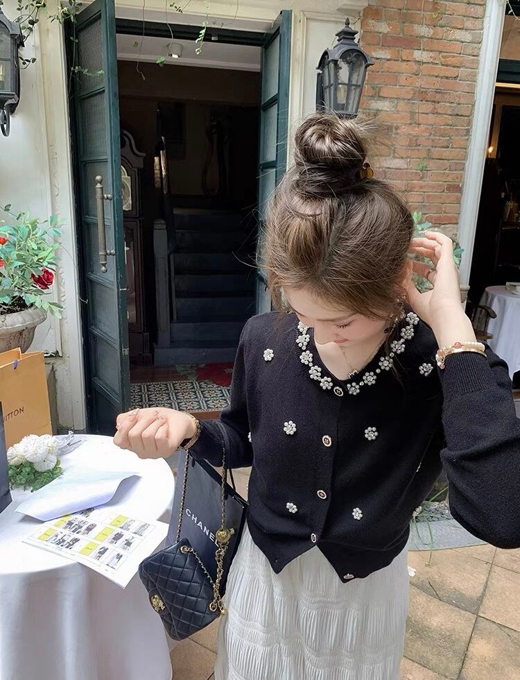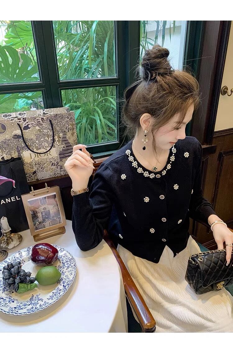 【tops】パール付き長袖トップスカーディガン2色 KY1100