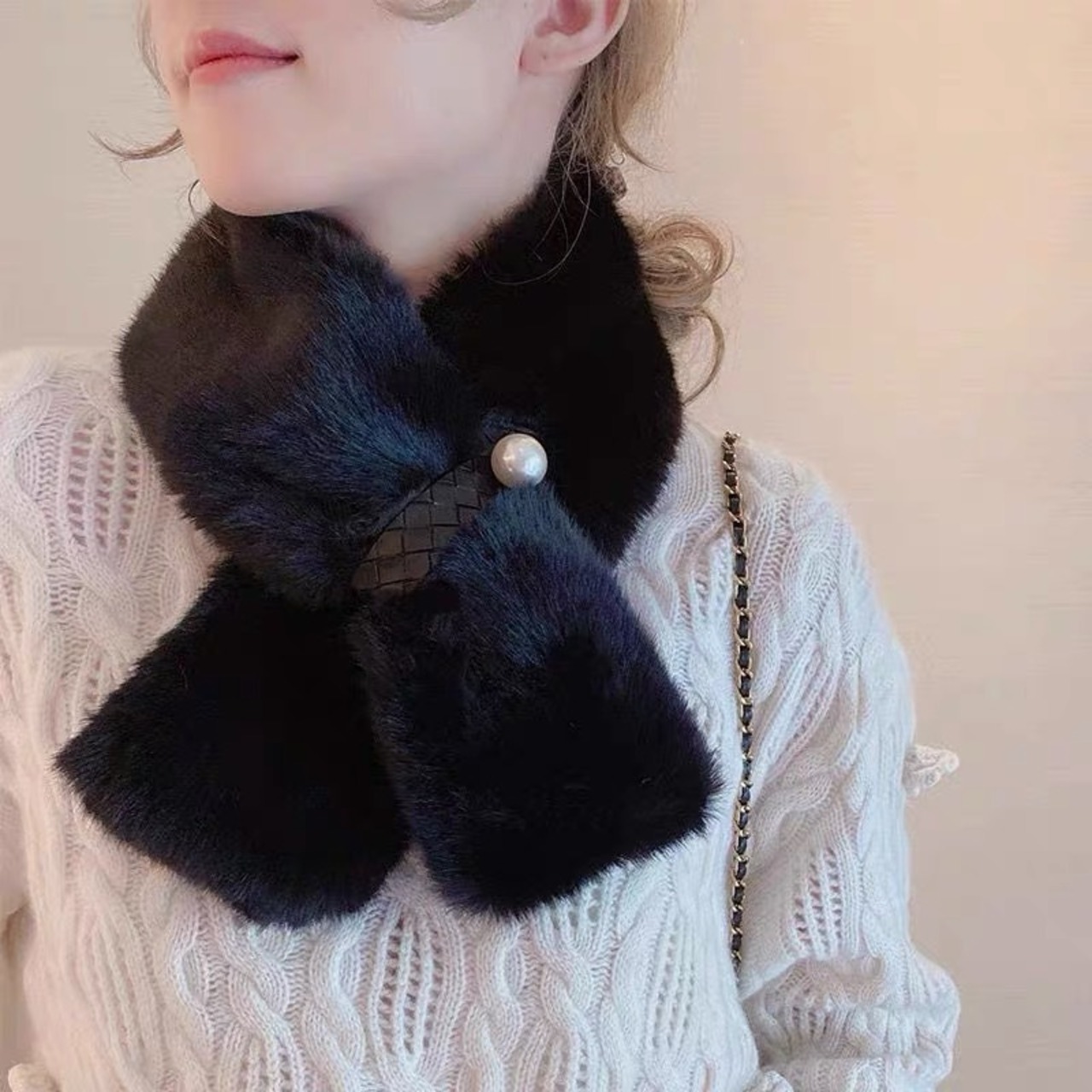 【雑貨】エコファー上品プルスルーマフラー5色 OR2300