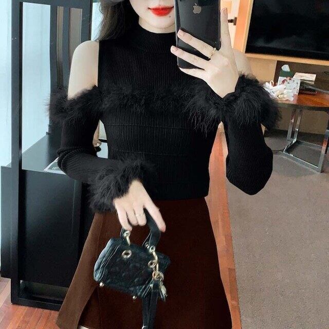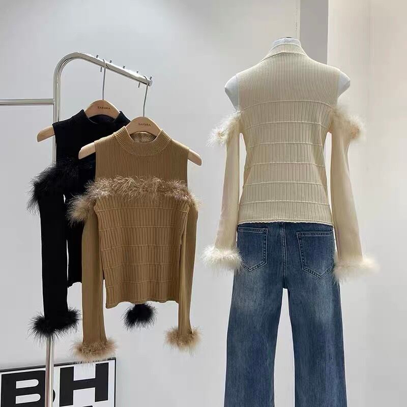 【tops】ふわふわ肩開きトップス3色 IB1970