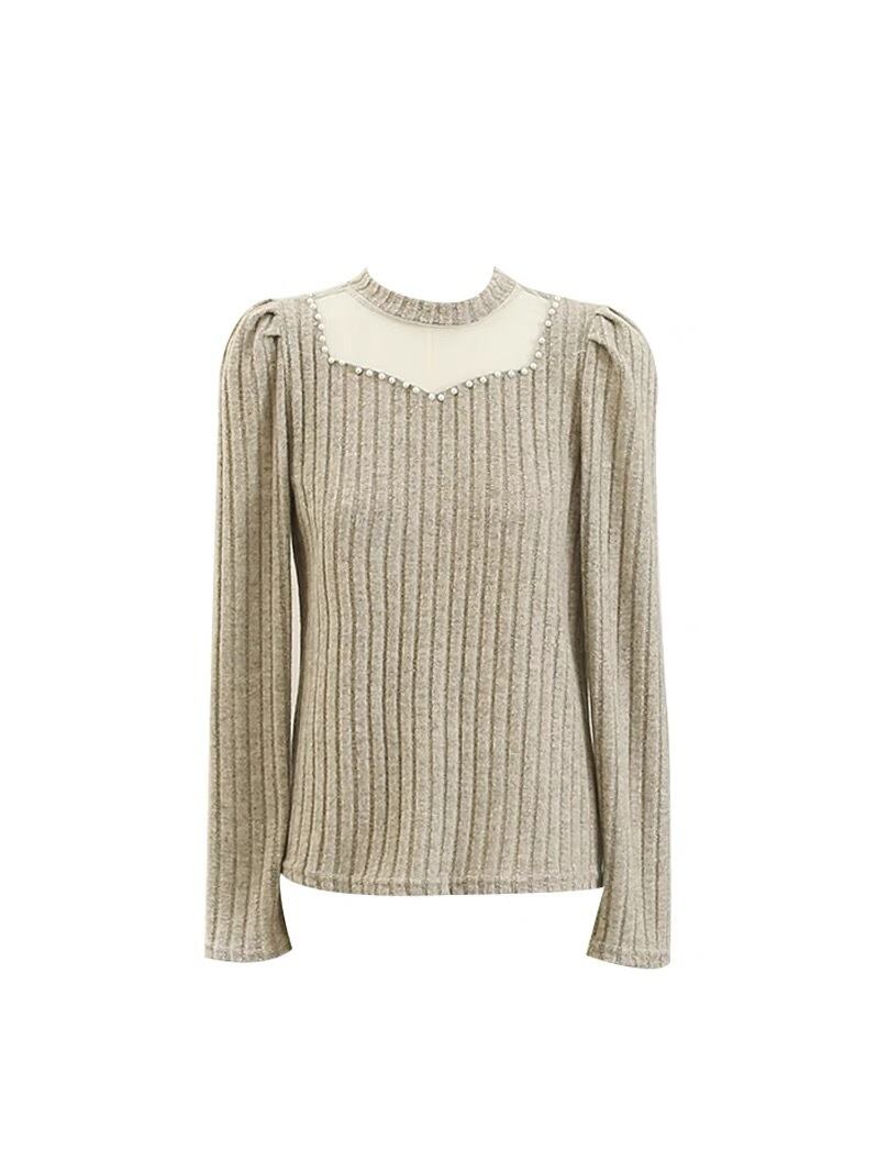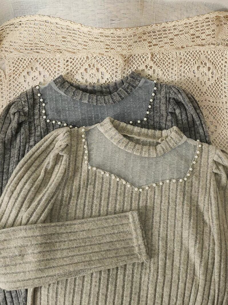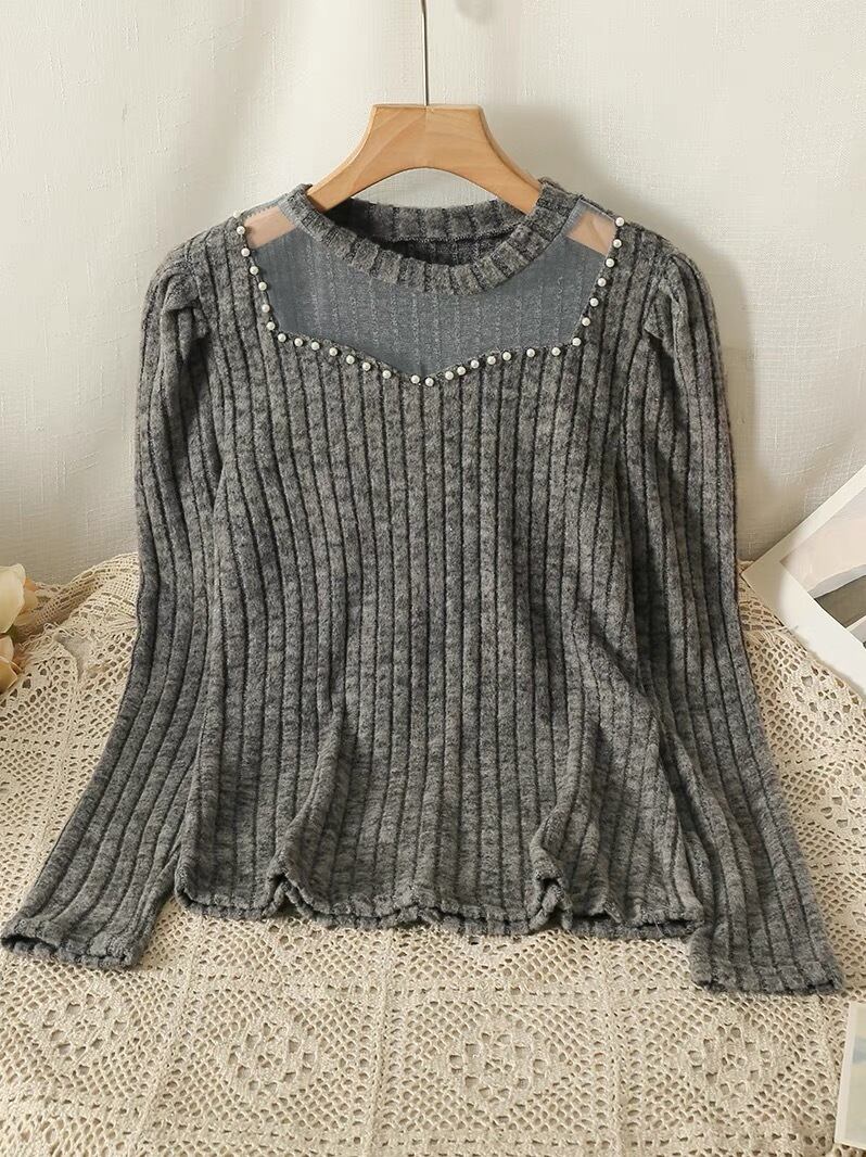 【tops】チュール切り替え肌見せニットトップス2色 SY9005