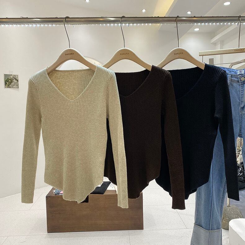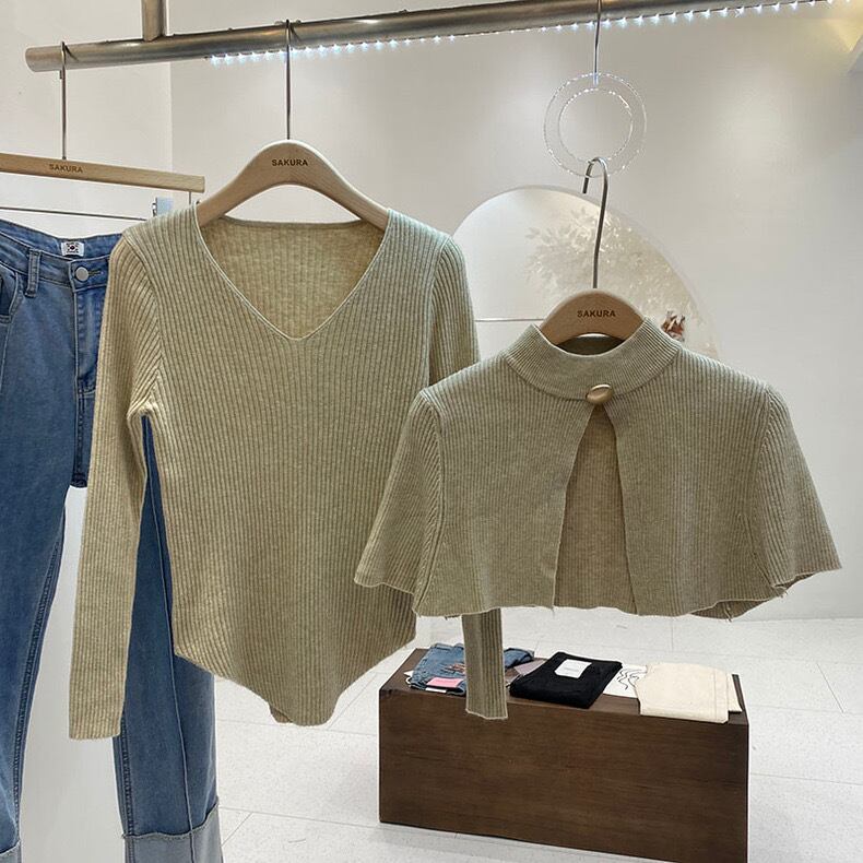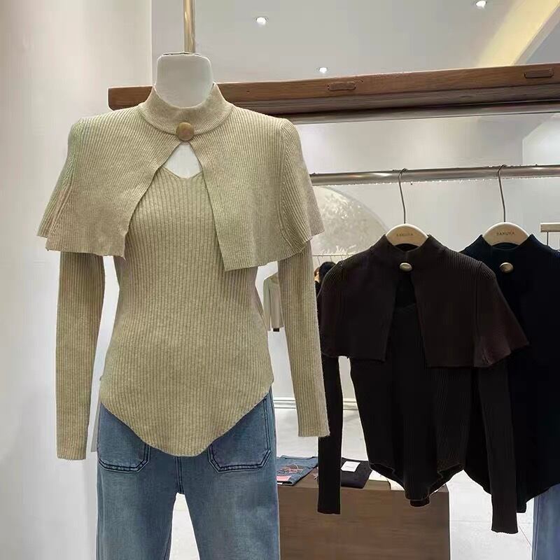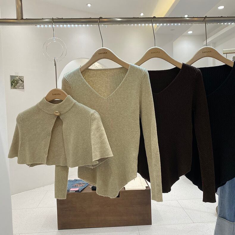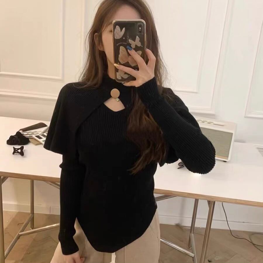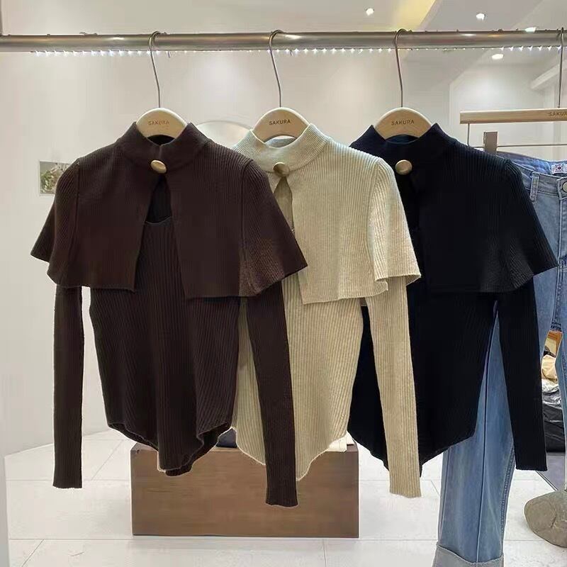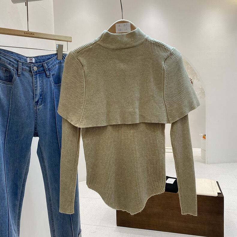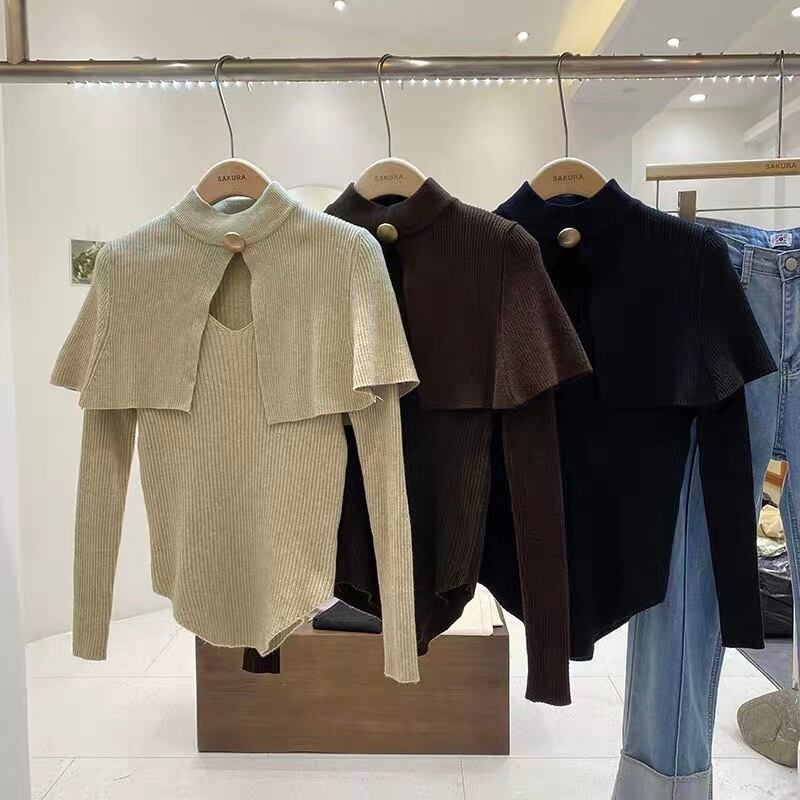 【tops】2wayつけ襟x長袖ニットトップス3色 HB0980