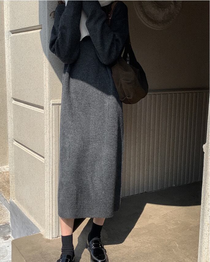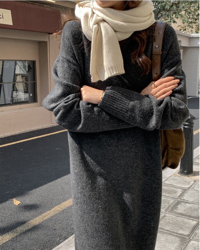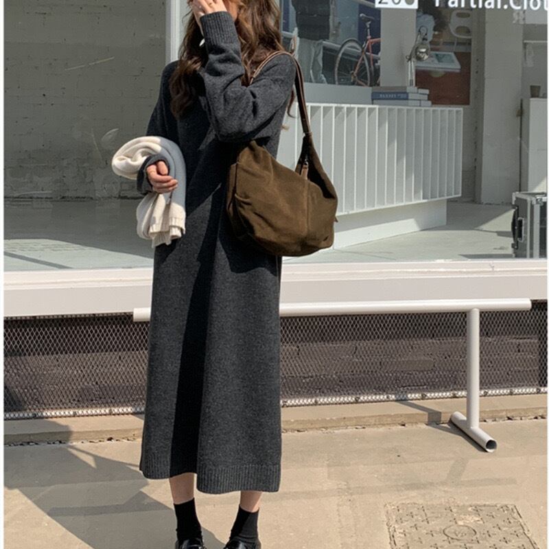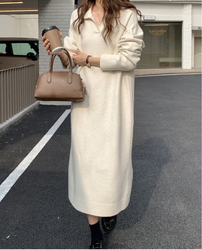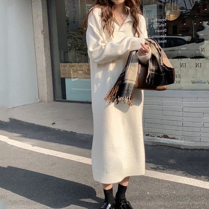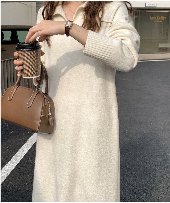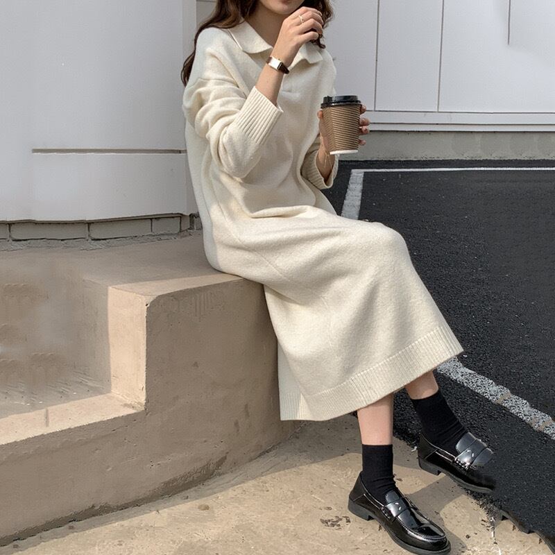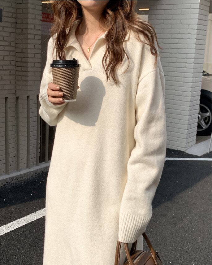 【dress】ゆったりPOLOネックニットワンピース2色 SY2950
