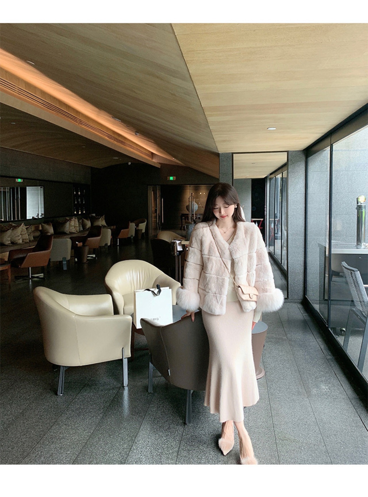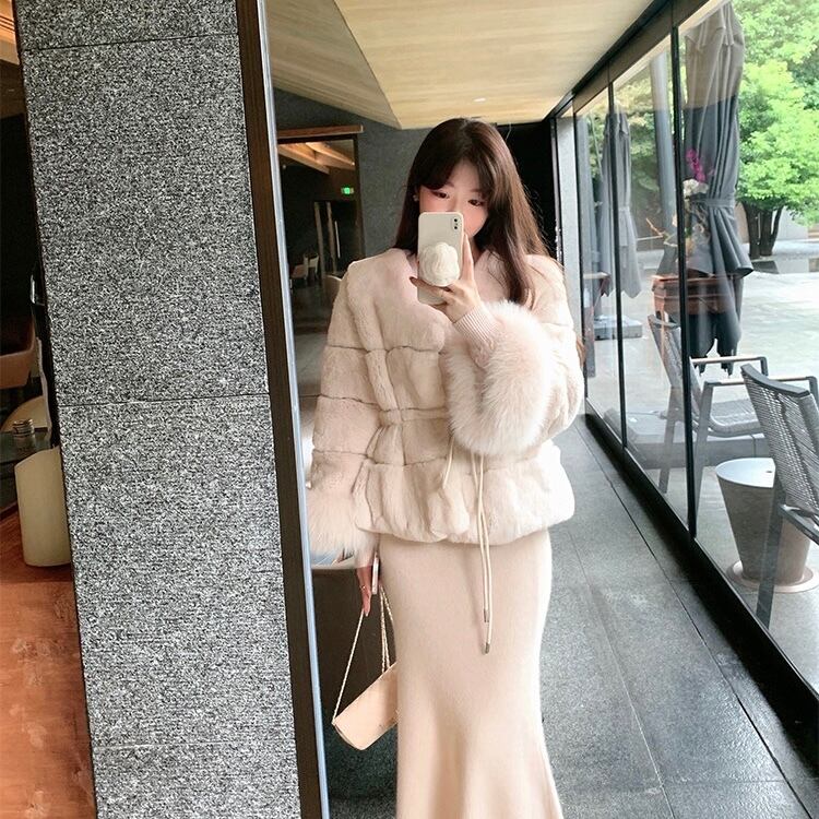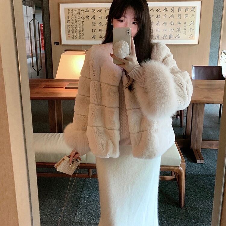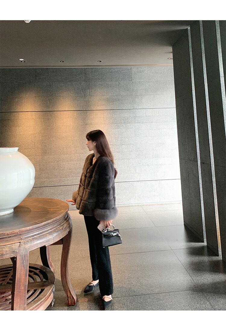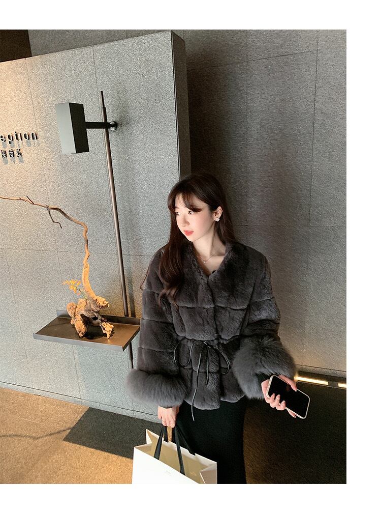 【outer】2wayリボン付きエコファーコート2色 IB1003