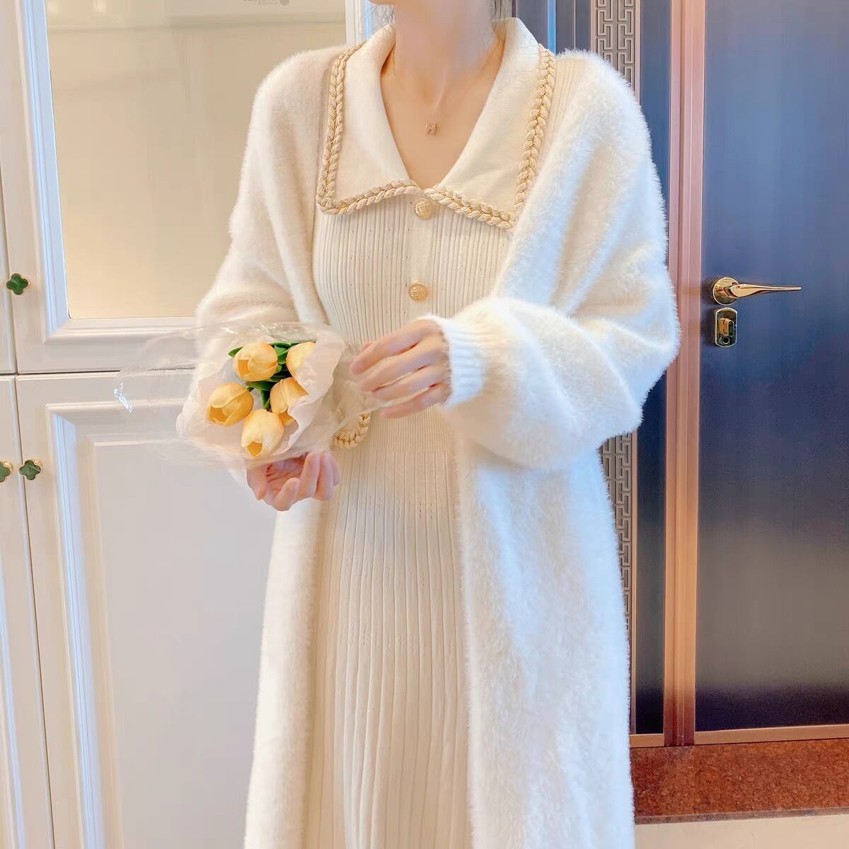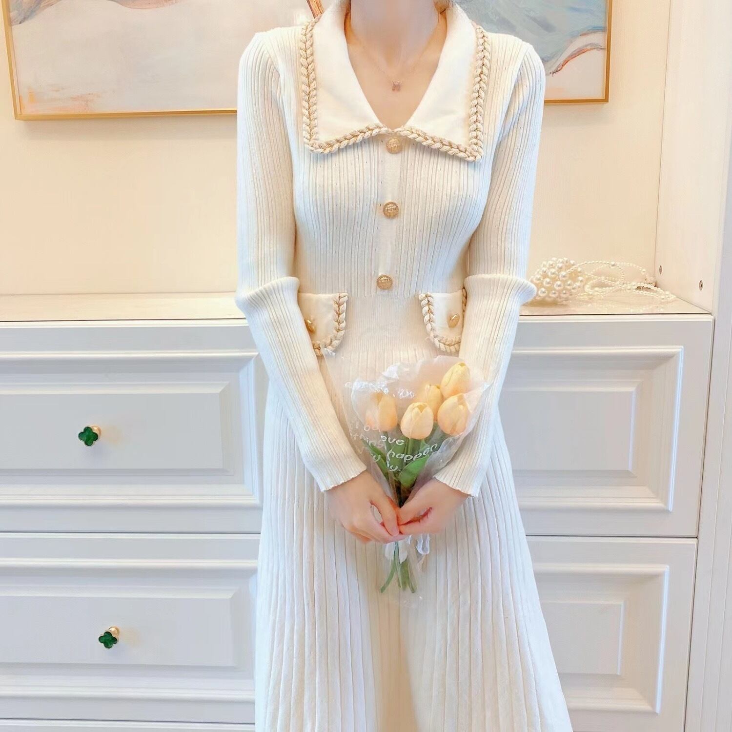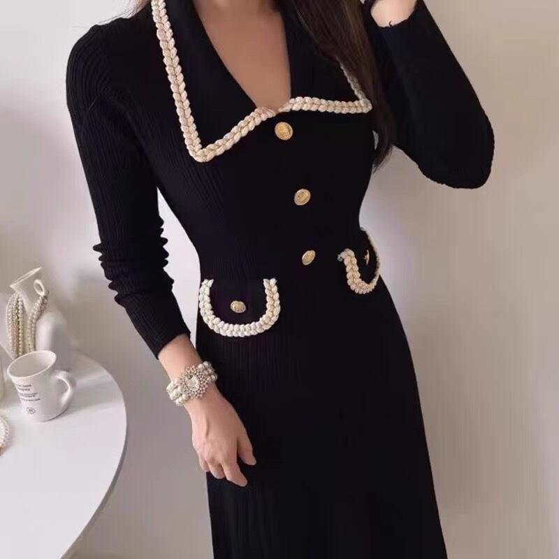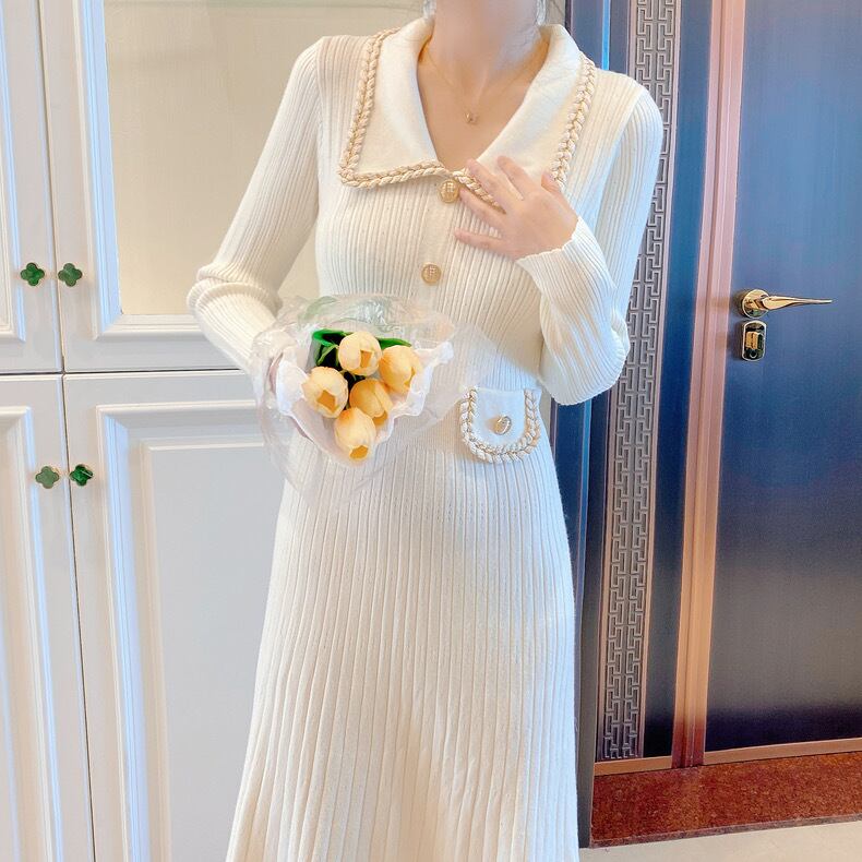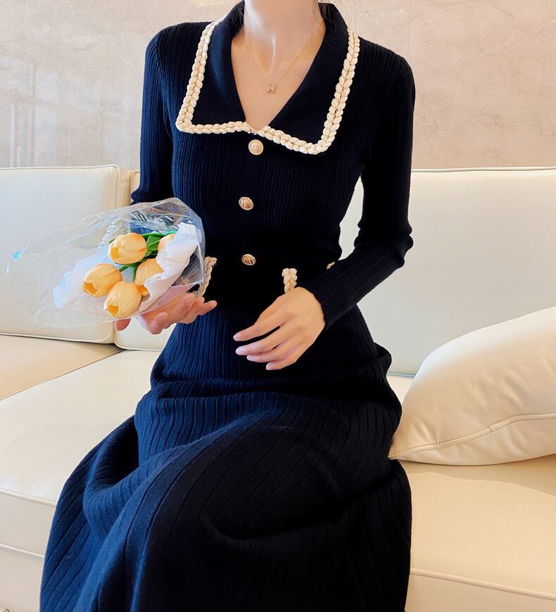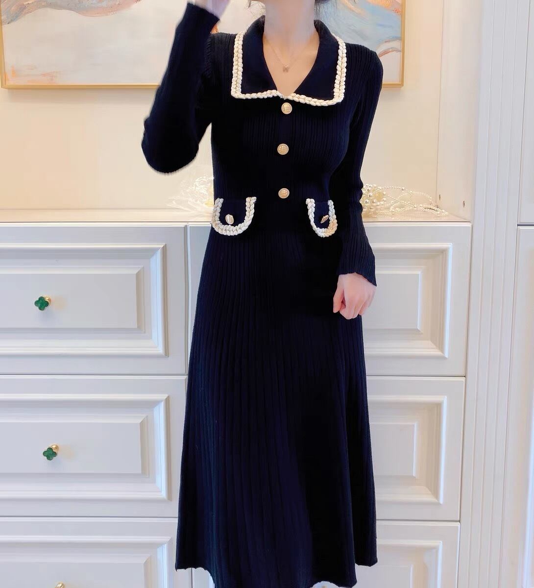 【dress】エレガント襟付きニットワンピース2色 SY0012